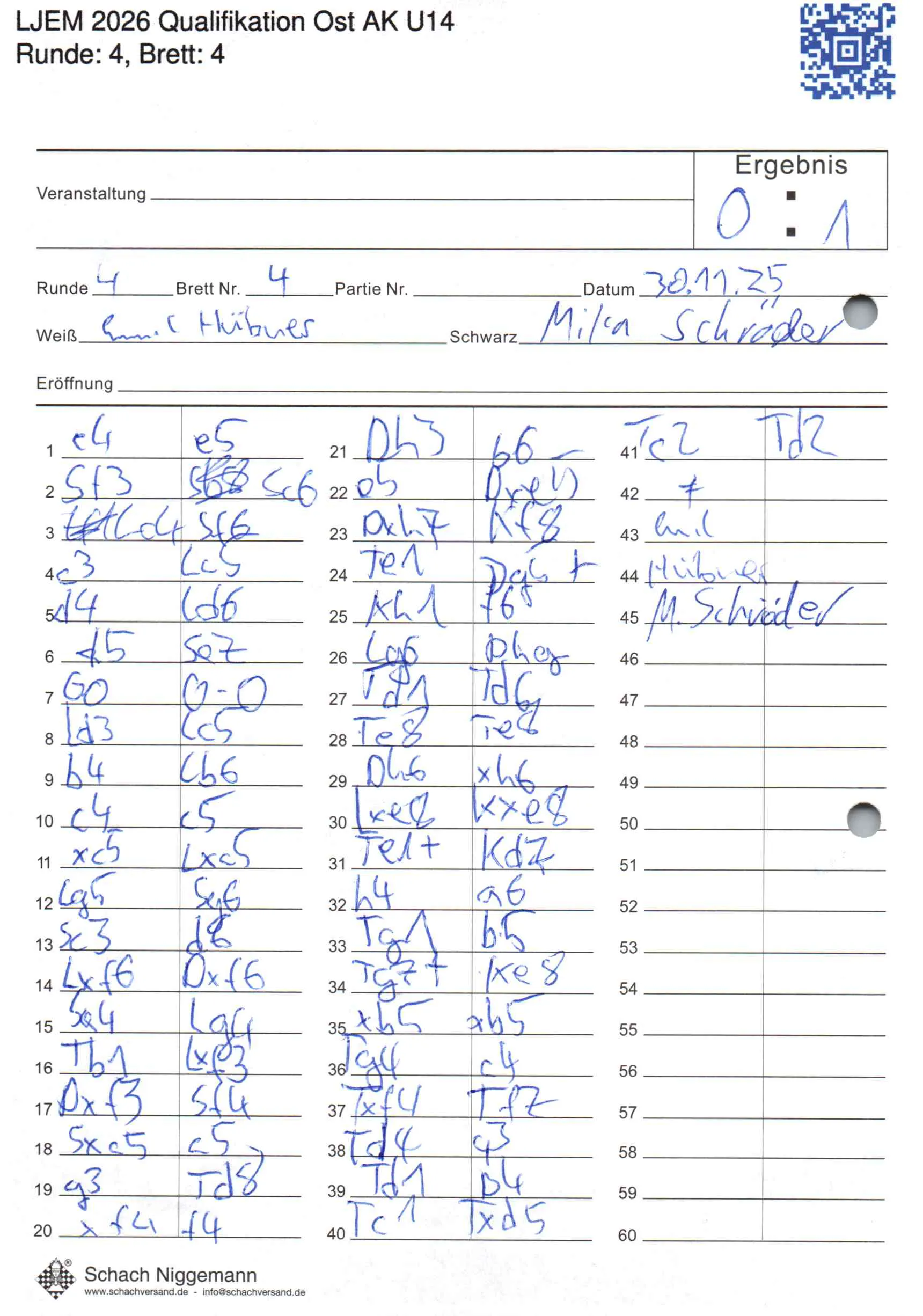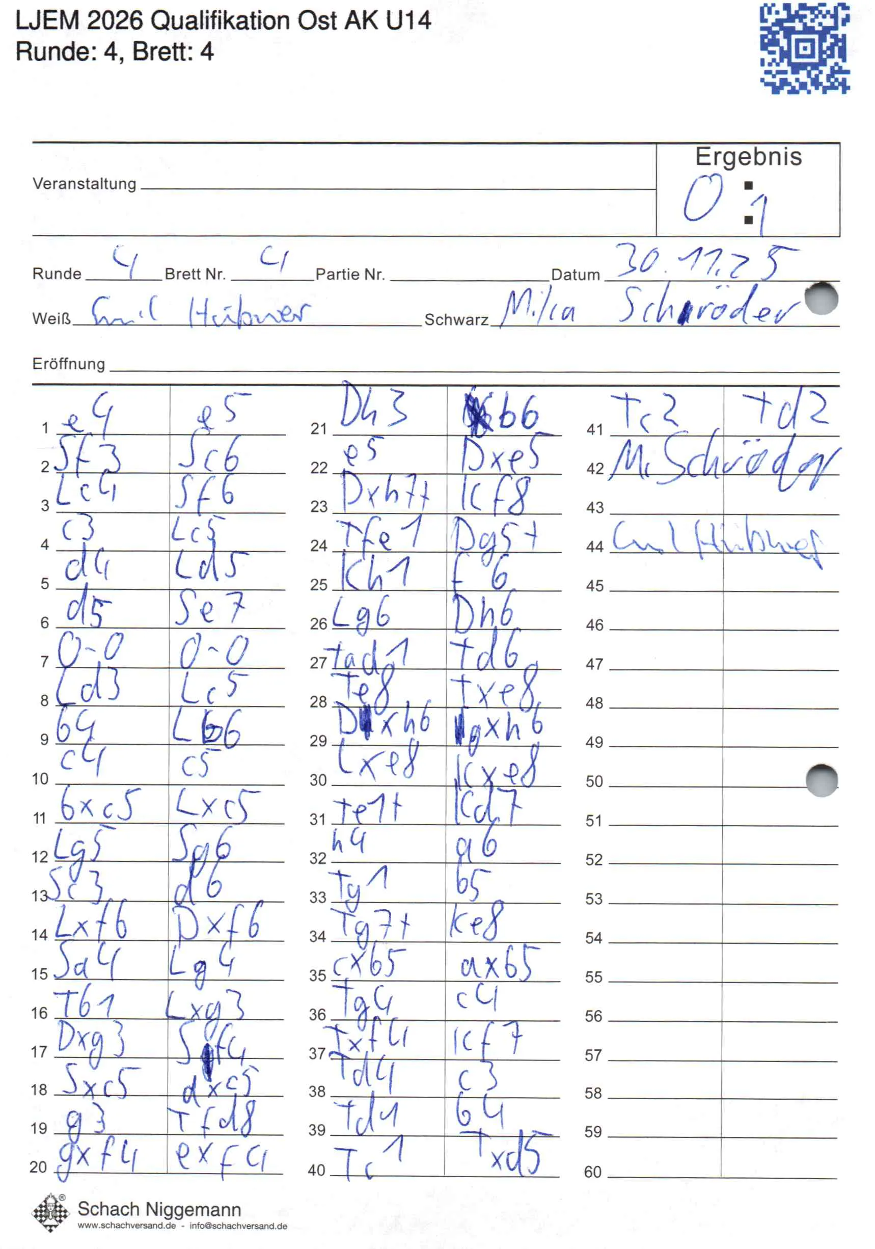 | Weiß: | Hübner, Emil | Schwarz: | Schröder, Mika |
