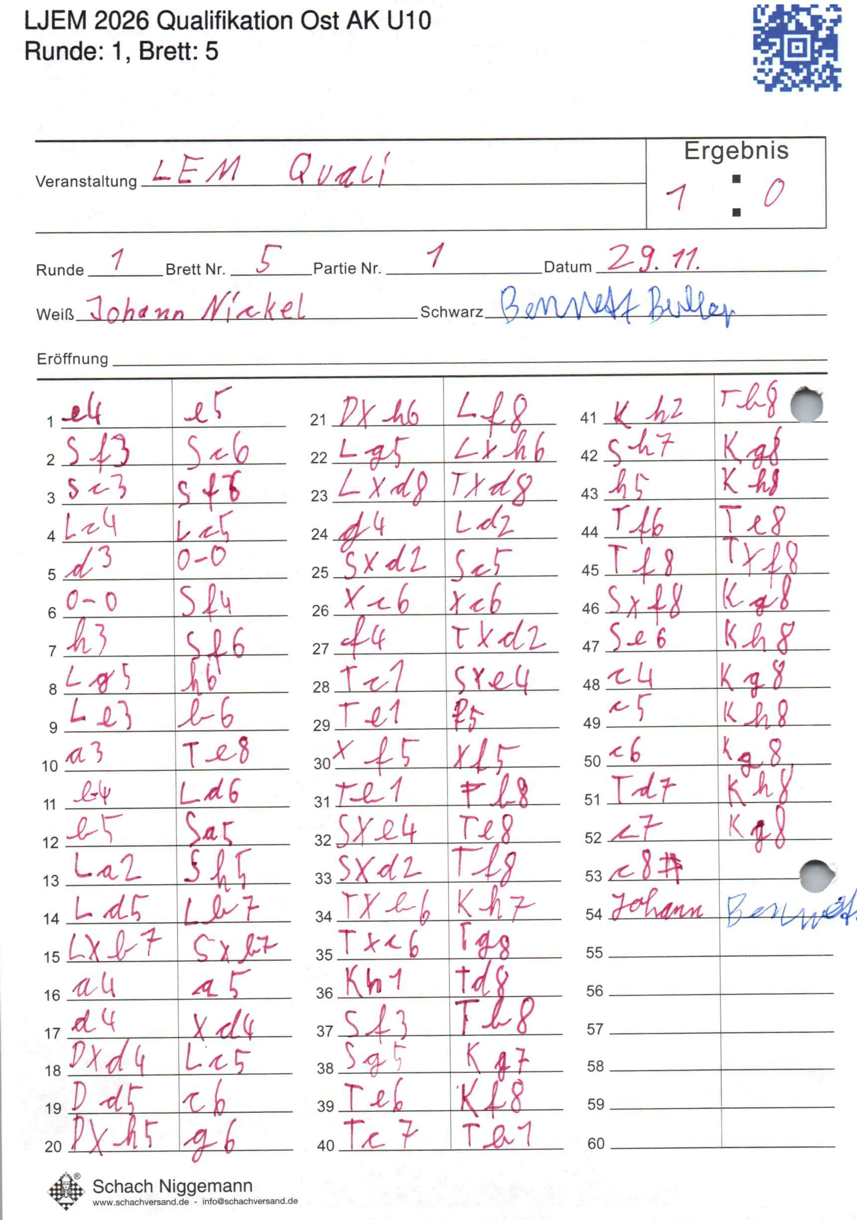 | Weiß: | Nickel, Johann Kasimir | Schwarz: | Buller, Bennet |