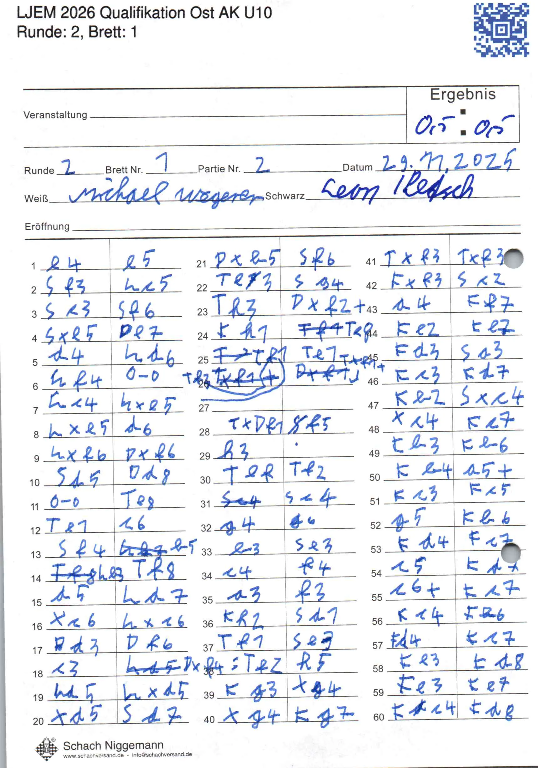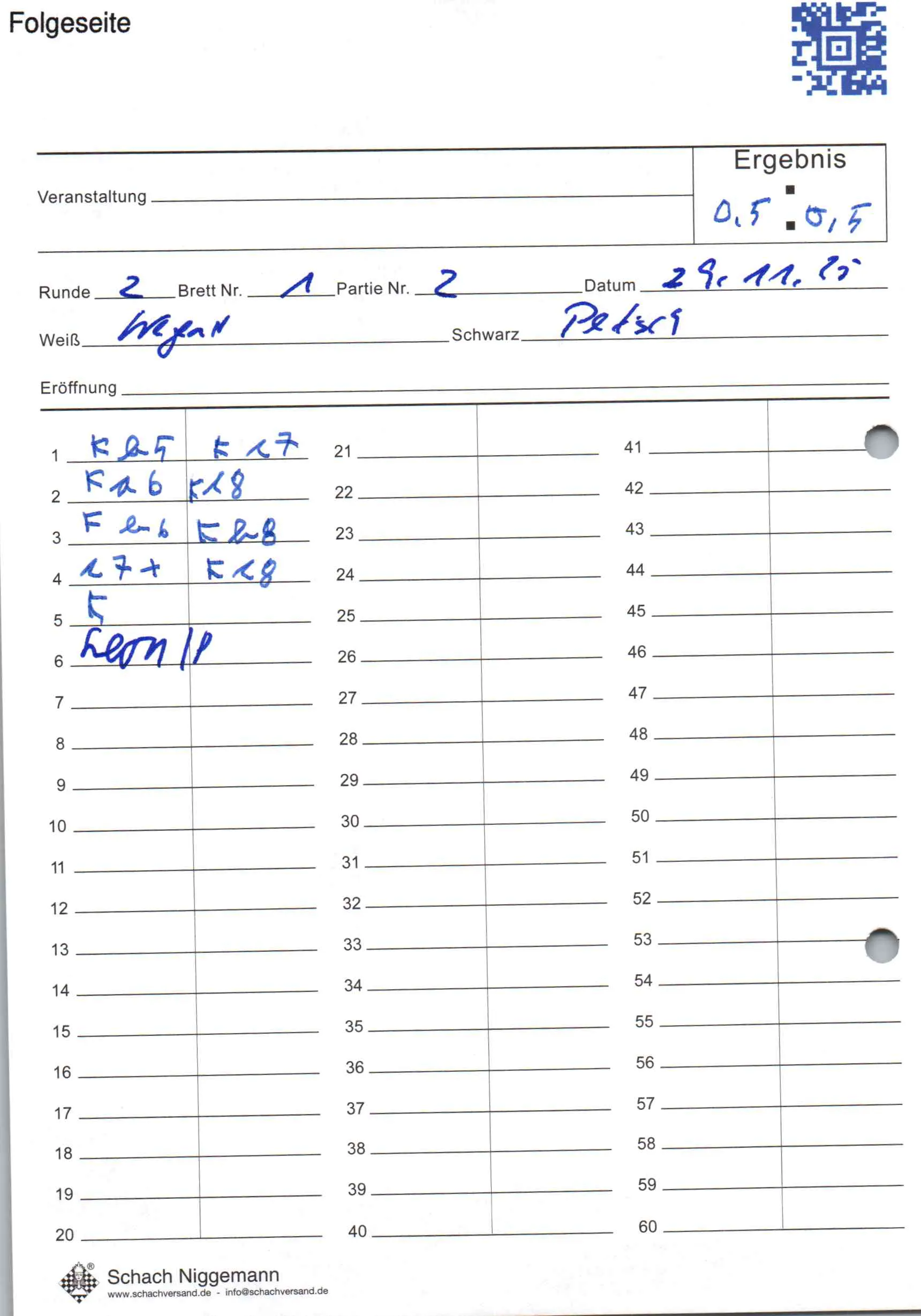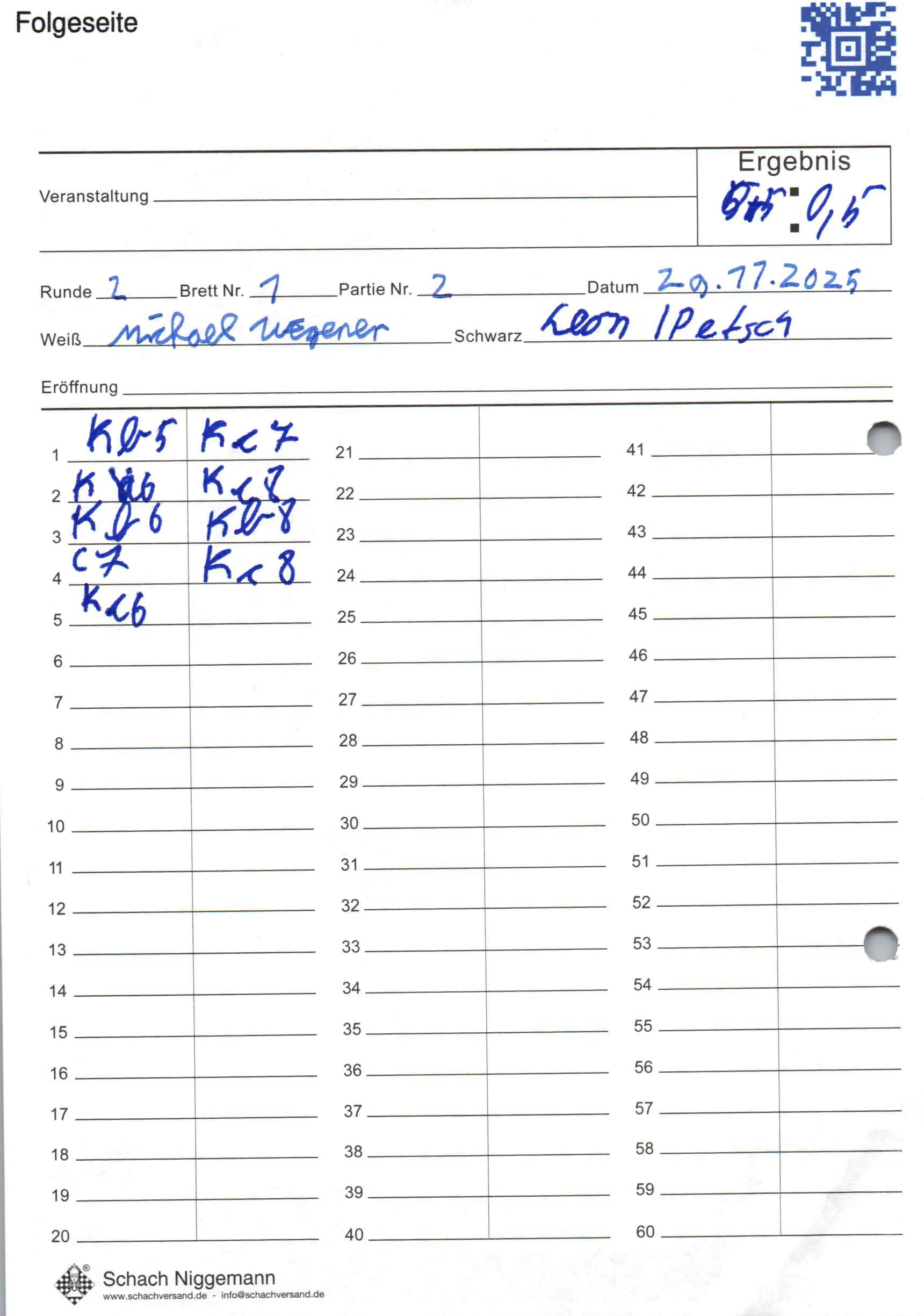 | Weiß: | Wegener, Michael | Schwarz: | Petsch, Leon |
