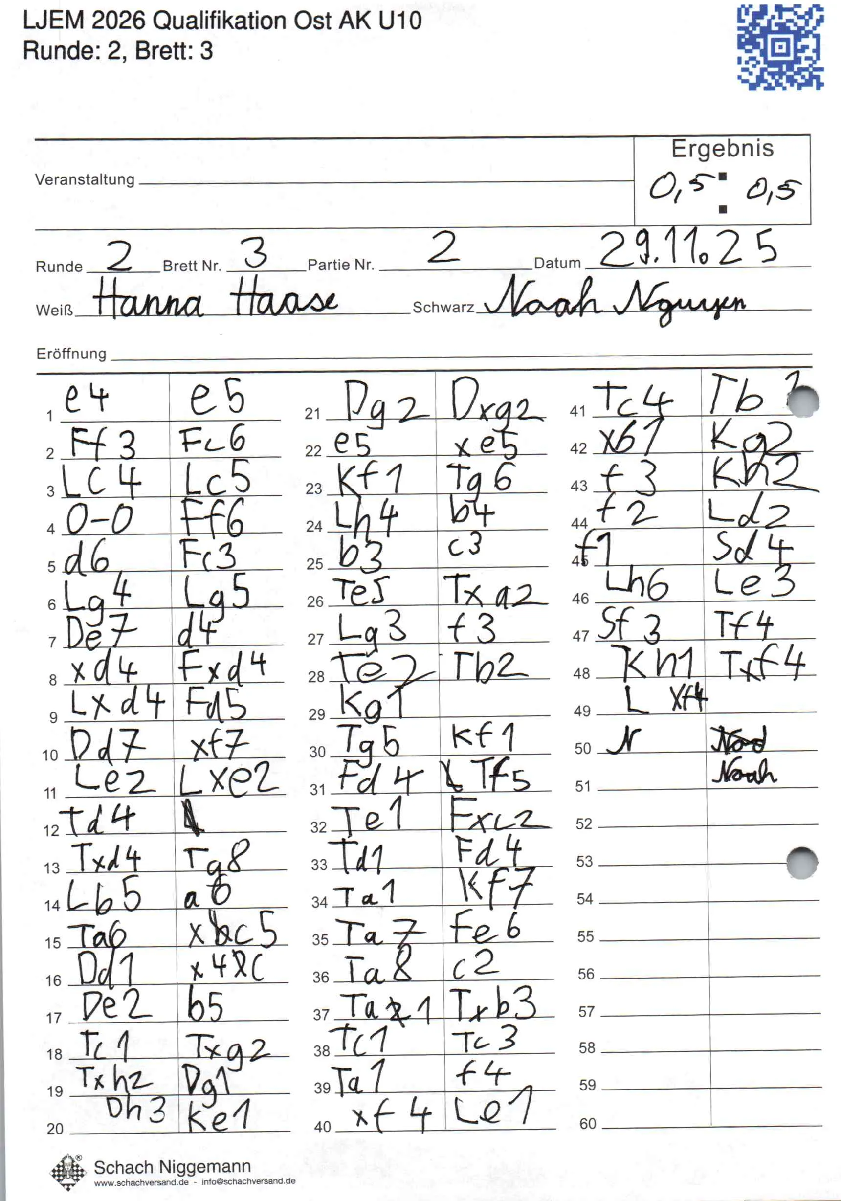 | Weiß: | Haase, Hanna | Schwarz: | Nguyen Trung, Noah |