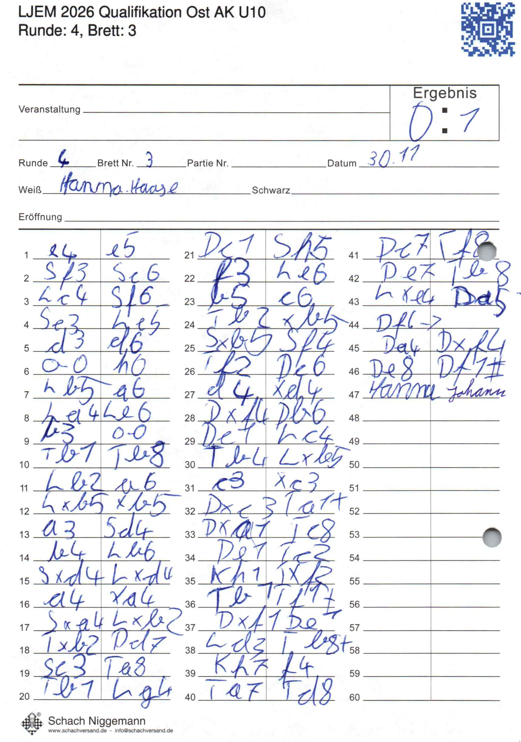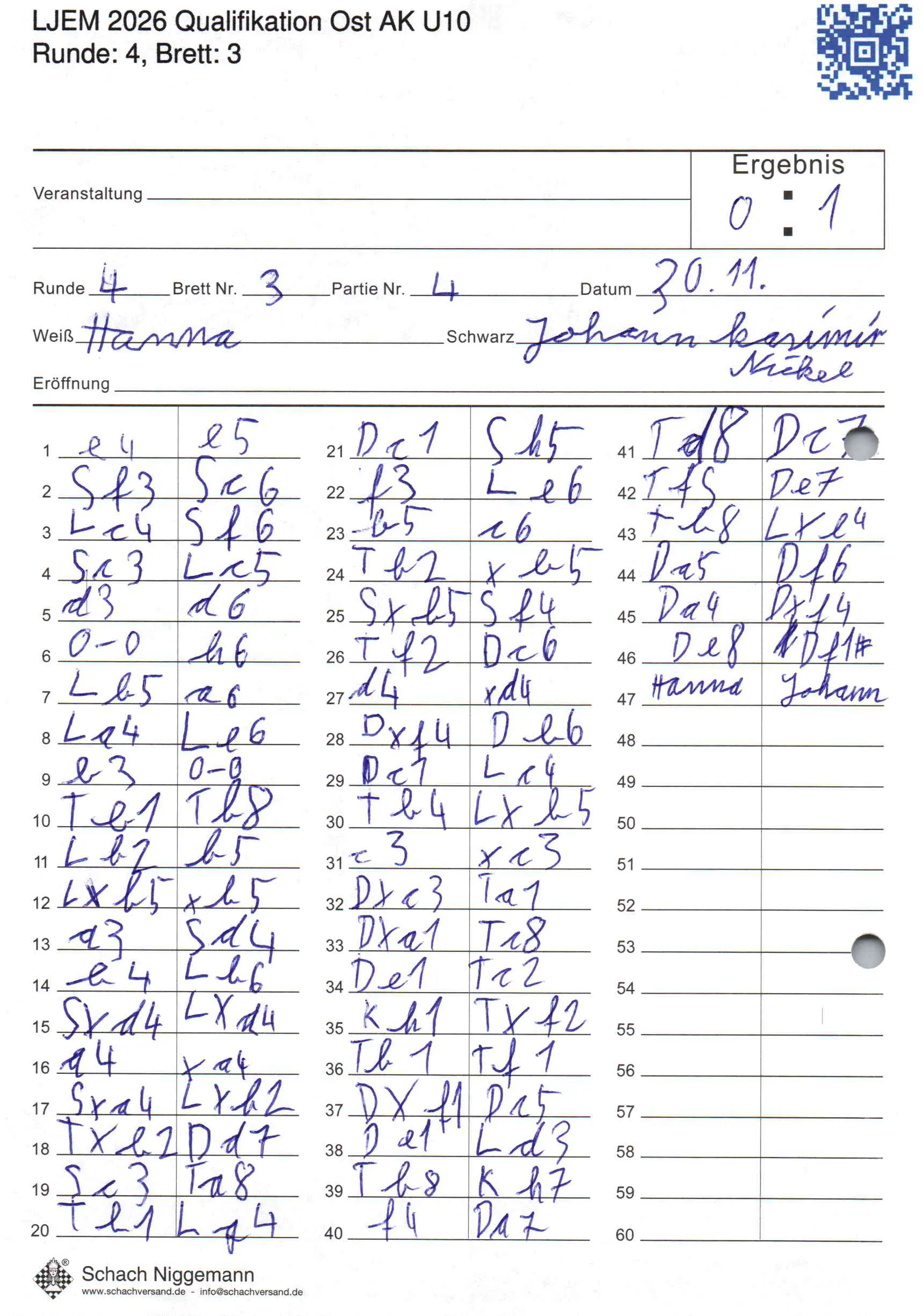 | Weiß: | Haase, Hanna | Schwarz: | Nickel, Johann Kasimir |