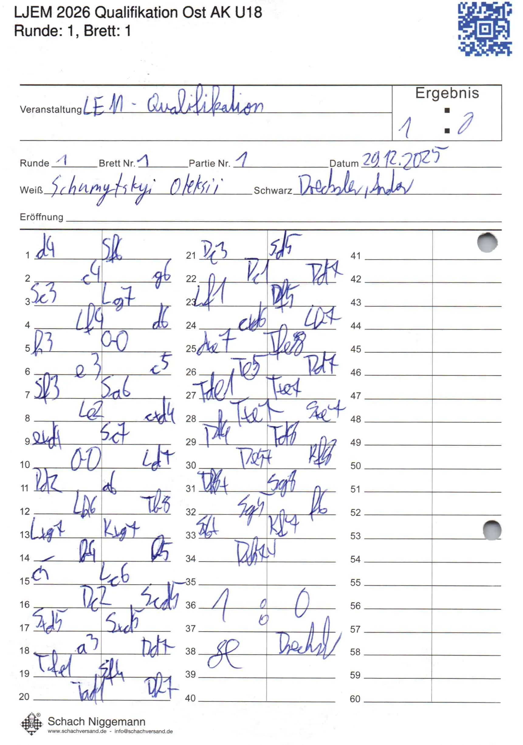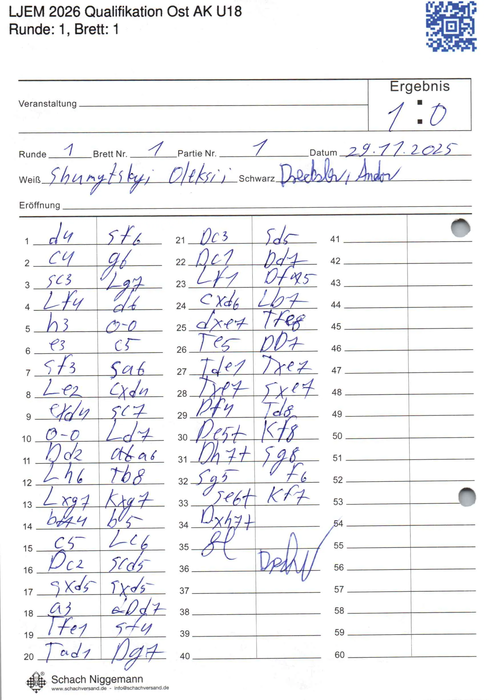 | Weiß: | Shumytskyi, Oleksii | Schwarz: | Drechsler, Andor |