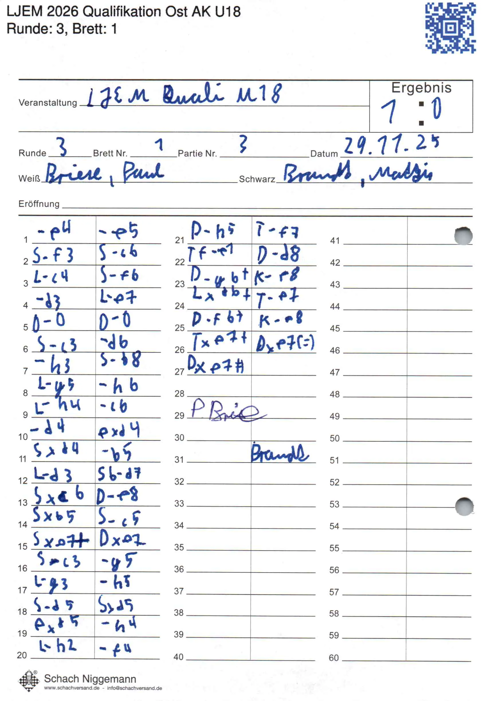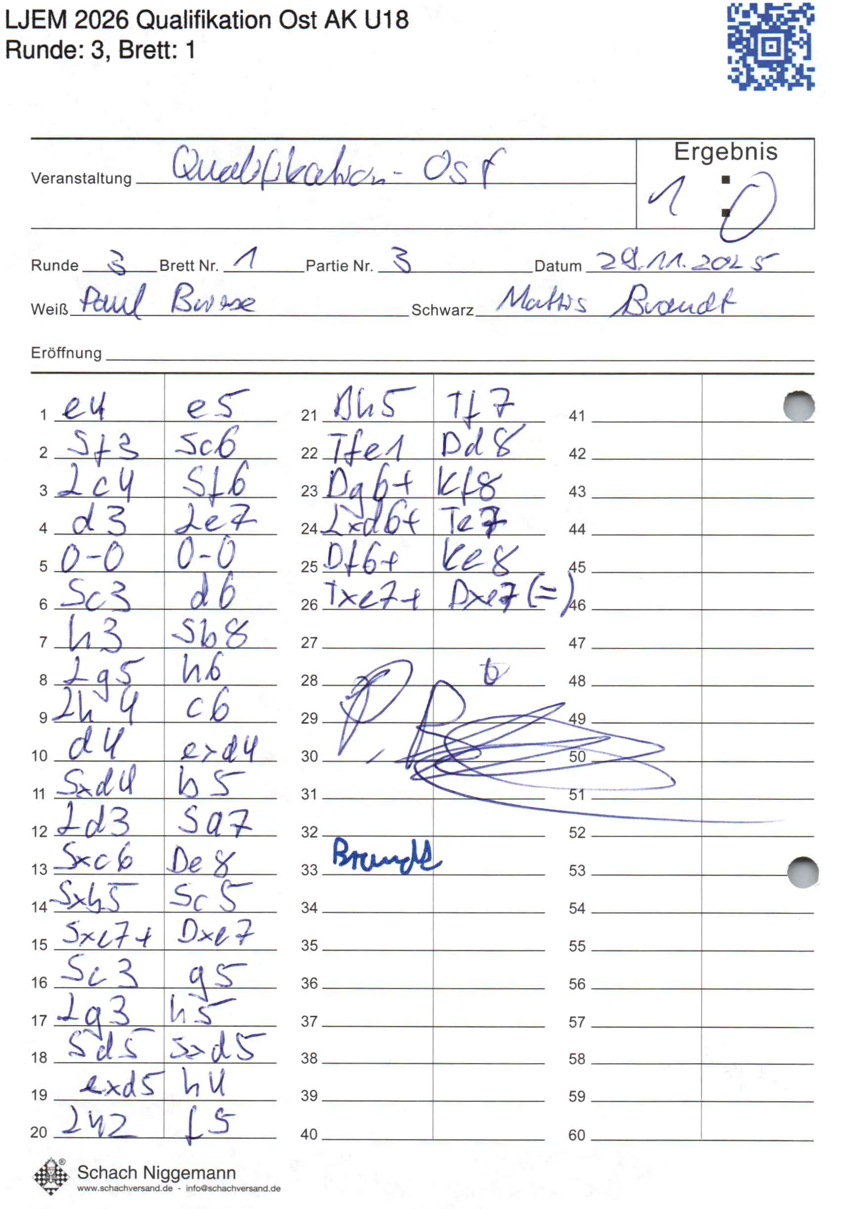 | Weiß: | Briese, Paul | Schwarz: | Brandt, Mattis |
