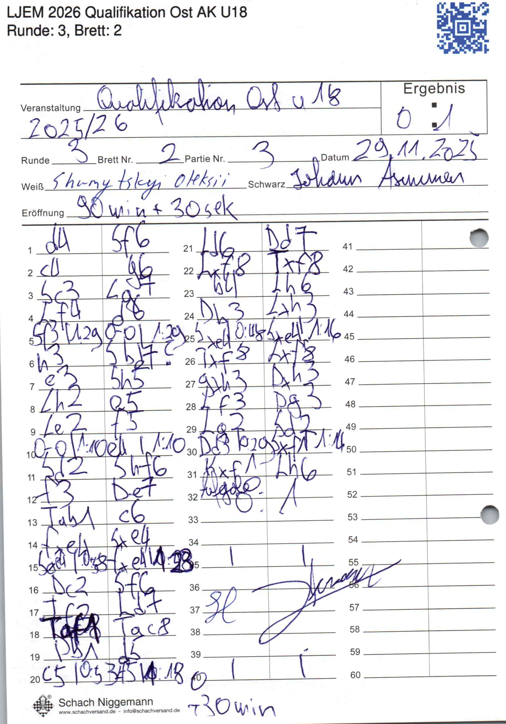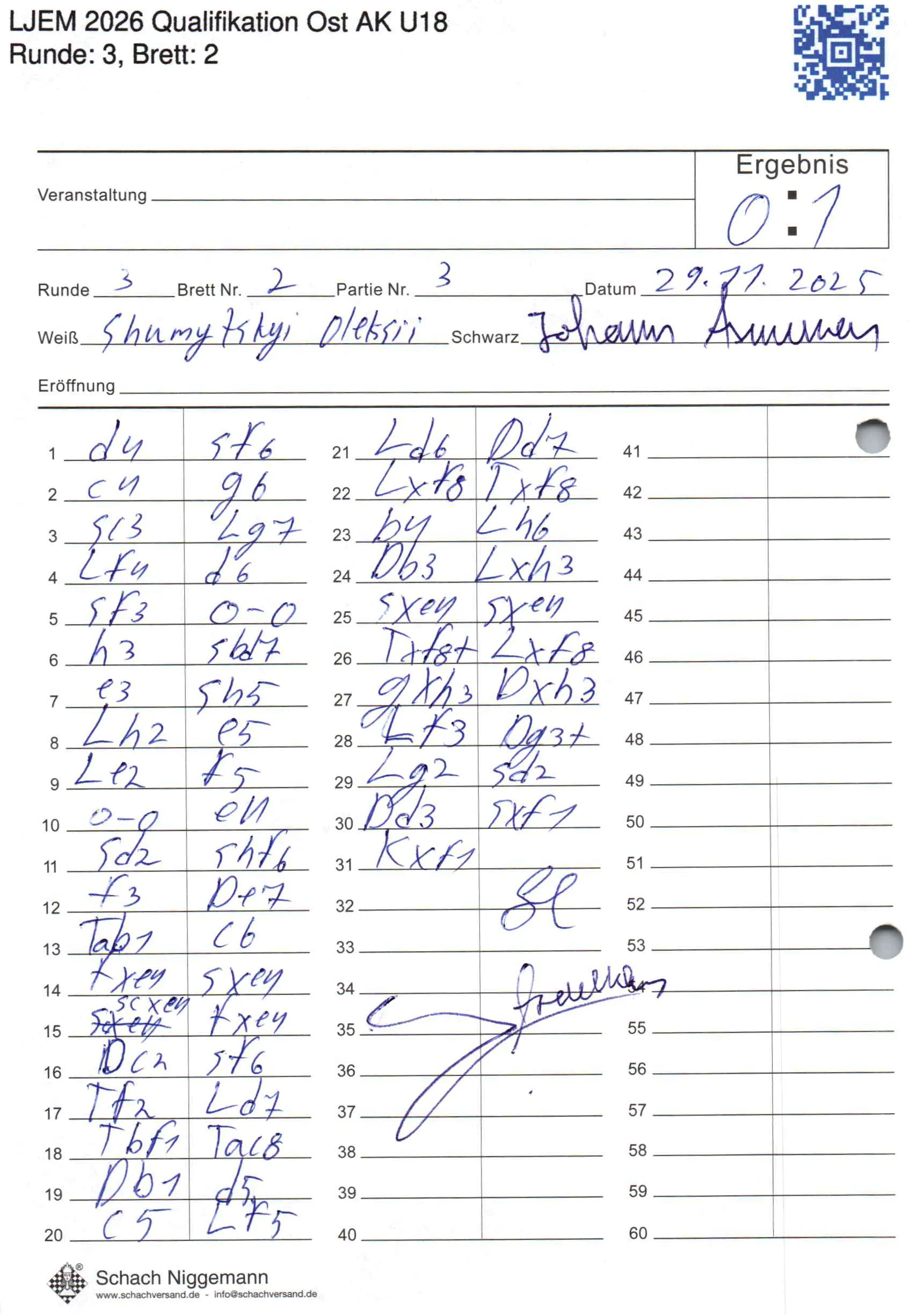 | Weiß: | Shumytskyi, Oleksii | Schwarz: | Asmussen, Johann |