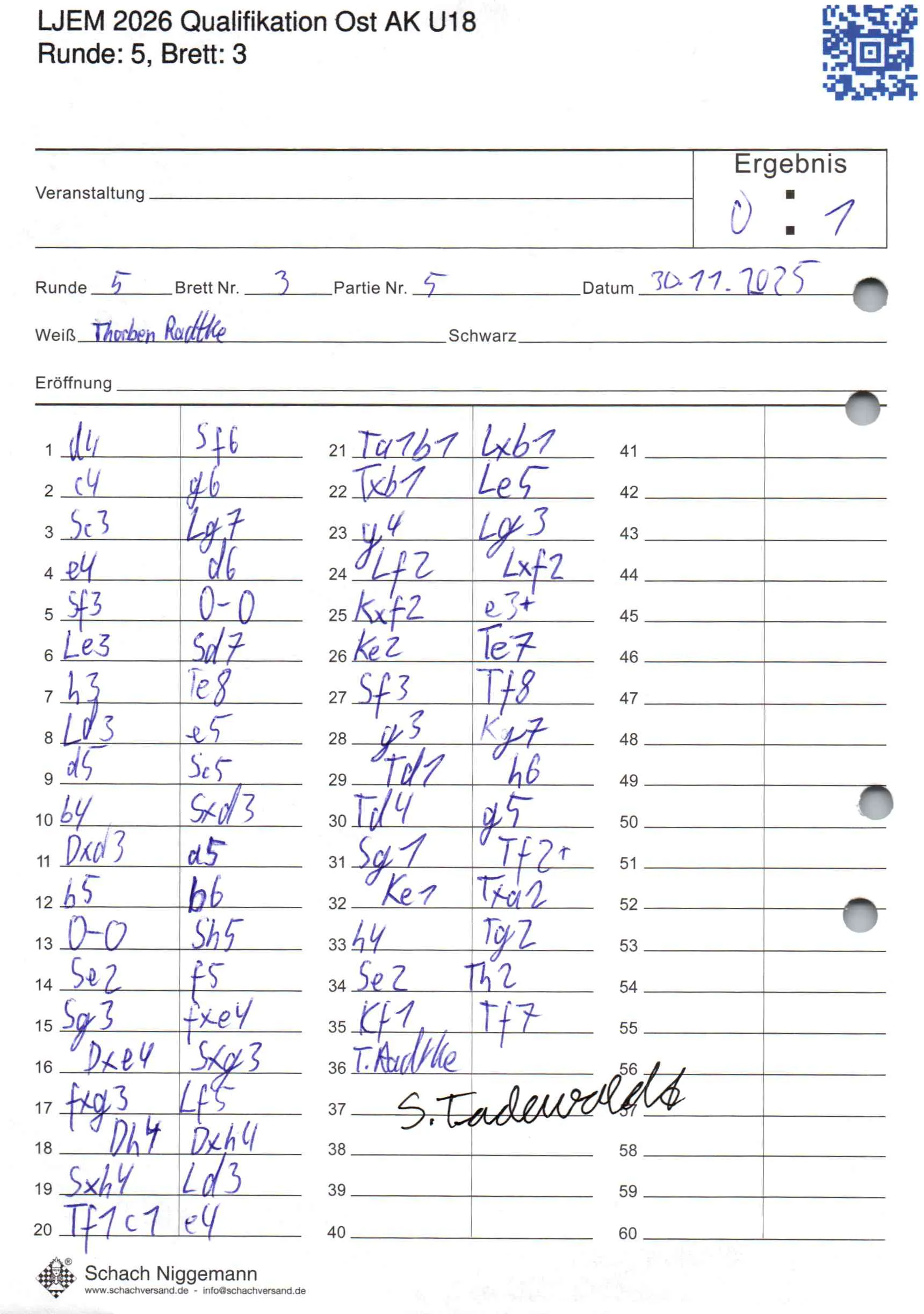| Weiß: | Radtke, Thorben | Schwarz: | Tadewaldt, Stanley |