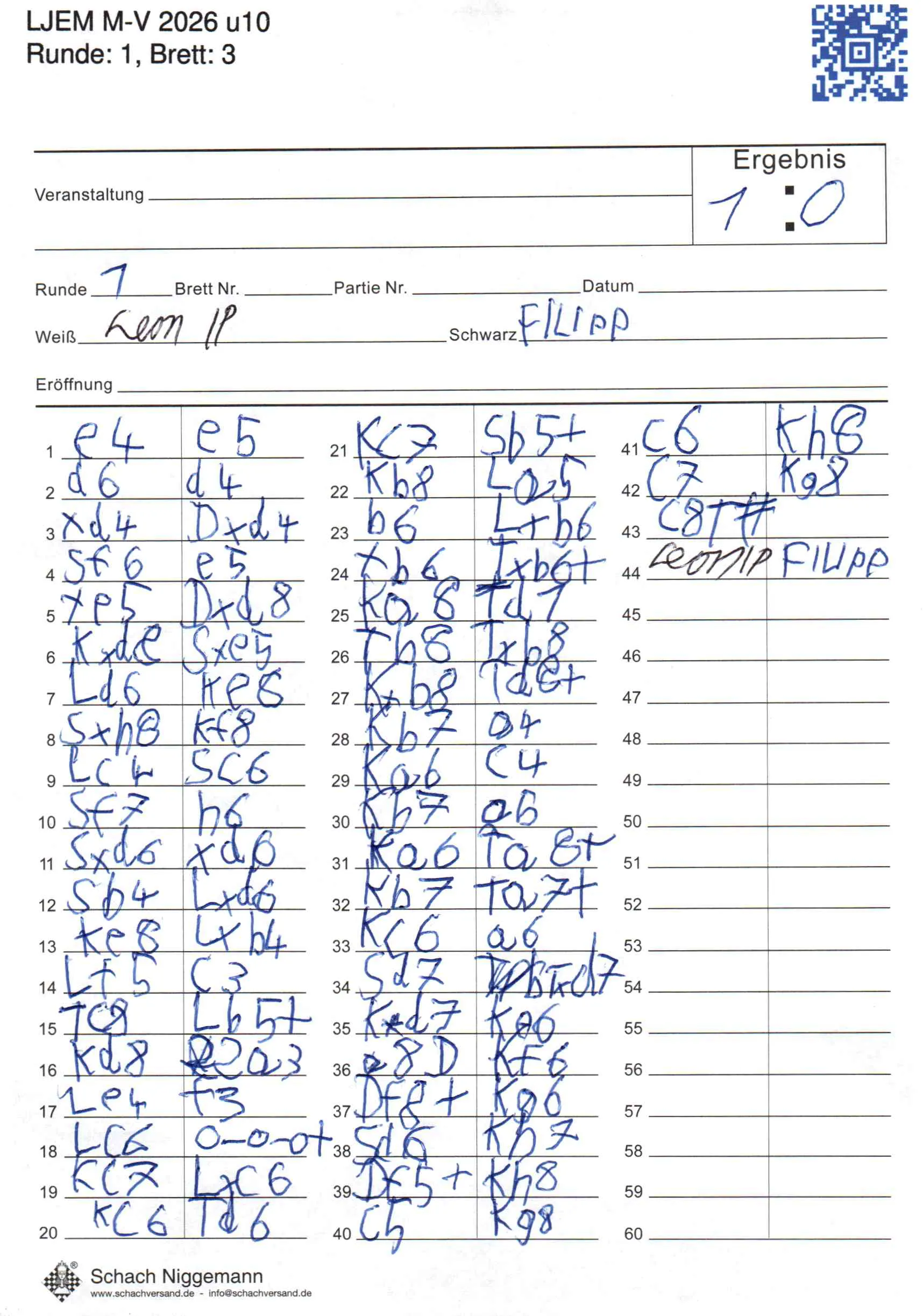 | Weiß: | Petsch, Leon | Schwarz: | Rokhinson, Filipp |