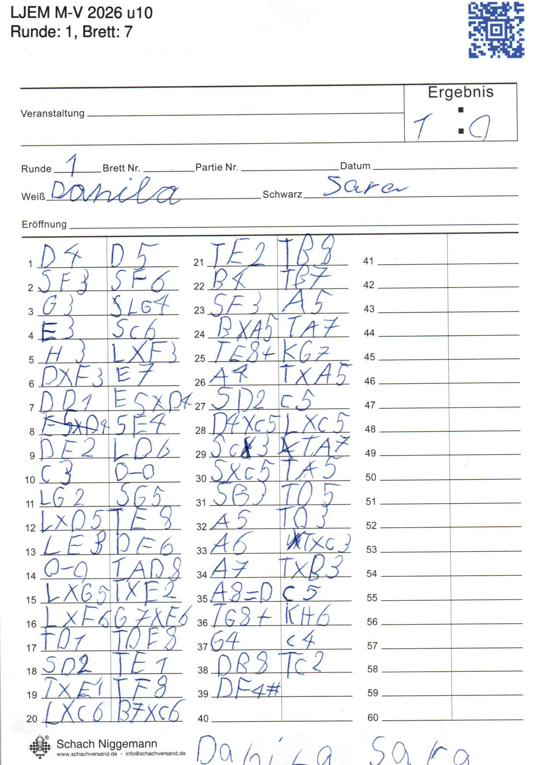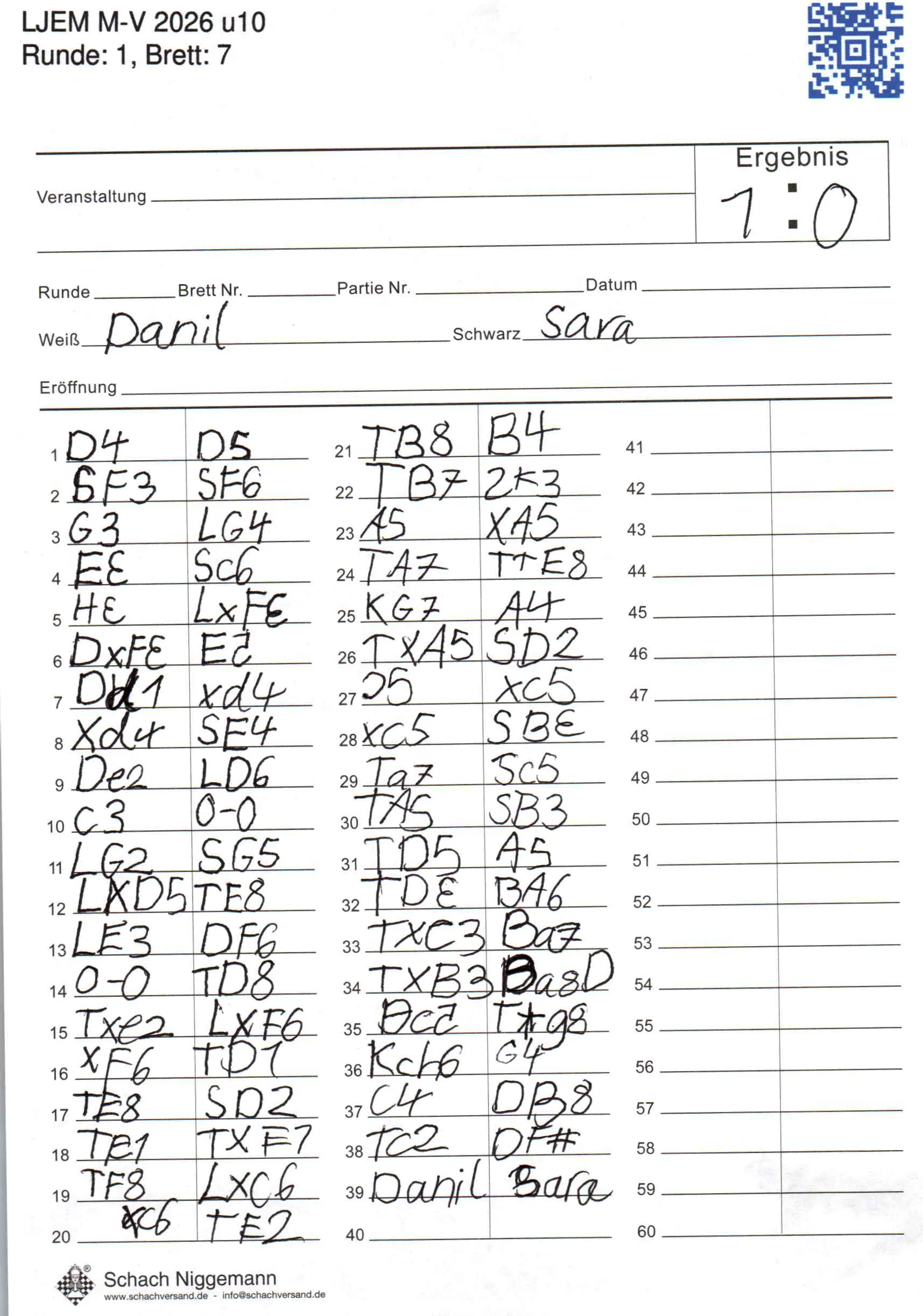 | Weiß: | Lavrukhin, Danila | Schwarz: | Zelenin, Sara |