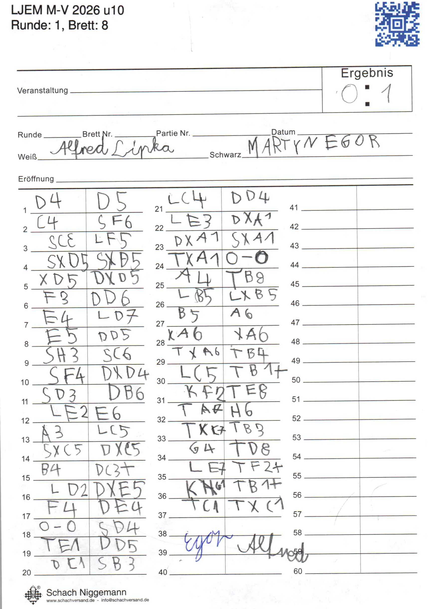| Weiß: | Lipka, Alfred | Schwarz: | Martyn, Egor |