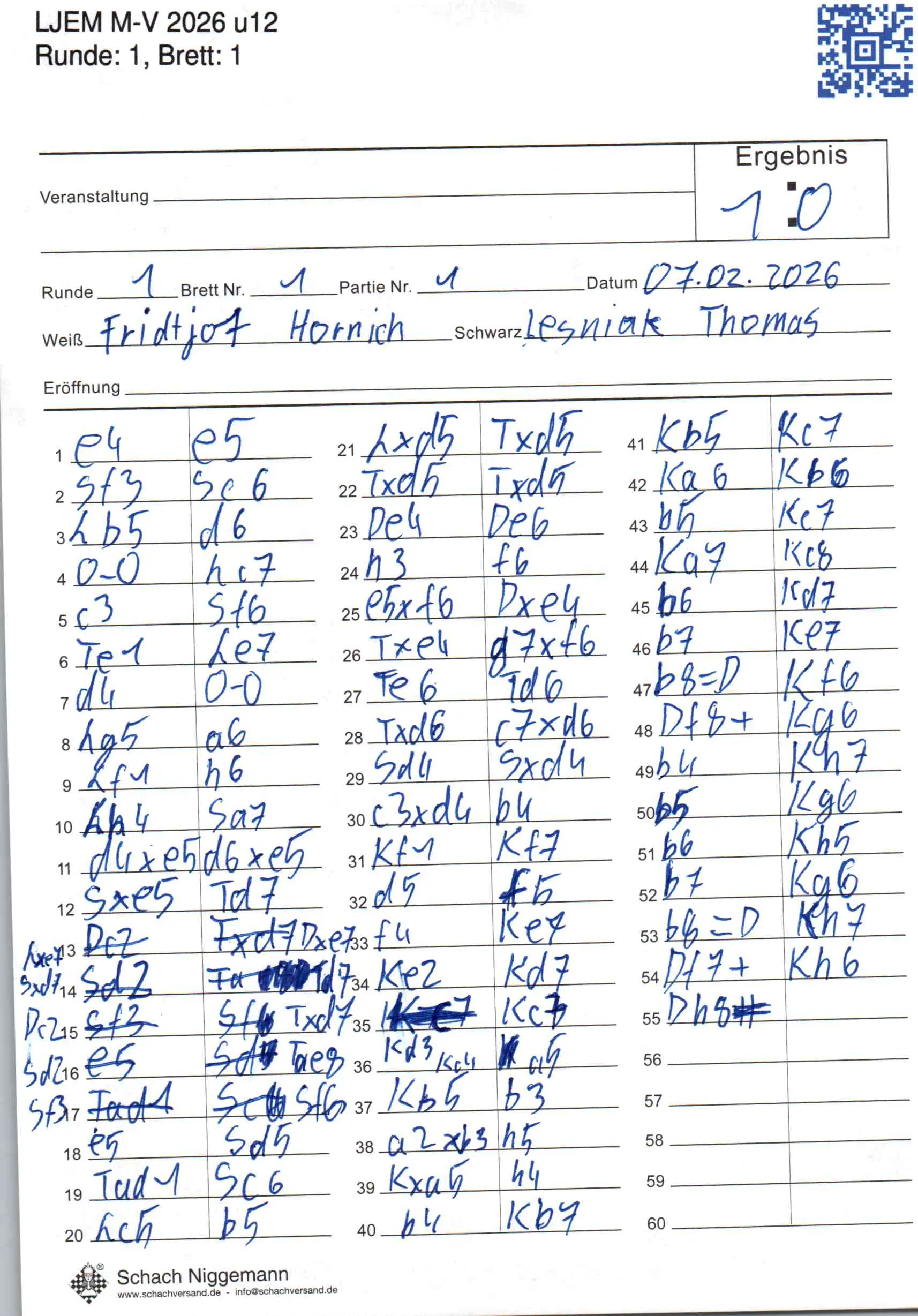 | Weiß: | Hornych, Fridtjof | Schwarz: | Lesniak, Thomas |