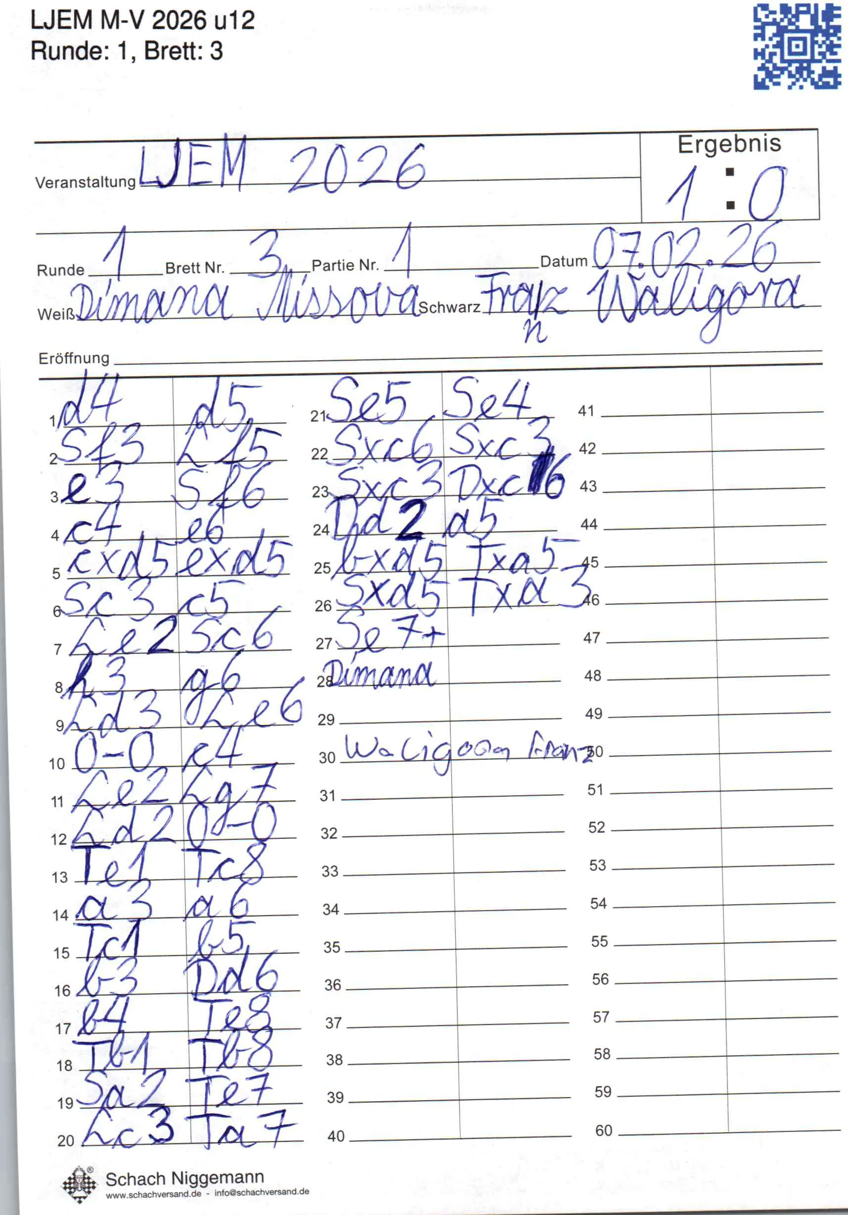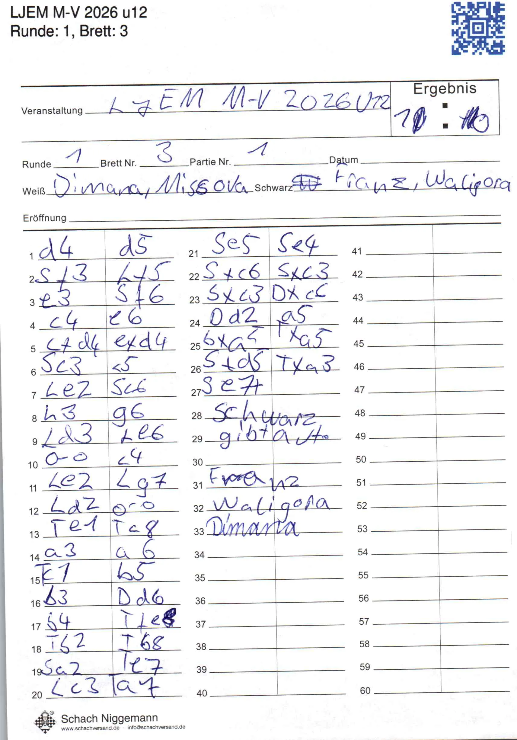 | Weiß: | Missova, Dimana | Schwarz: | Waligora, Franz |