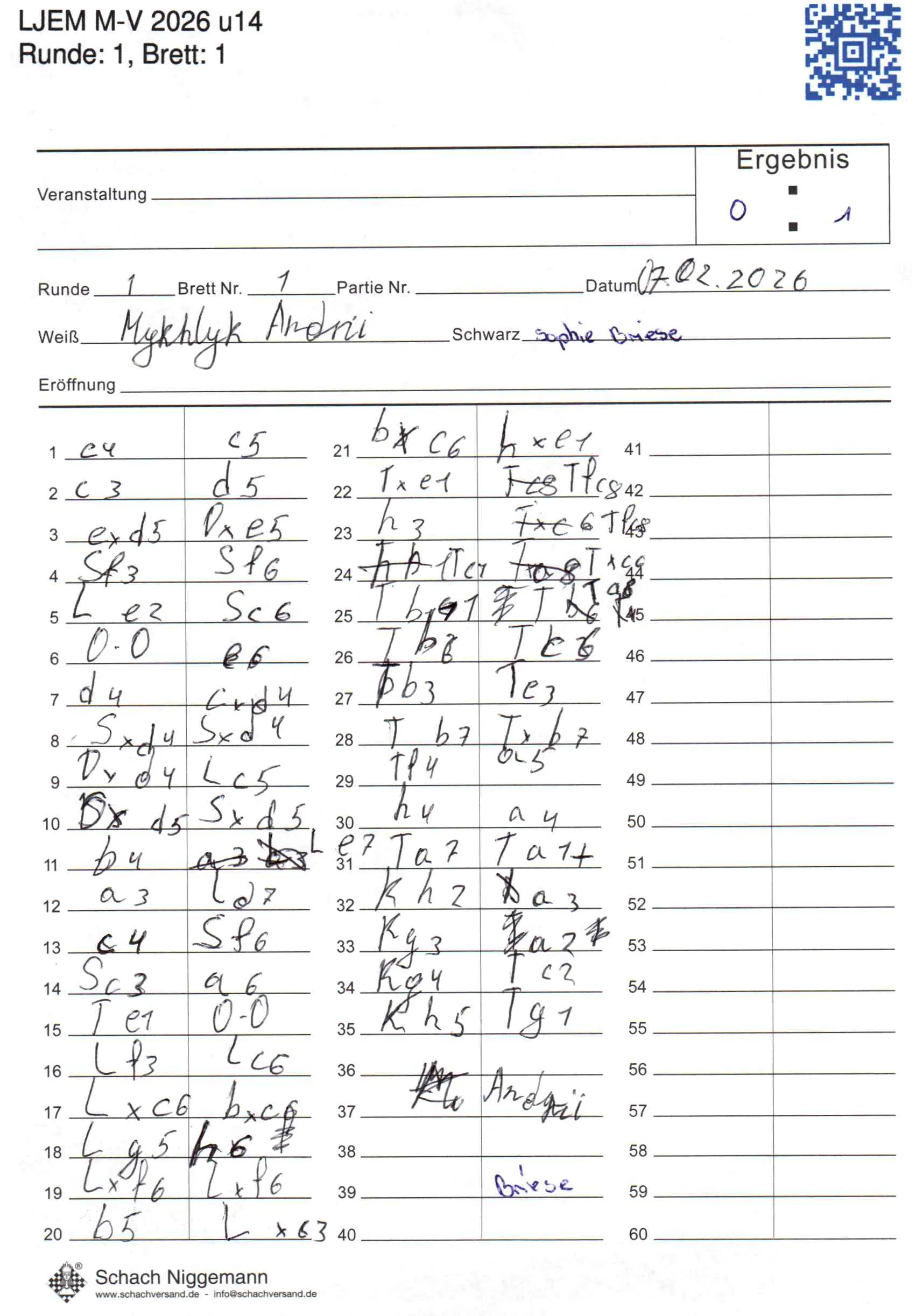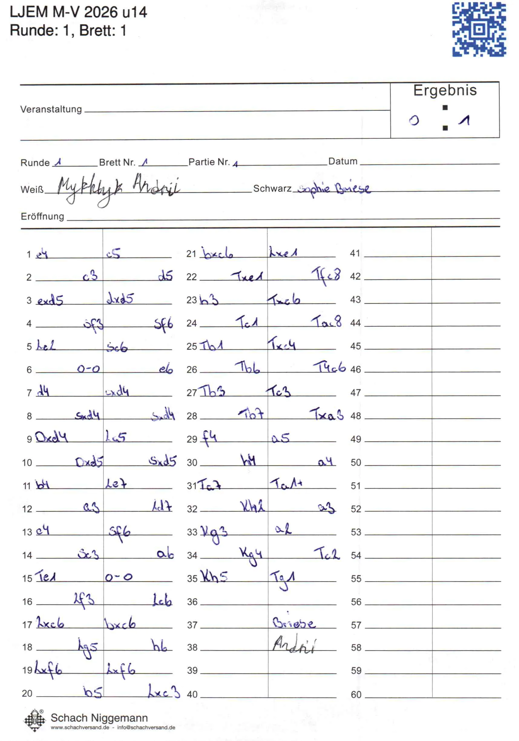 | Weiß: | Mykhlyk, Andrii | Schwarz: | Briese, Sophie |