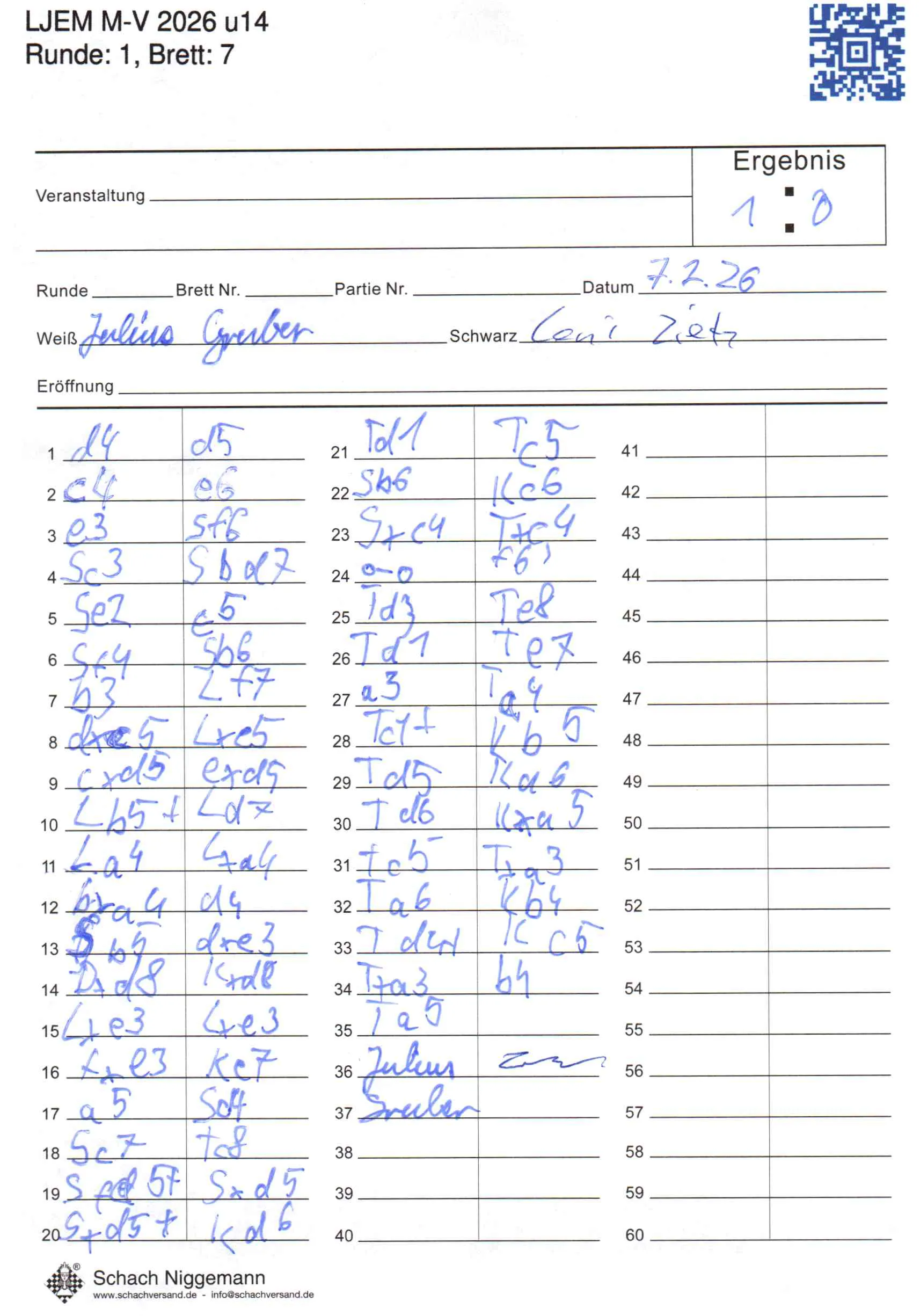 | Weiß: | Gruber, Julius | Schwarz: | Zietz, Leni |