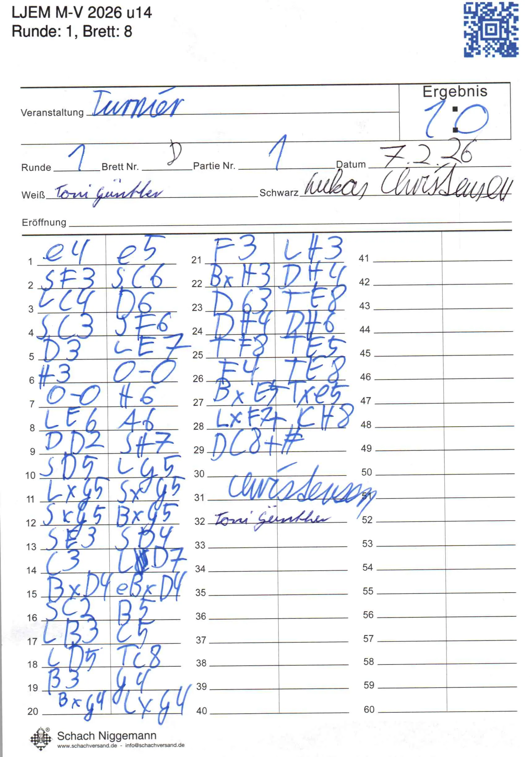 | Weiß: | Günther, Toni | Schwarz: | Christensen, Lukas |
