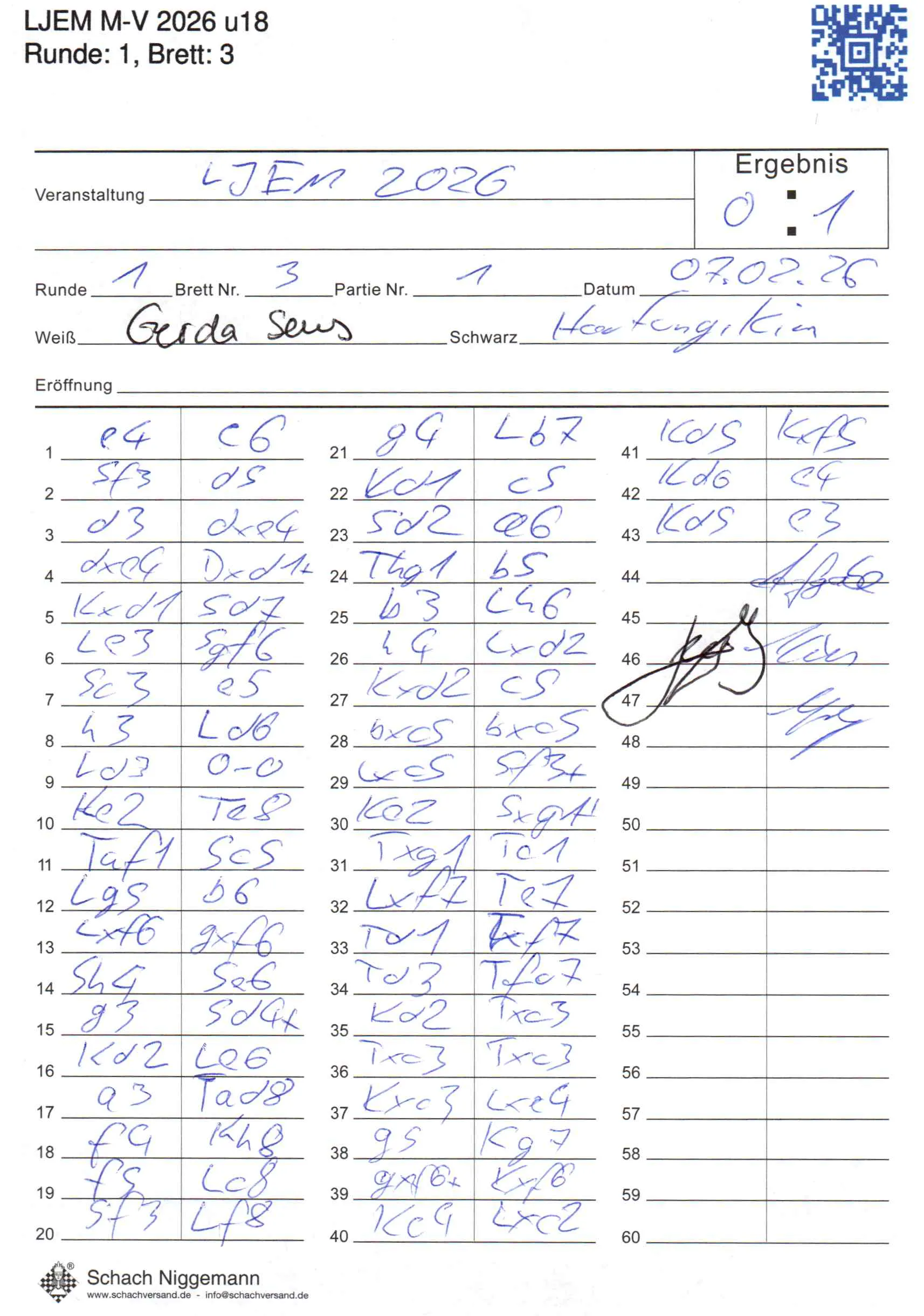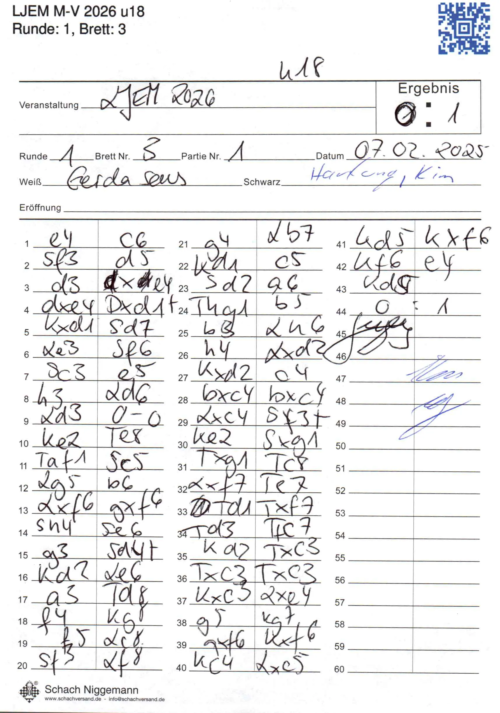 | Weiß: | Sens, Gerda | Schwarz: | Hartung, Kim |