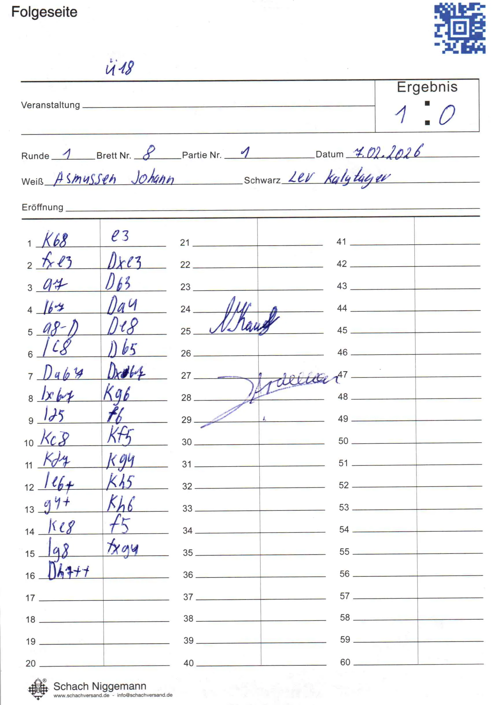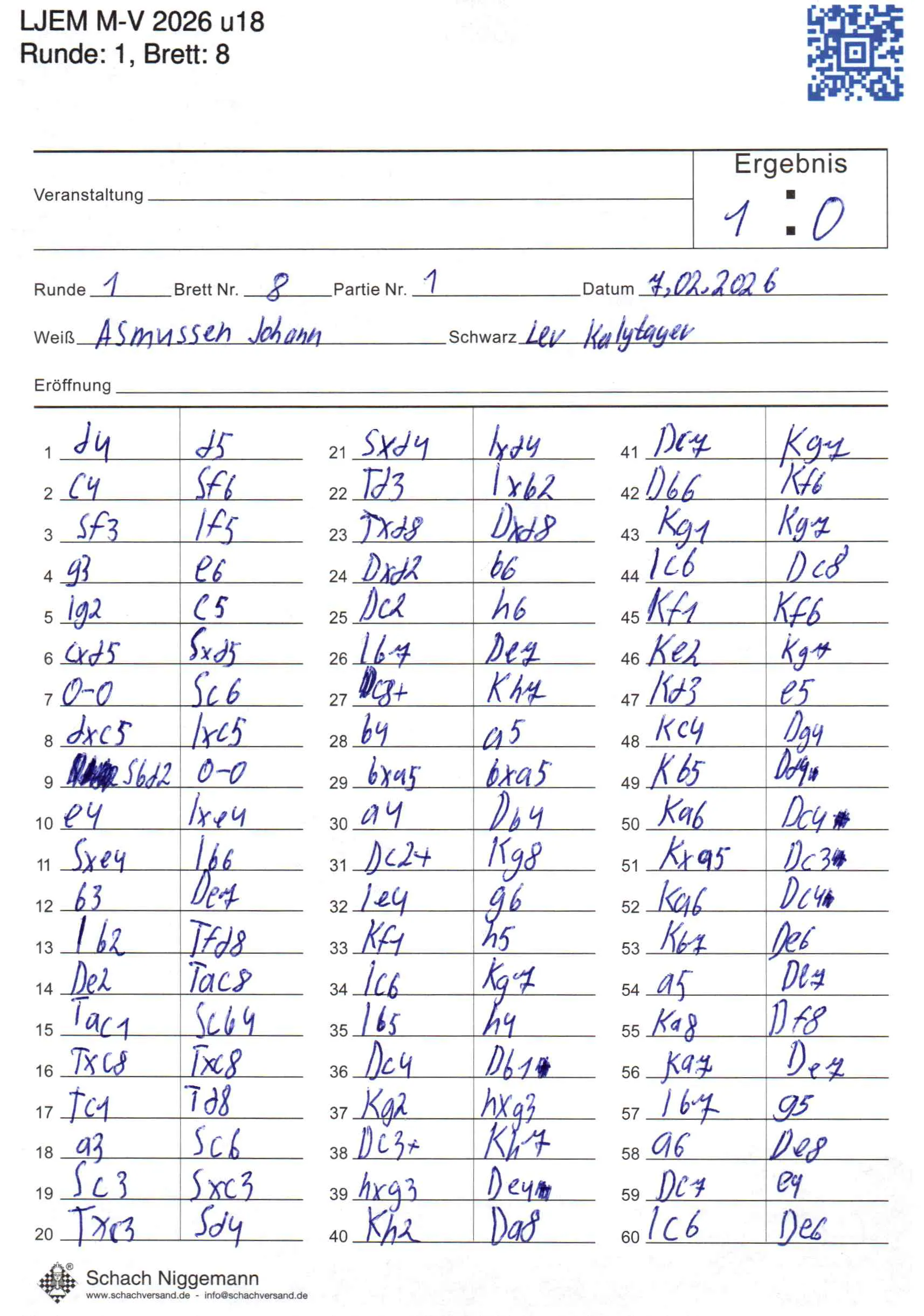 | Weiß: | Asmussen, Johann | Schwarz: | Kalytayev, Lev |