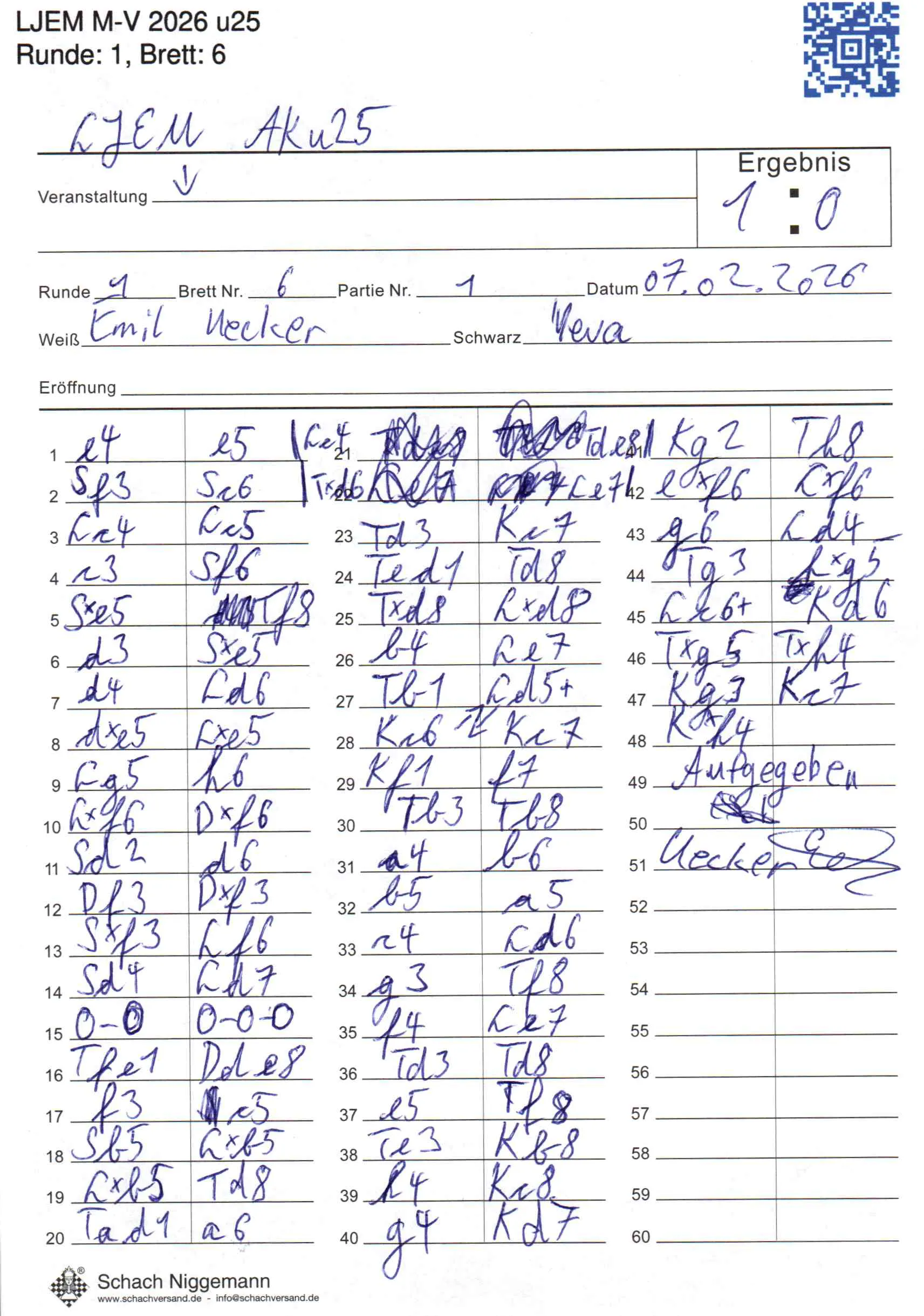 | Weiß: | Uecker, Emil | Schwarz: | Aminova, Yeva |