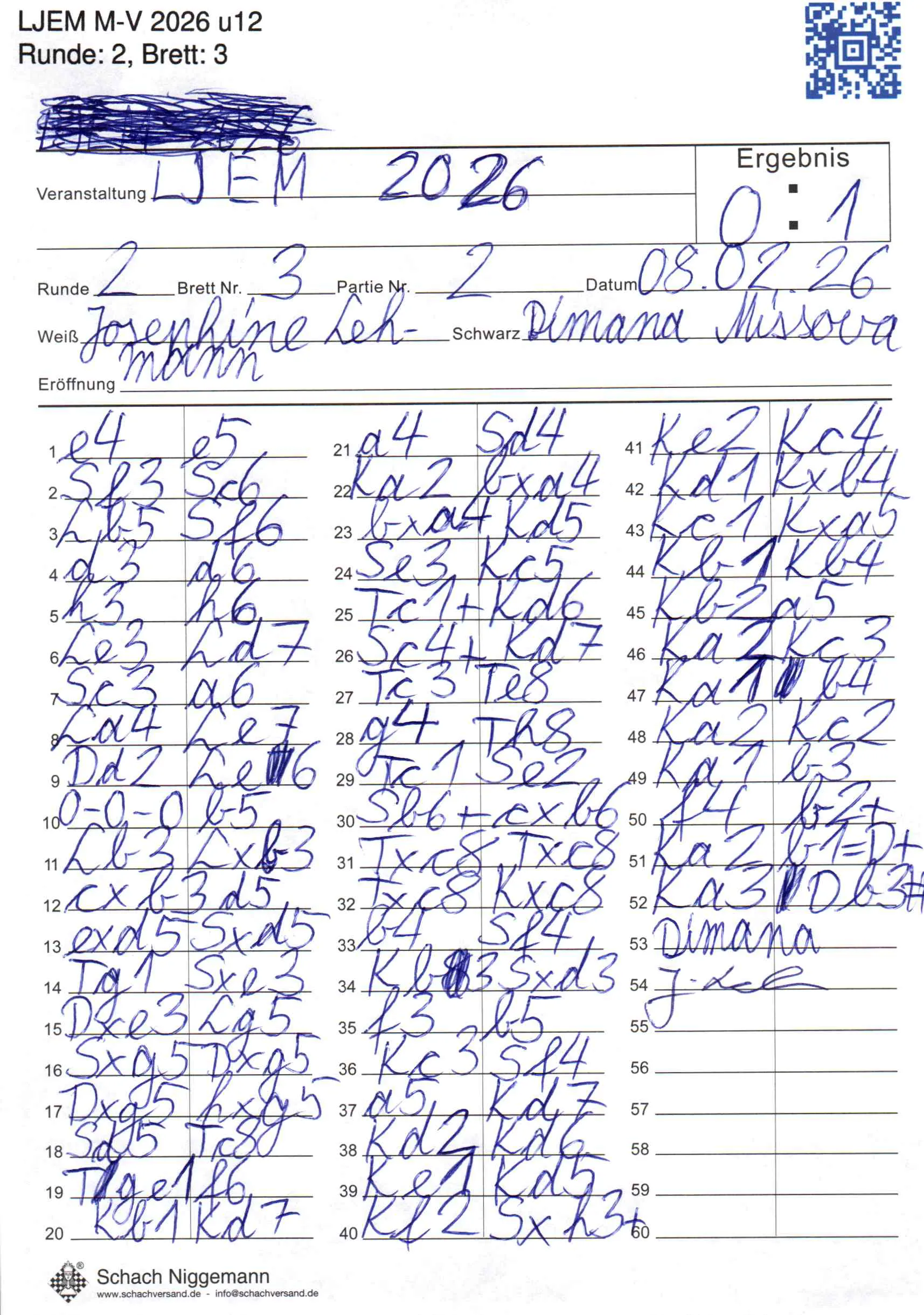 | Weiß: | Lehmann, Josephine | Schwarz: | Missova, Dimana |