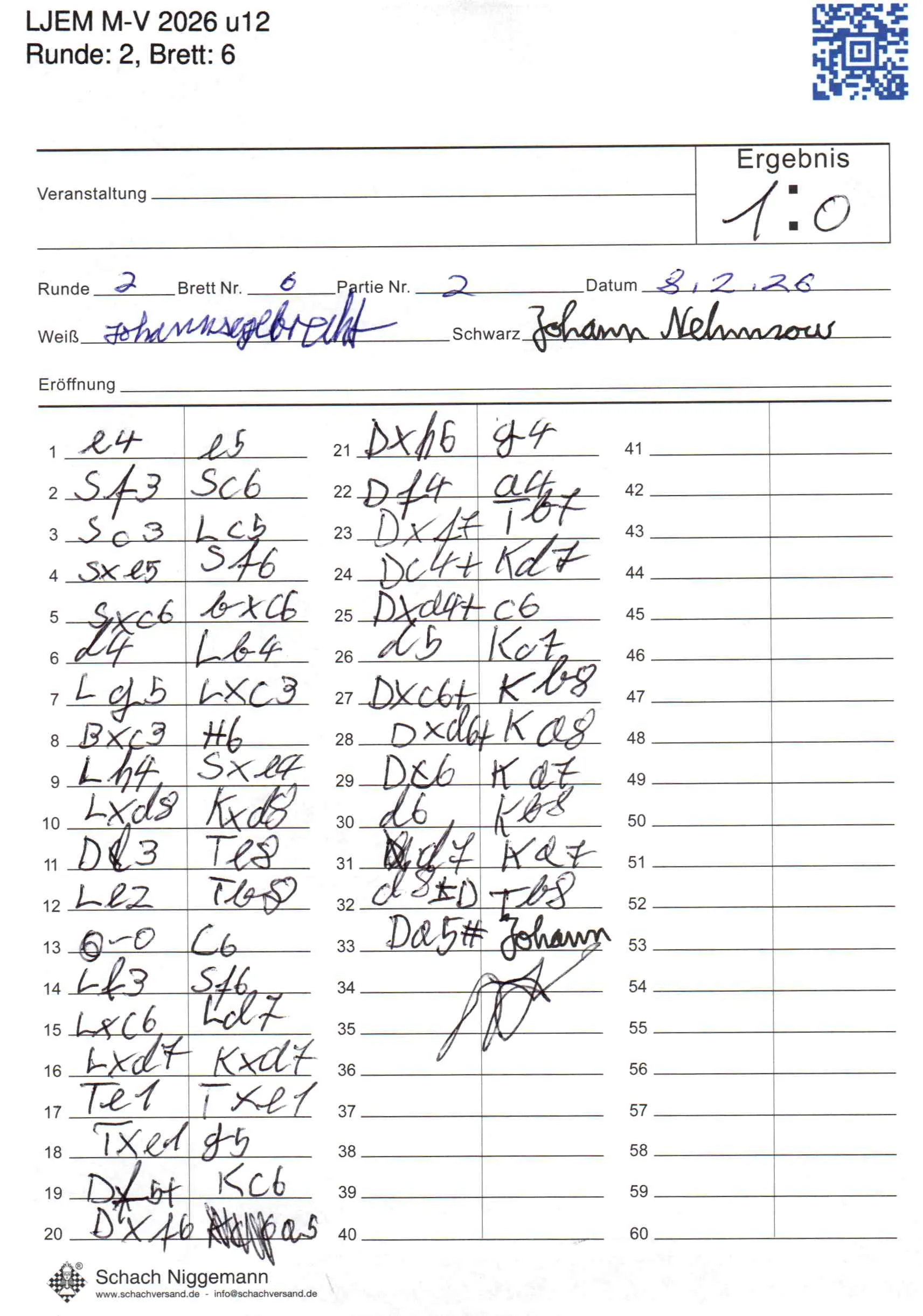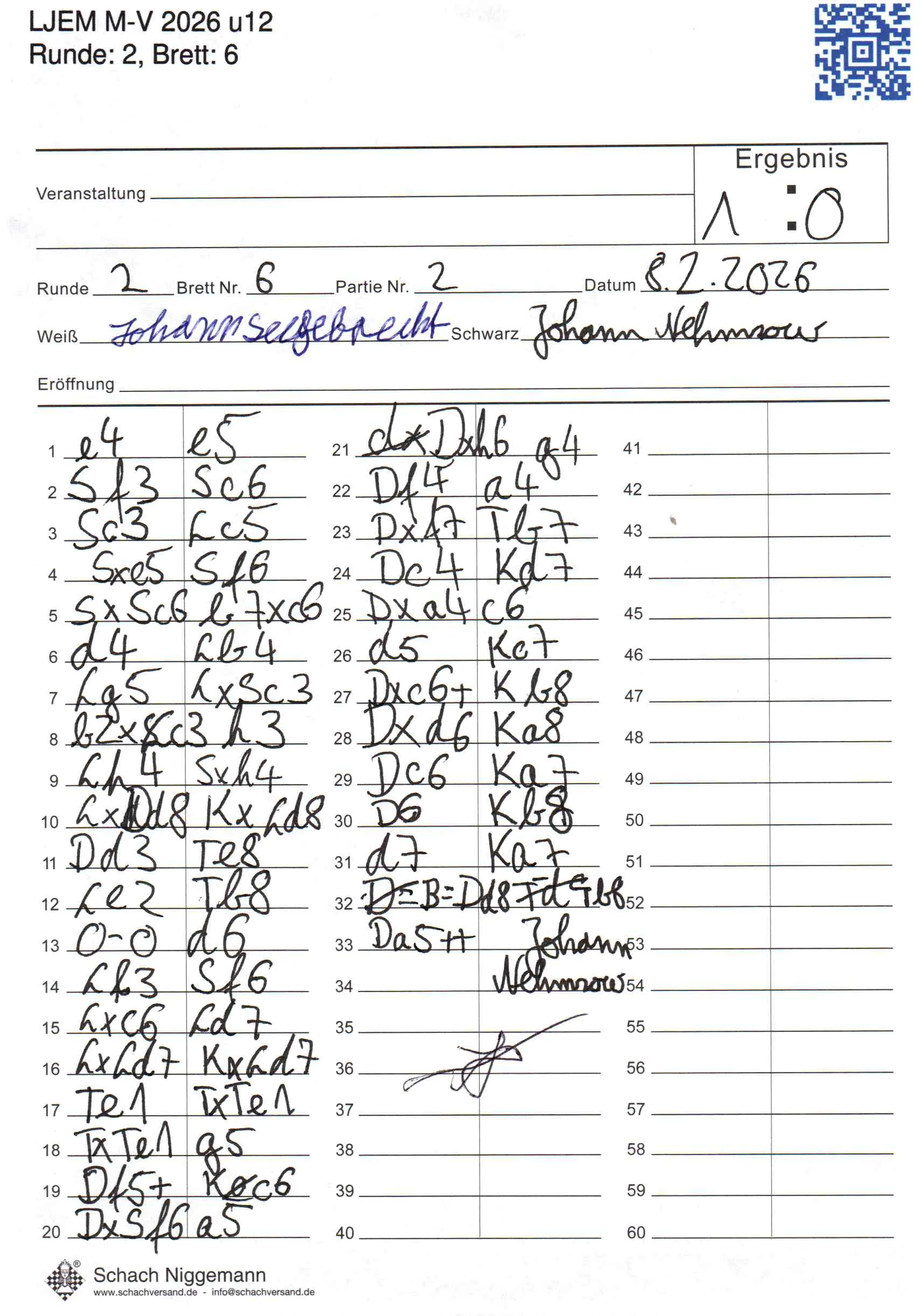 | Weiß: | Seegebrecht, Johann | Schwarz: | Nehmzow, Johann |