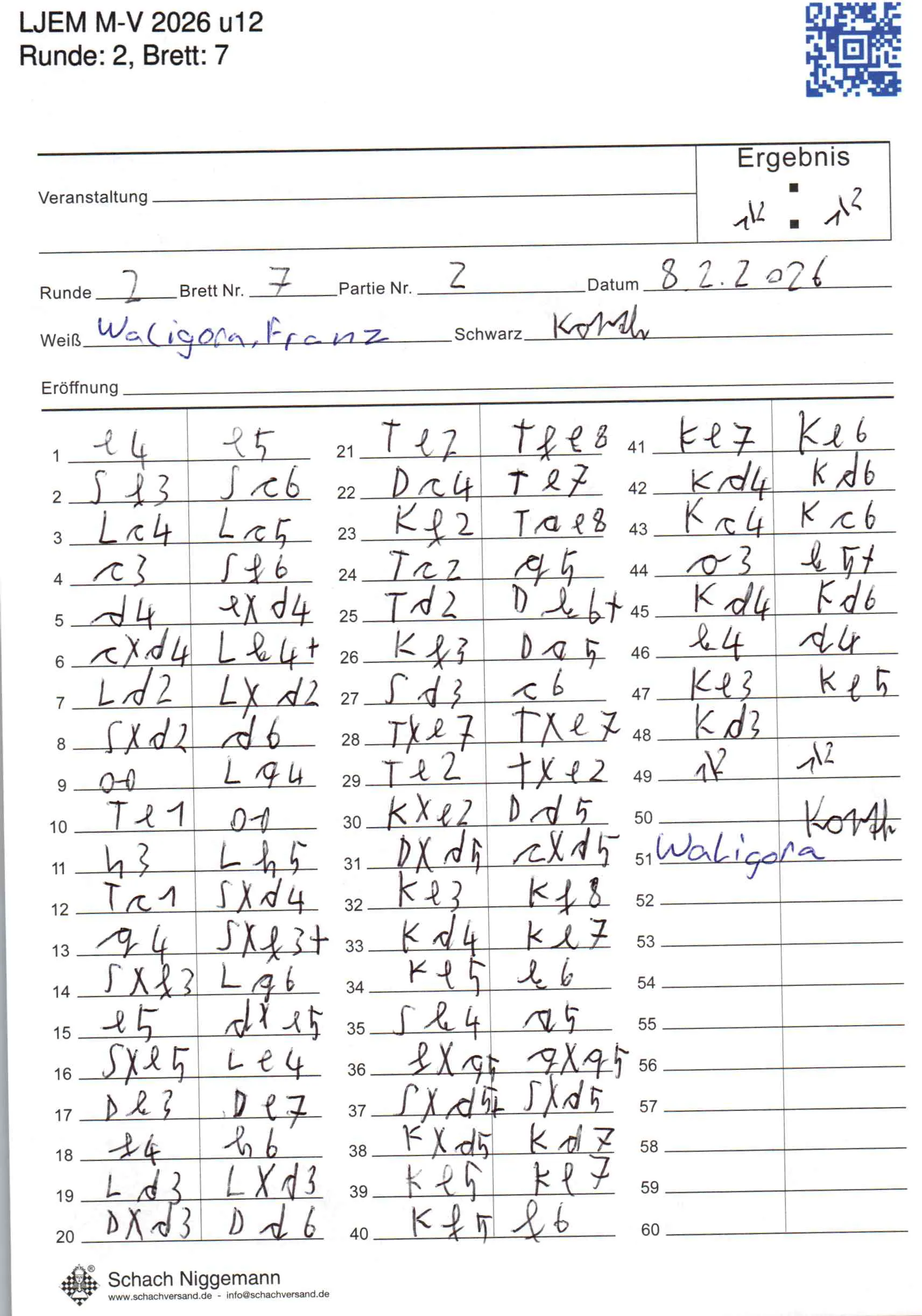 | Weiß: | Waligora, Franz | Schwarz: | Korth, Alexander |