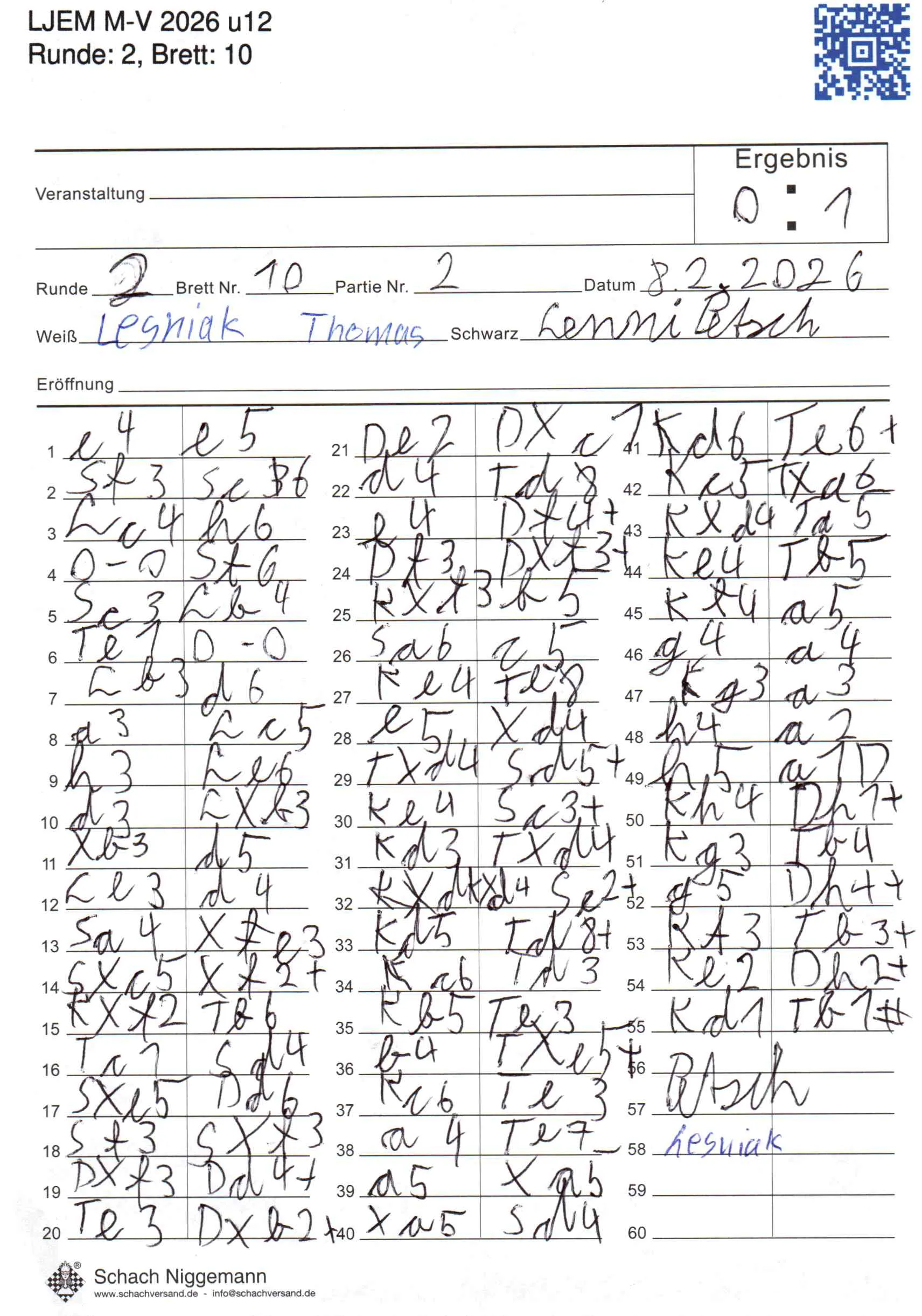| Weiß: | Lesniak, Thomas | Schwarz: | Petsch, Lenni |