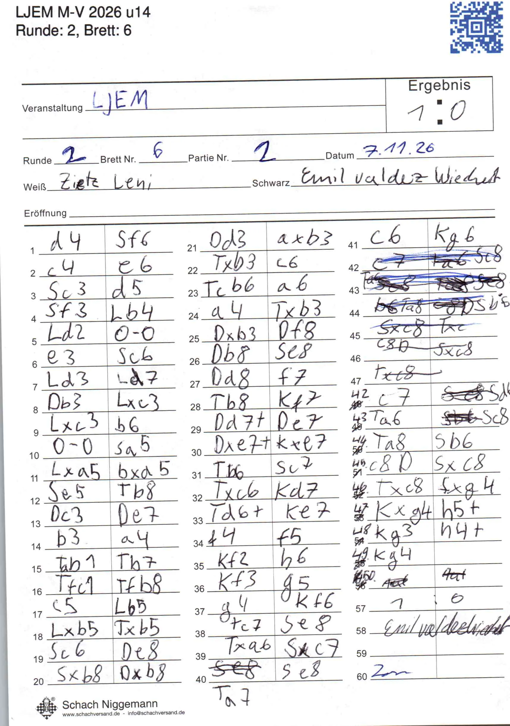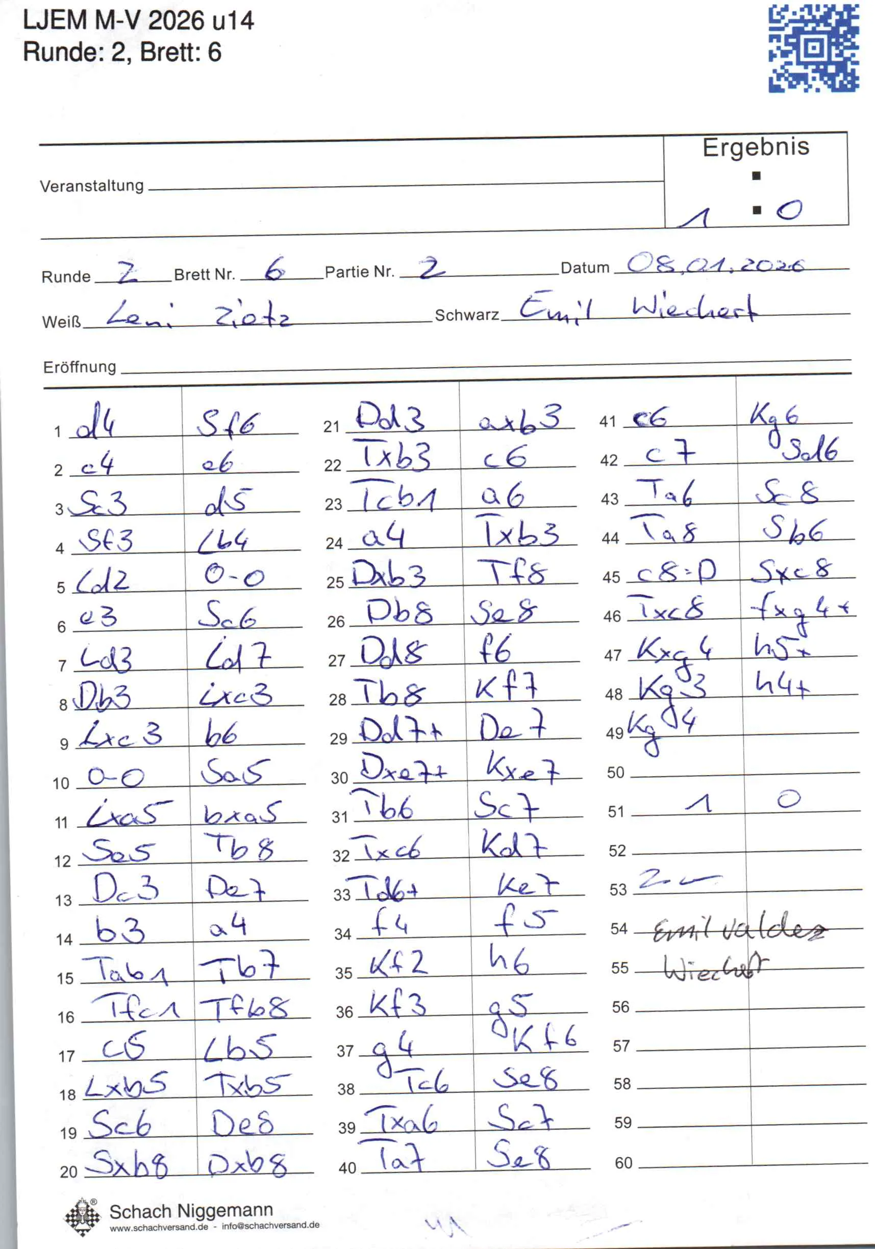 | Weiß: | Zietz, Leni | Schwarz: | Wiechert, Emil |
