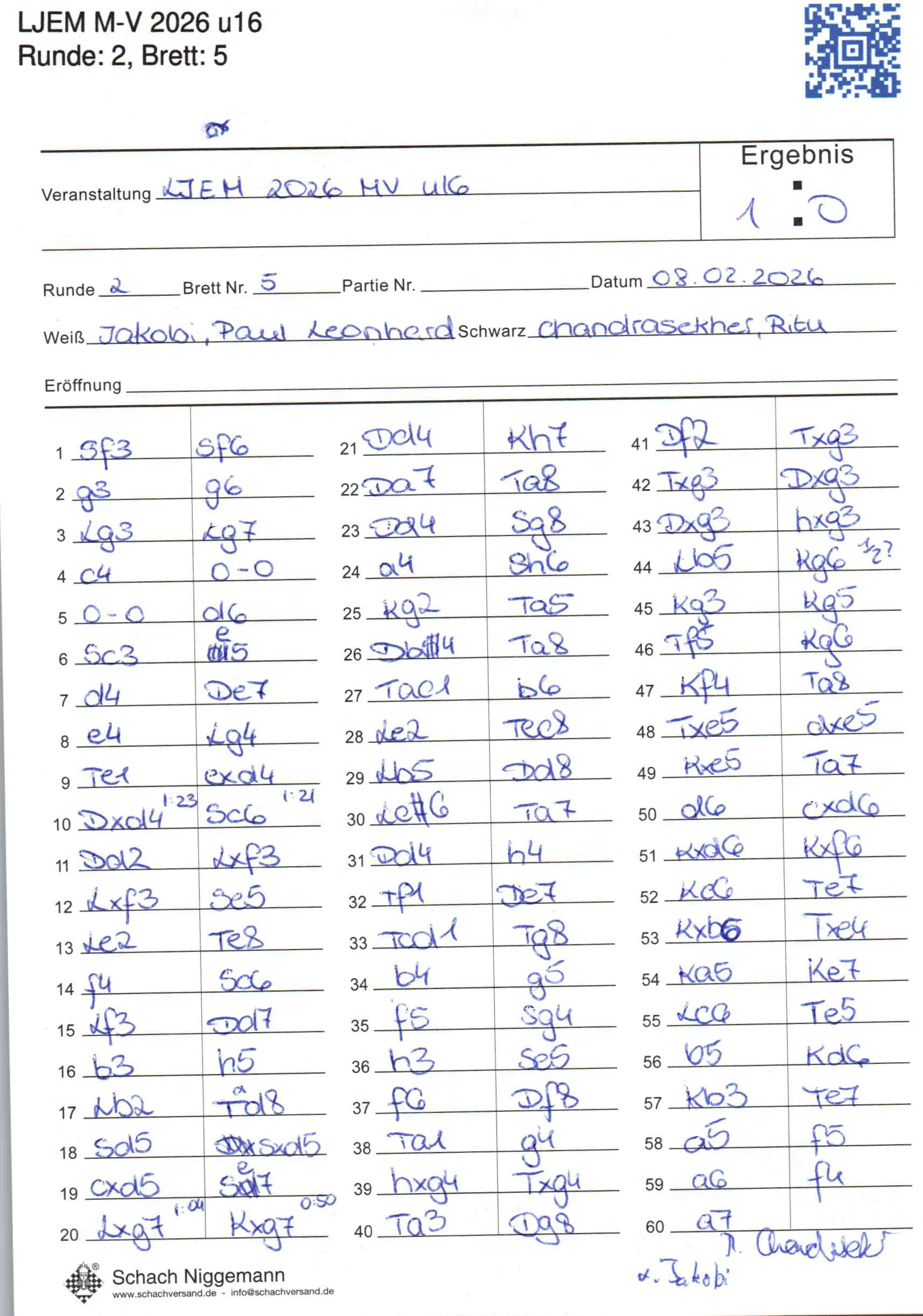 | Weiß: | Jakobi, Paul Leonhard | Schwarz: | Chandrasekher, Ritu |