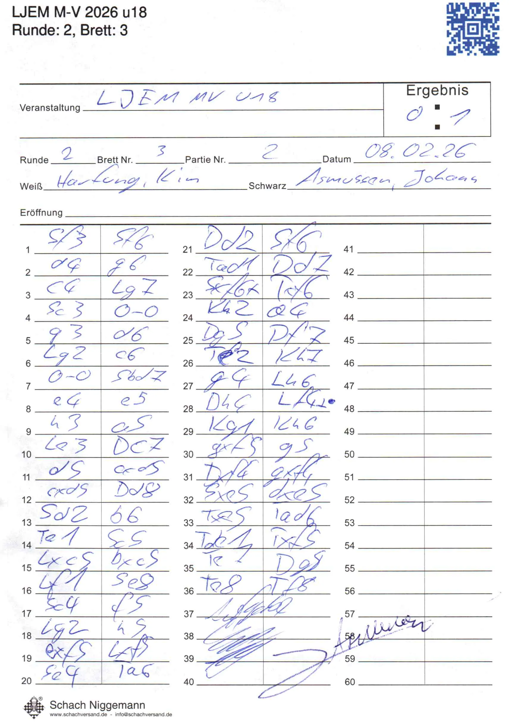 | Weiß: | Hartung, Kim | Schwarz: | Asmussen, Johann |