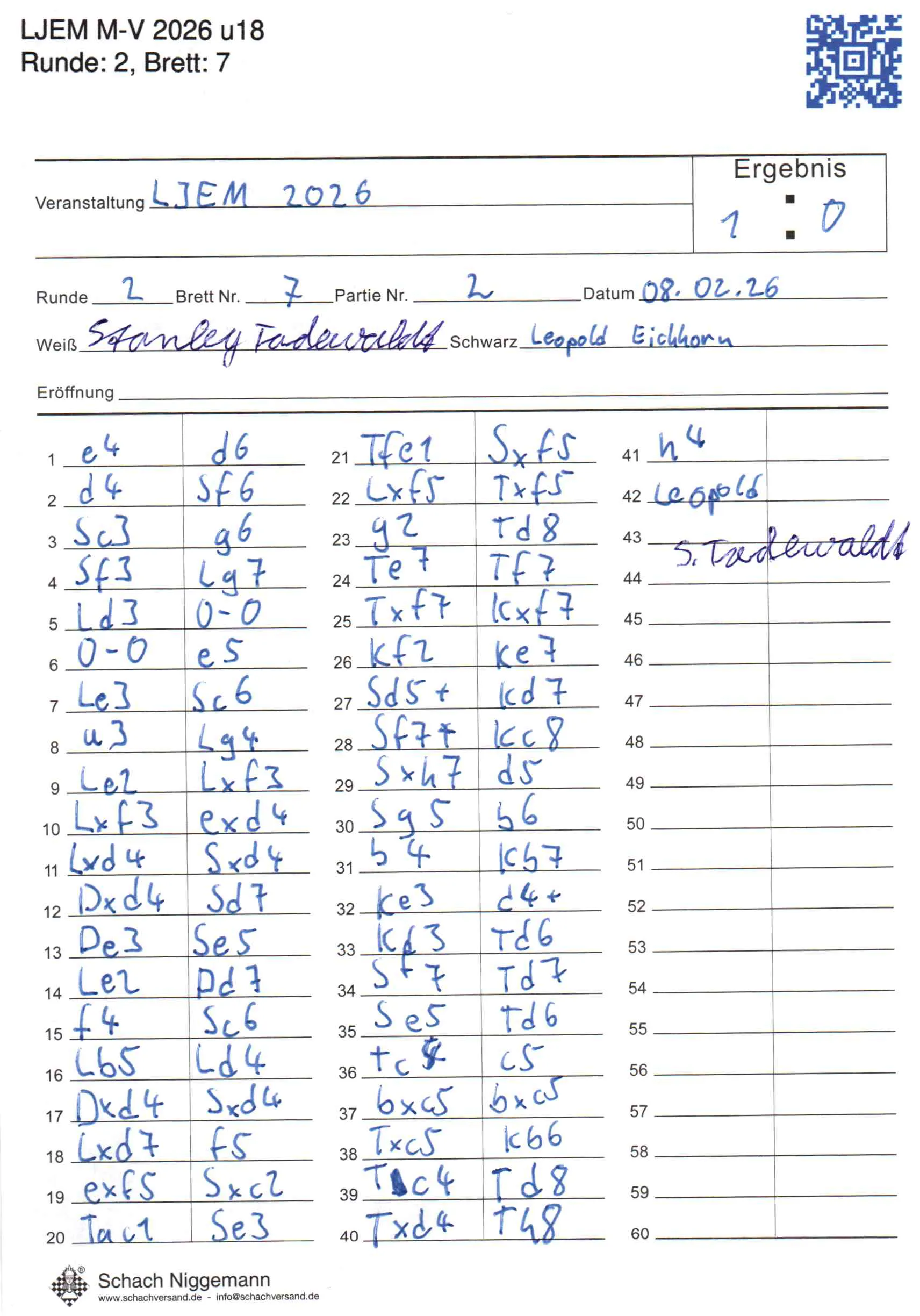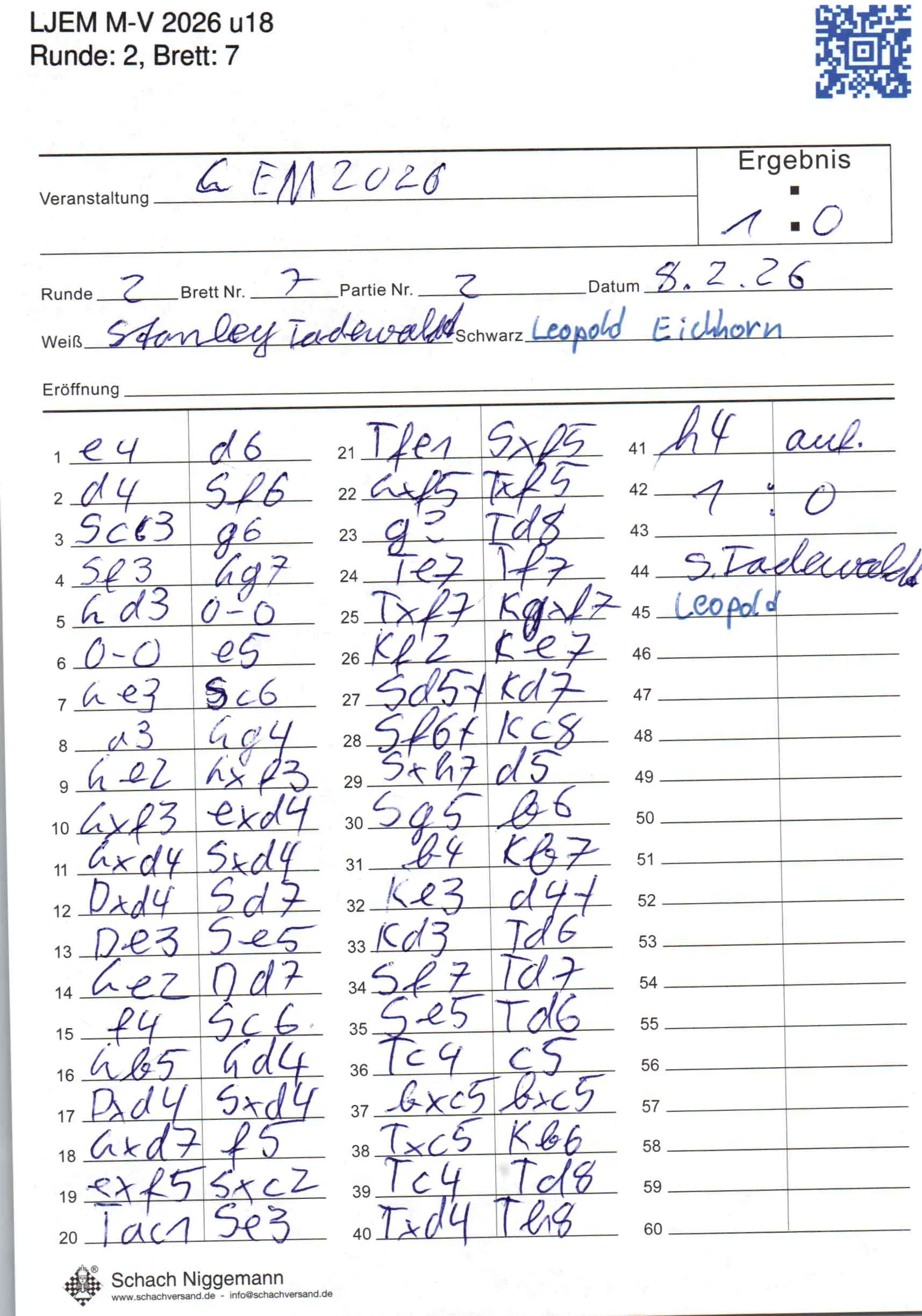 | Weiß: | Tadewaldt, Stanley Fiete | Schwarz: | Eichhorn, Leopold |