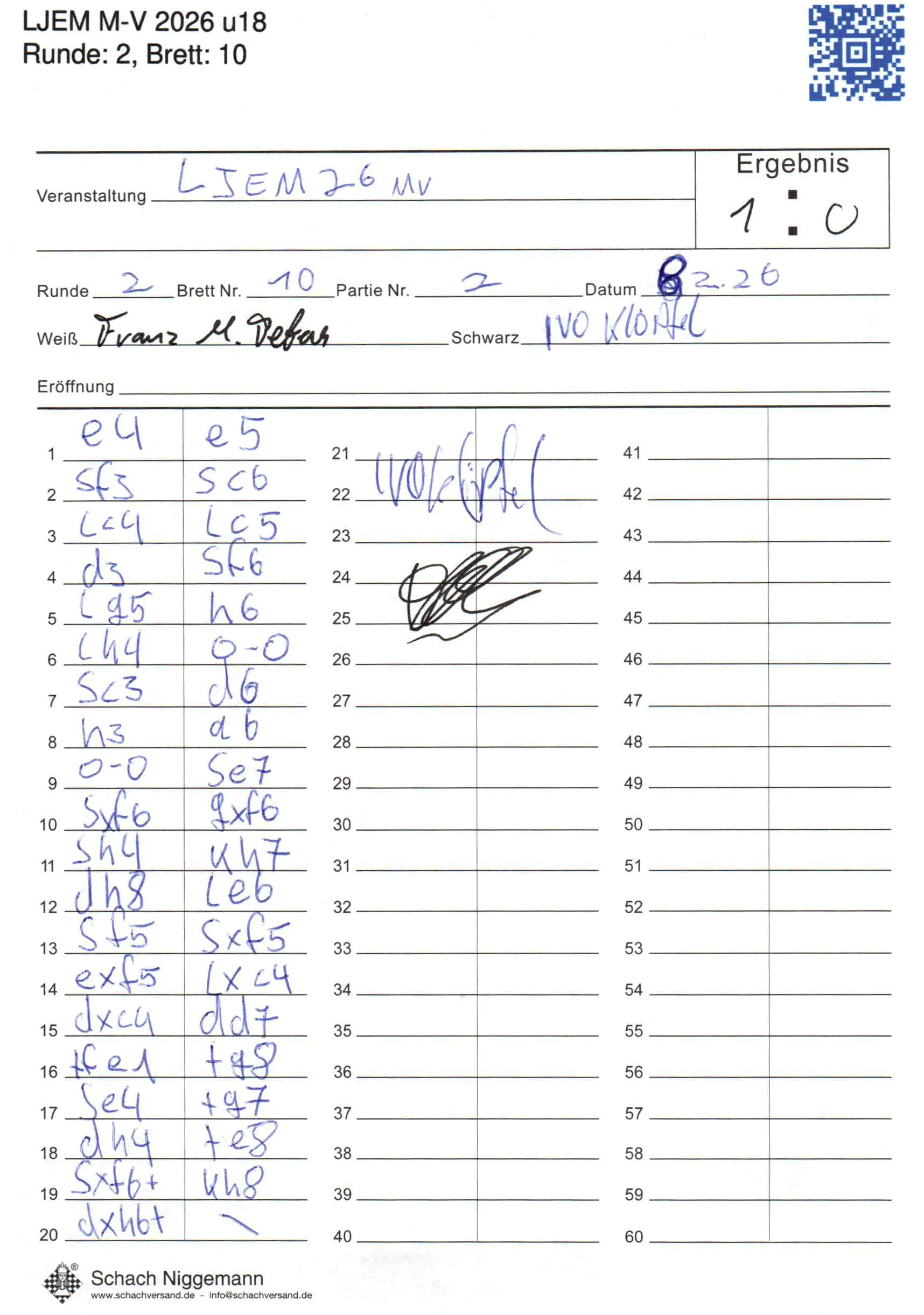 | Weiß: | Peters, Franz | Schwarz: | Klöpfel, Ivo |