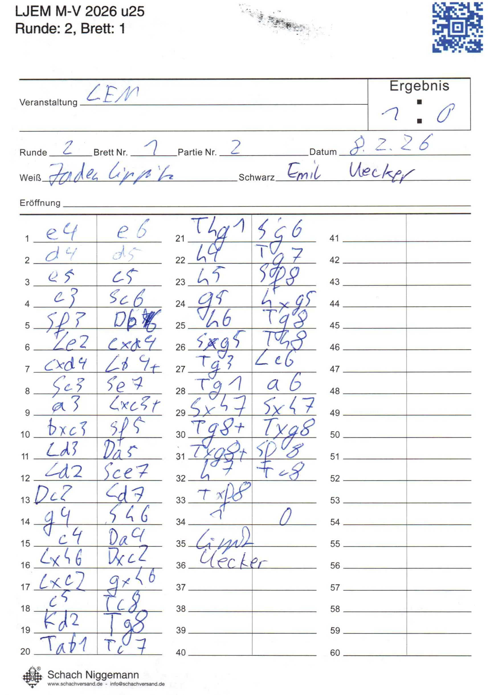 | Weiß: | Lippitz, Jaden | Schwarz: | Uecker, Emil |
