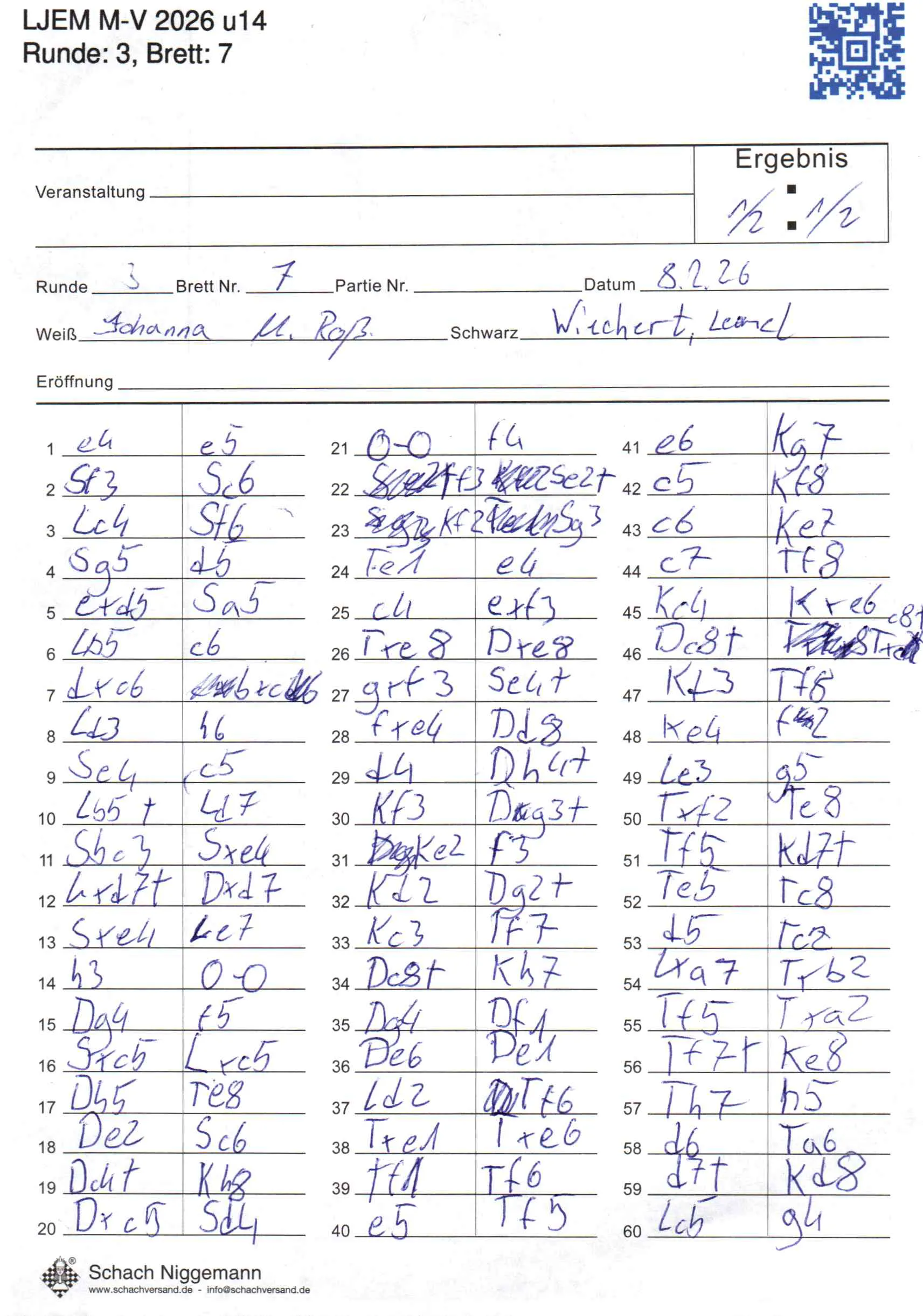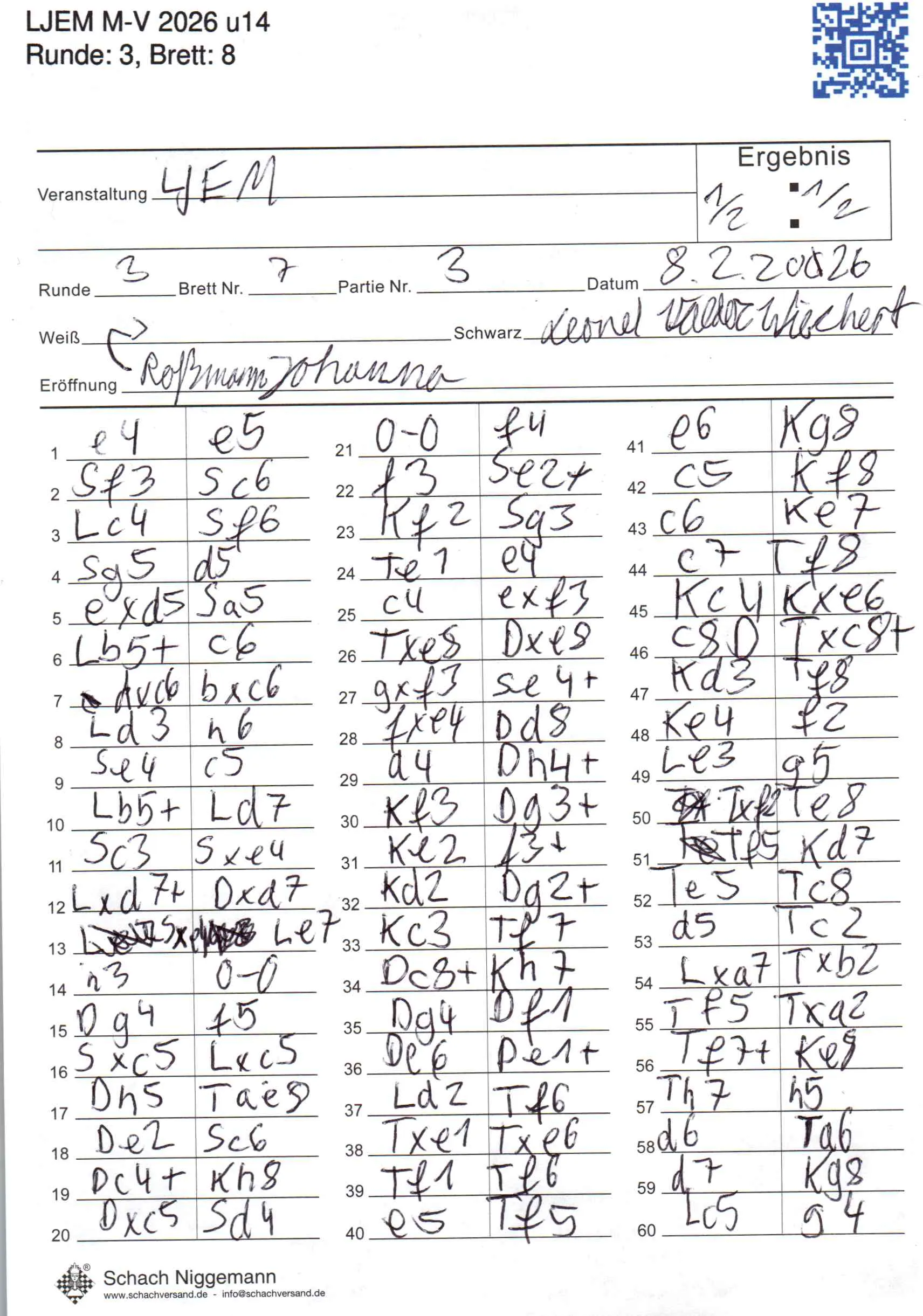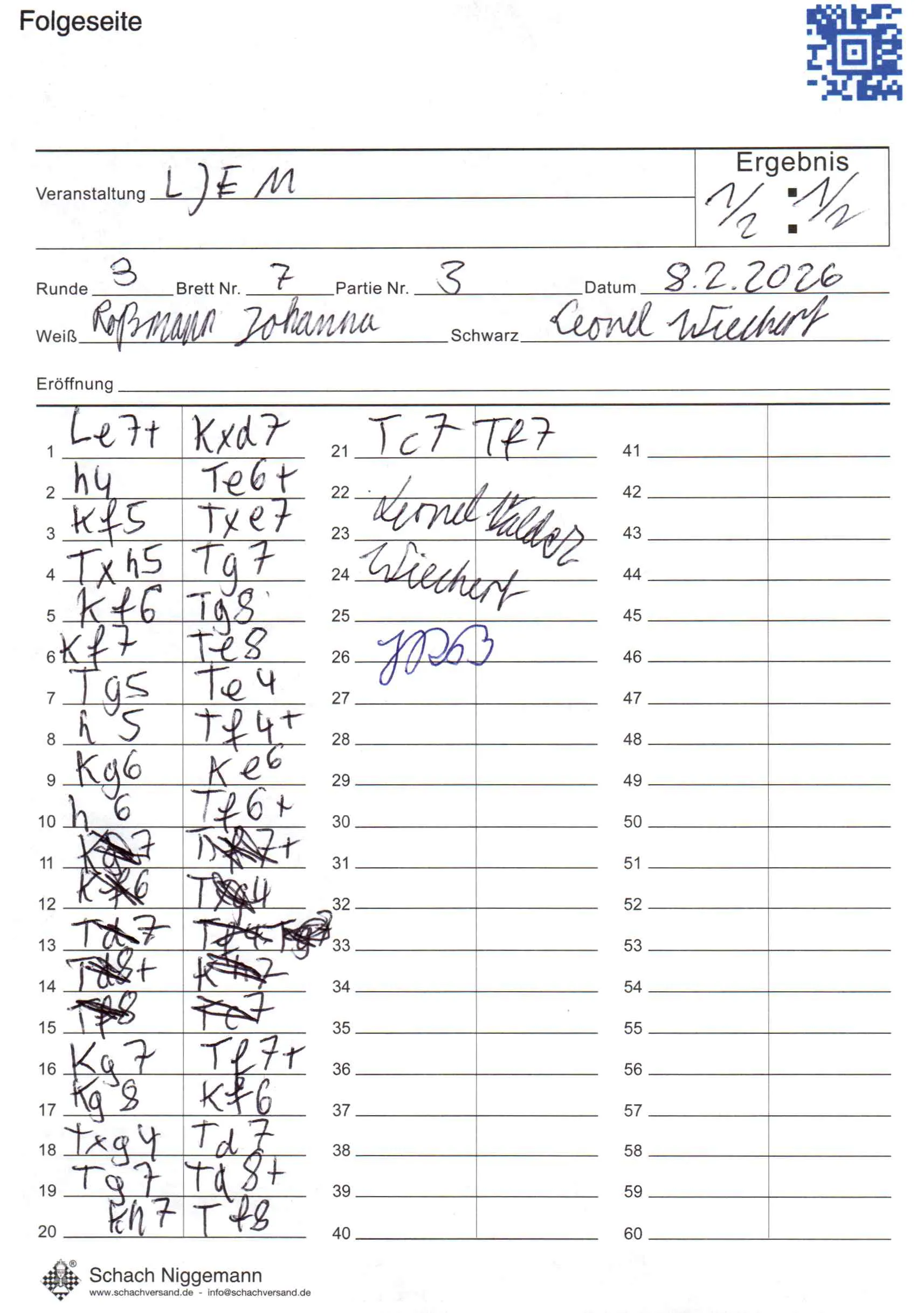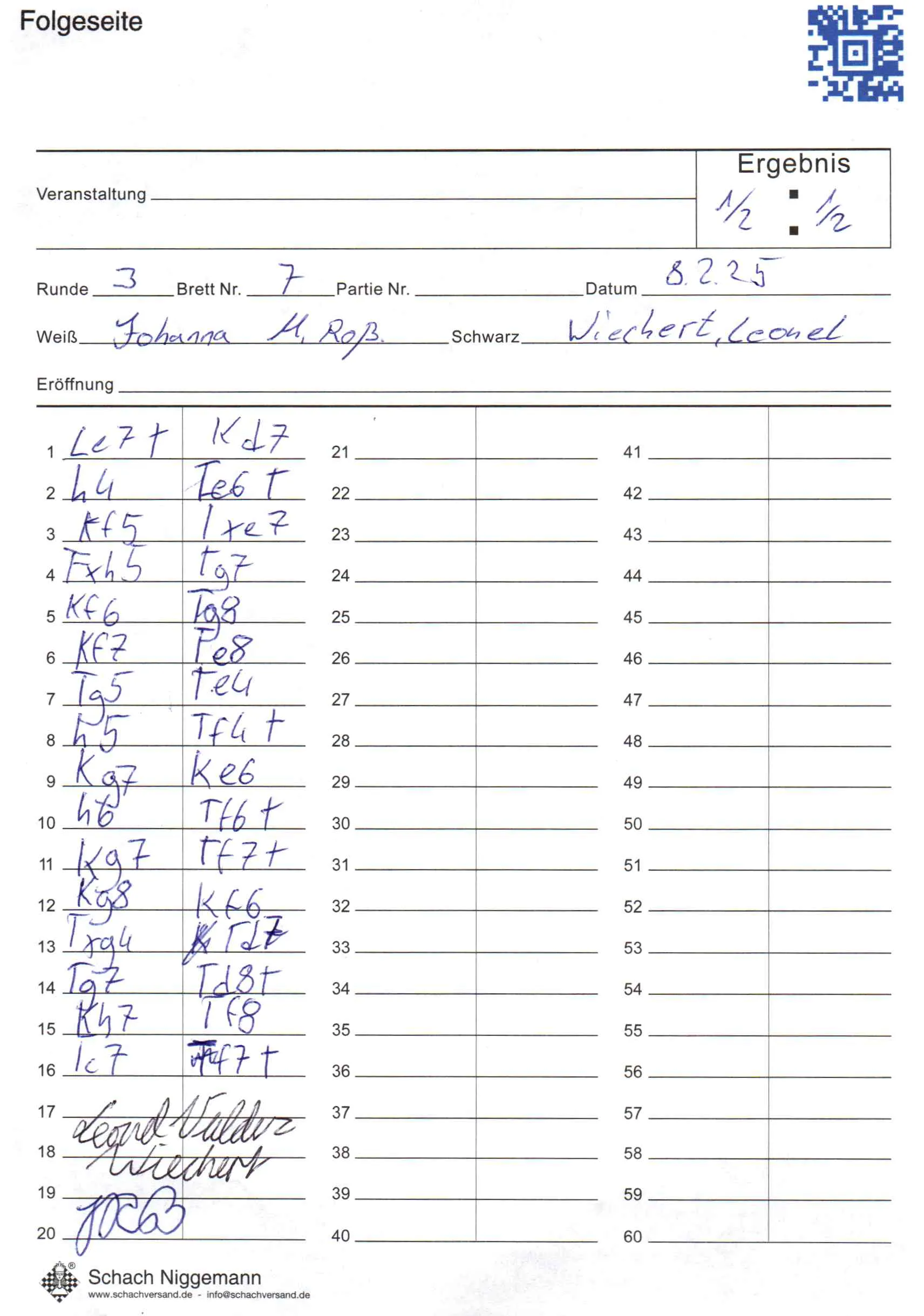 | Weiß: | Roßmann, Johanna Maria | Schwarz: | Wiechert, Leonel |