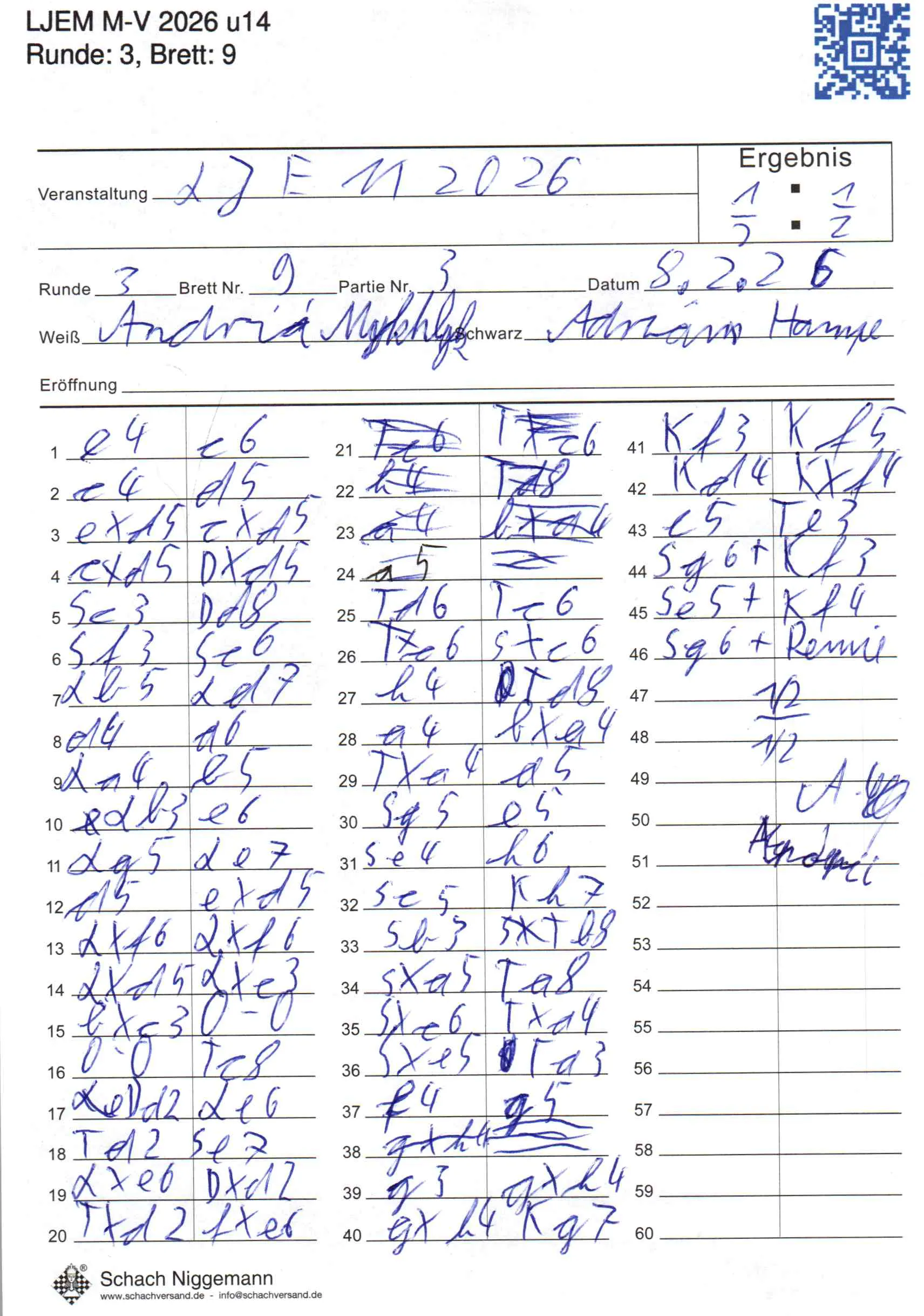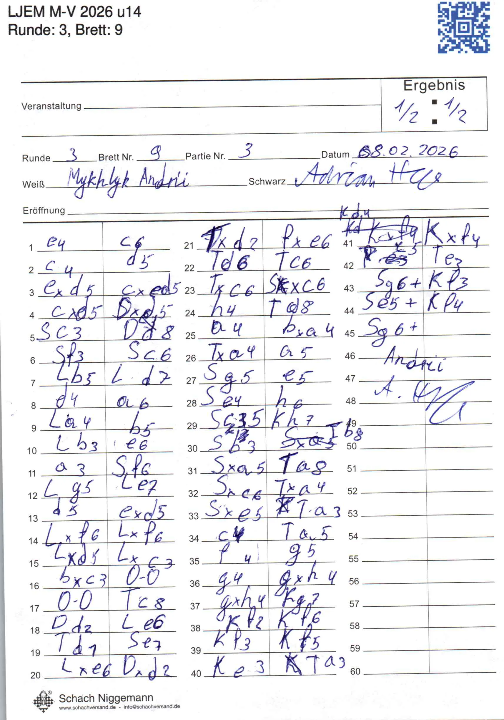 | Weiß: | Mykhlyk, Andrii | Schwarz: | Hampe, Adrian |