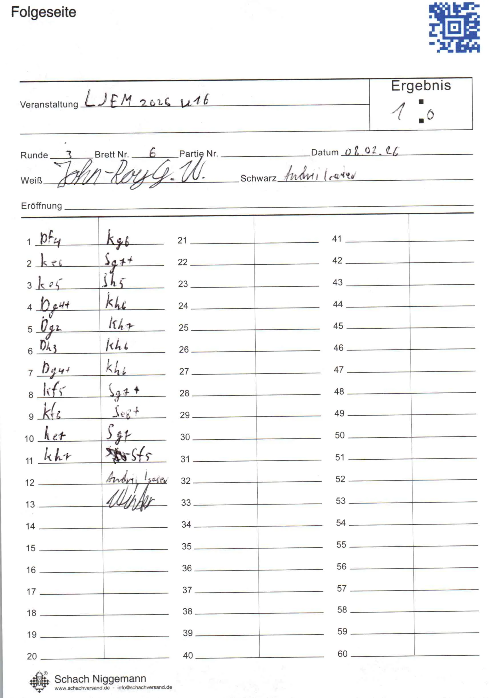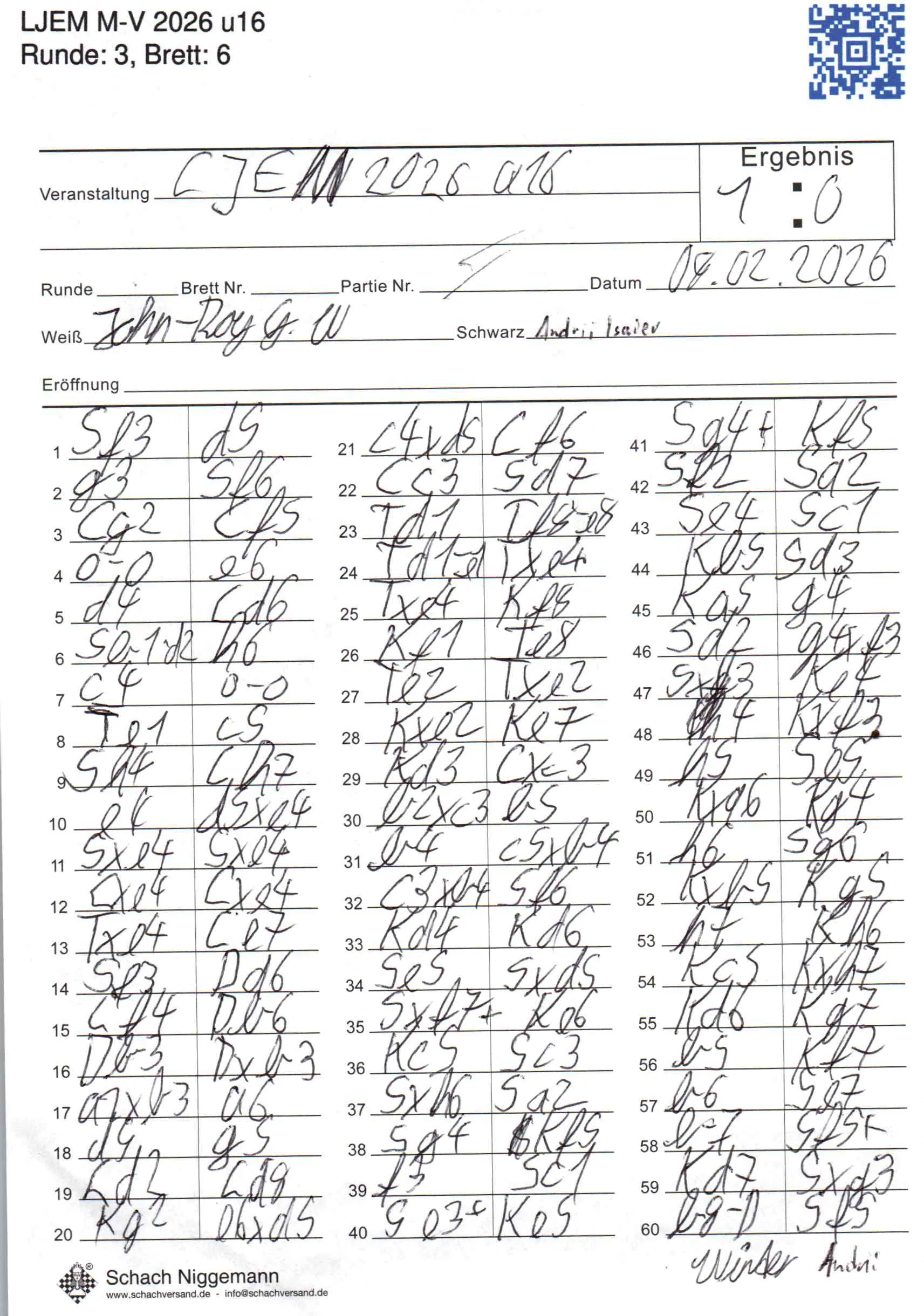 | Weiß: | Winter, John-Roy Günter | Schwarz: | Isaiev, Andrii |