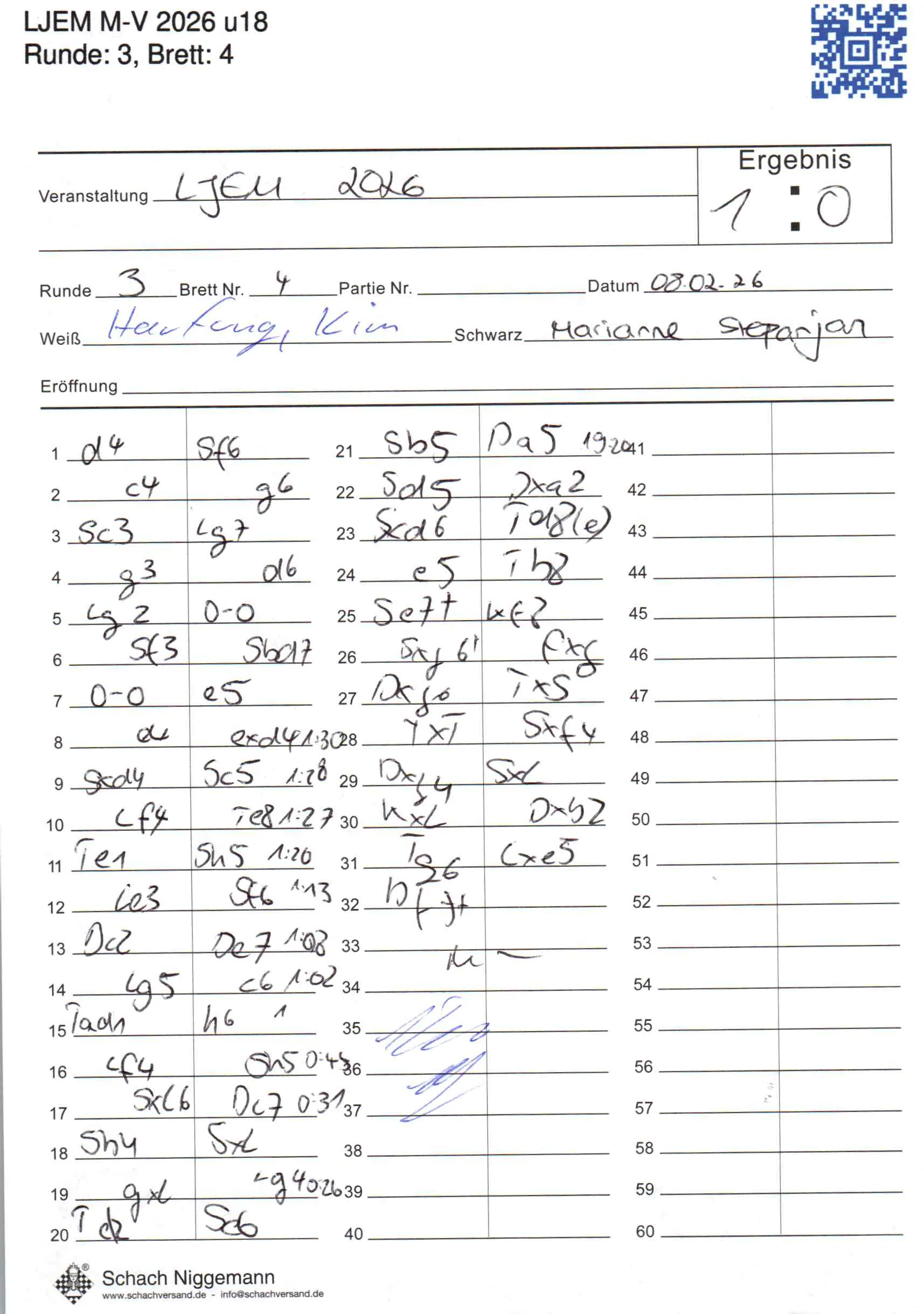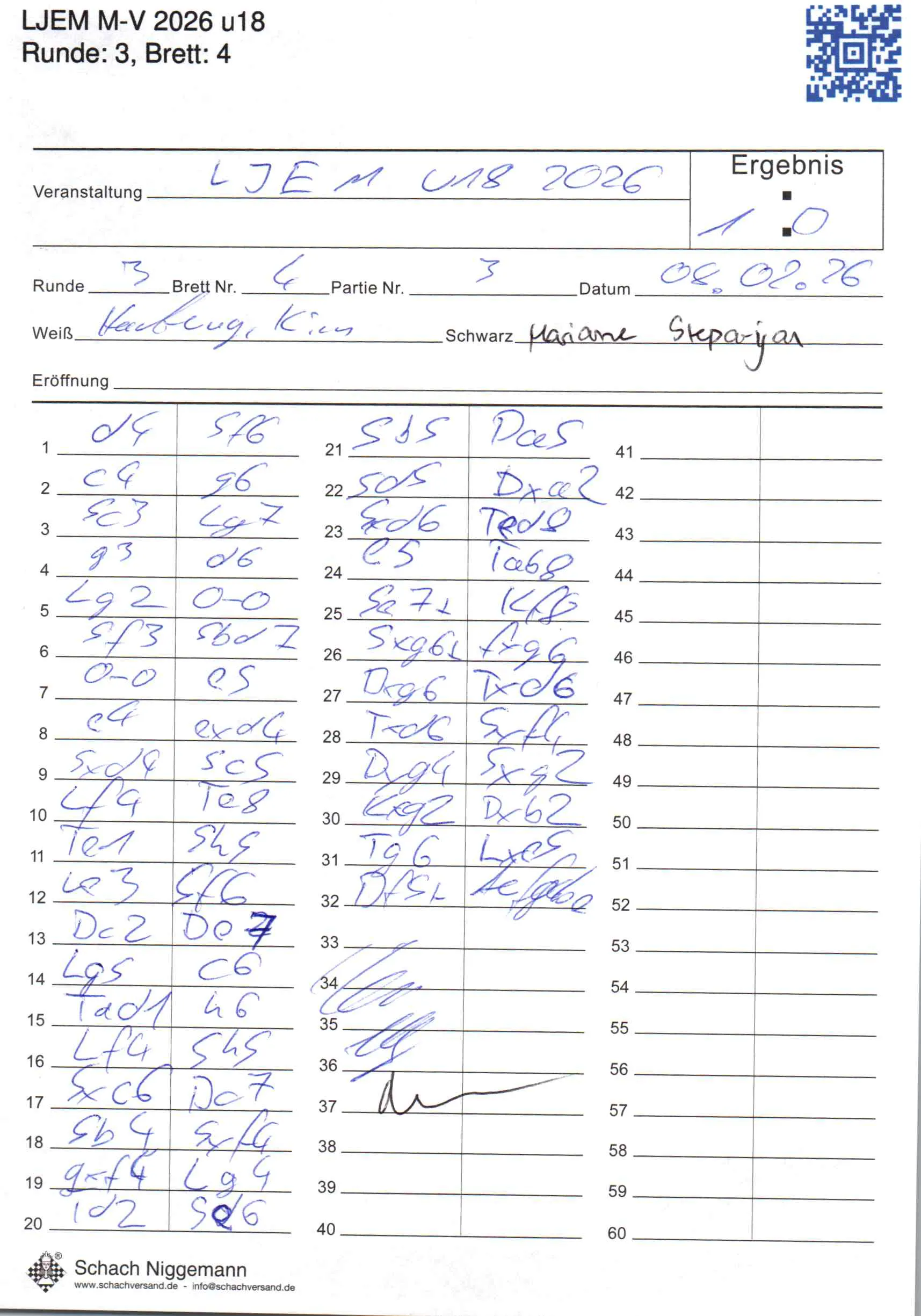| Weiß: | Hartung, Kim | Schwarz: | Stepanjan, Marianne |