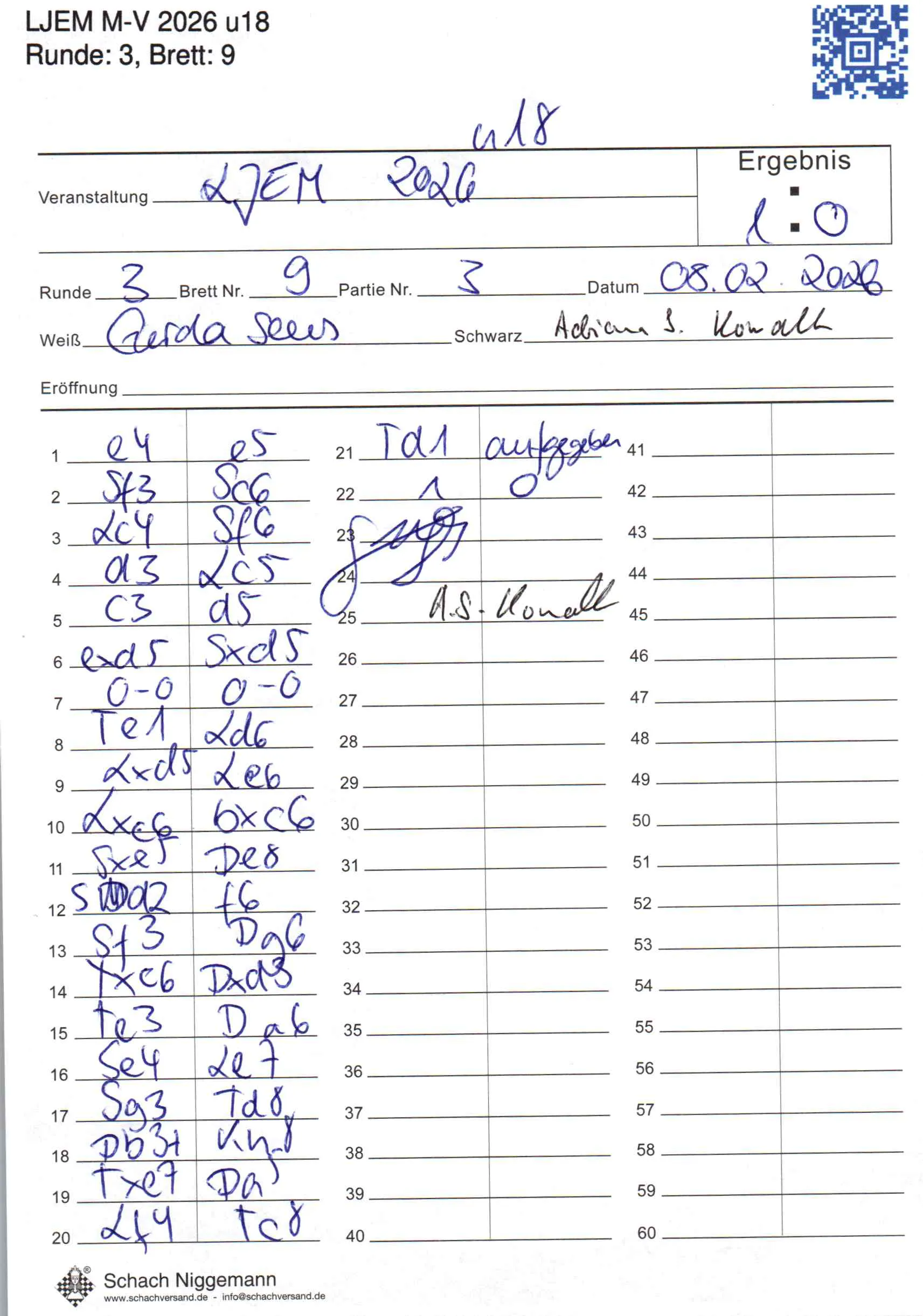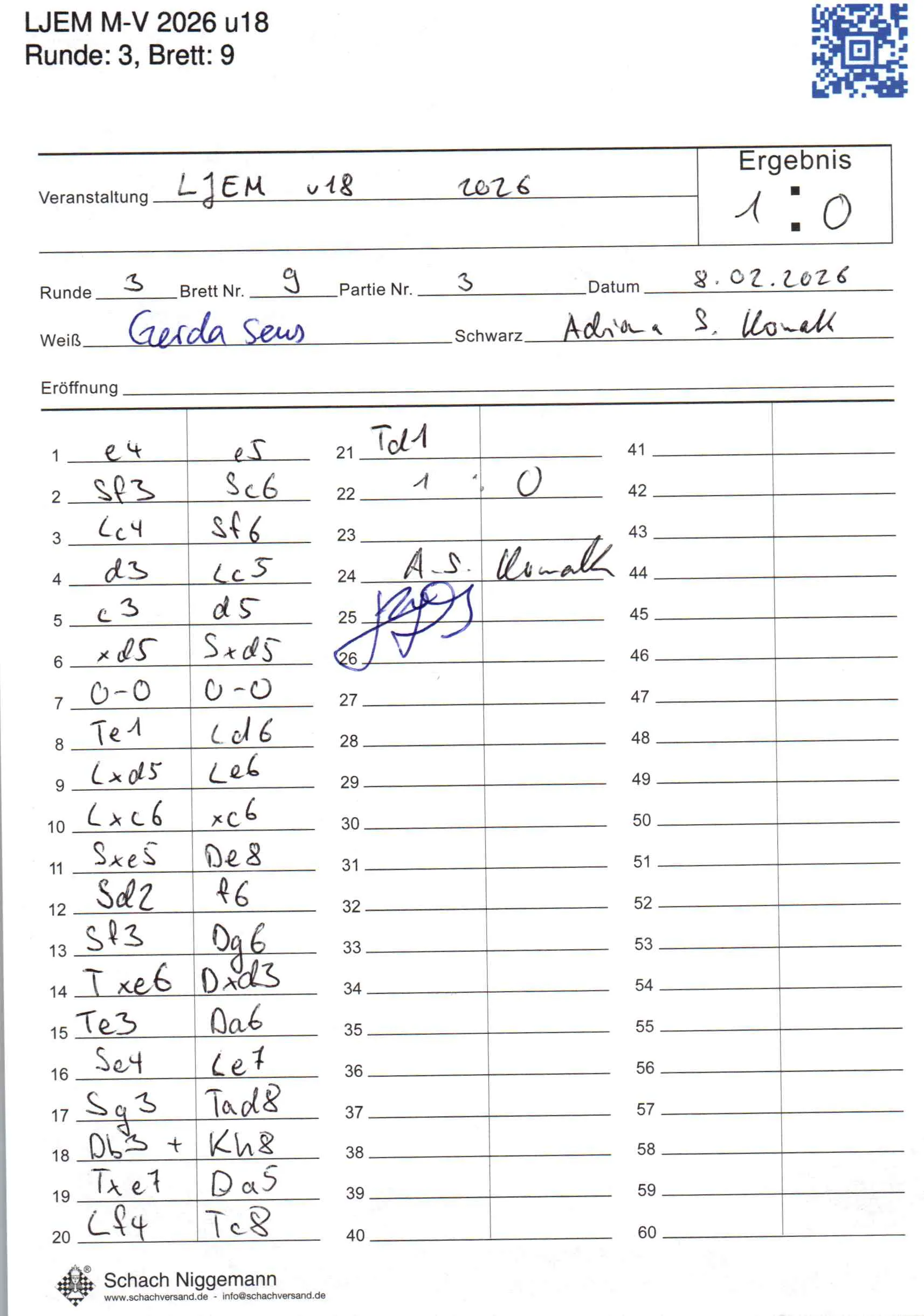 | Weiß: | Sens, Gerda | Schwarz: | Kowalk, Adriana Sophie |