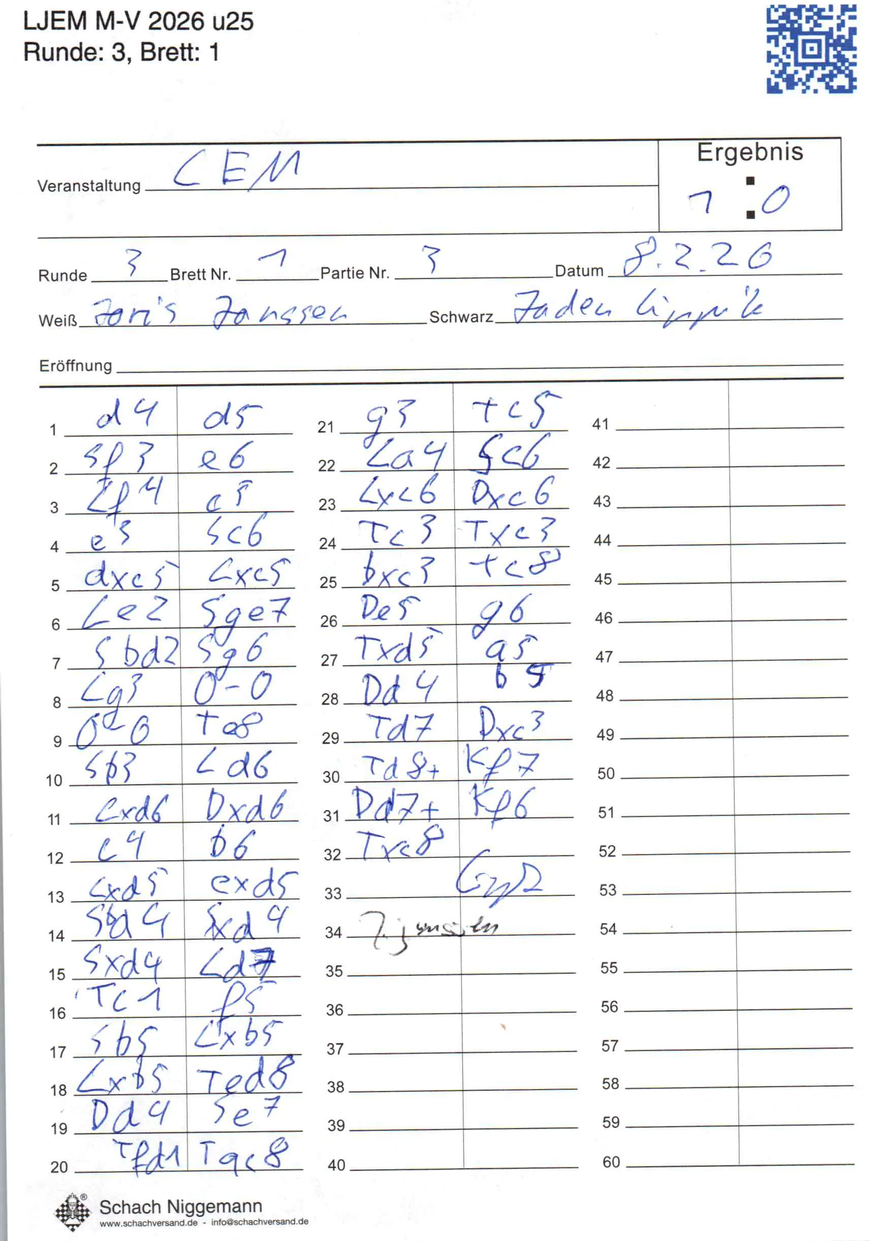 | Weiß: | Janssen, Joris Frederik | Schwarz: | Lippitz, Jaden |