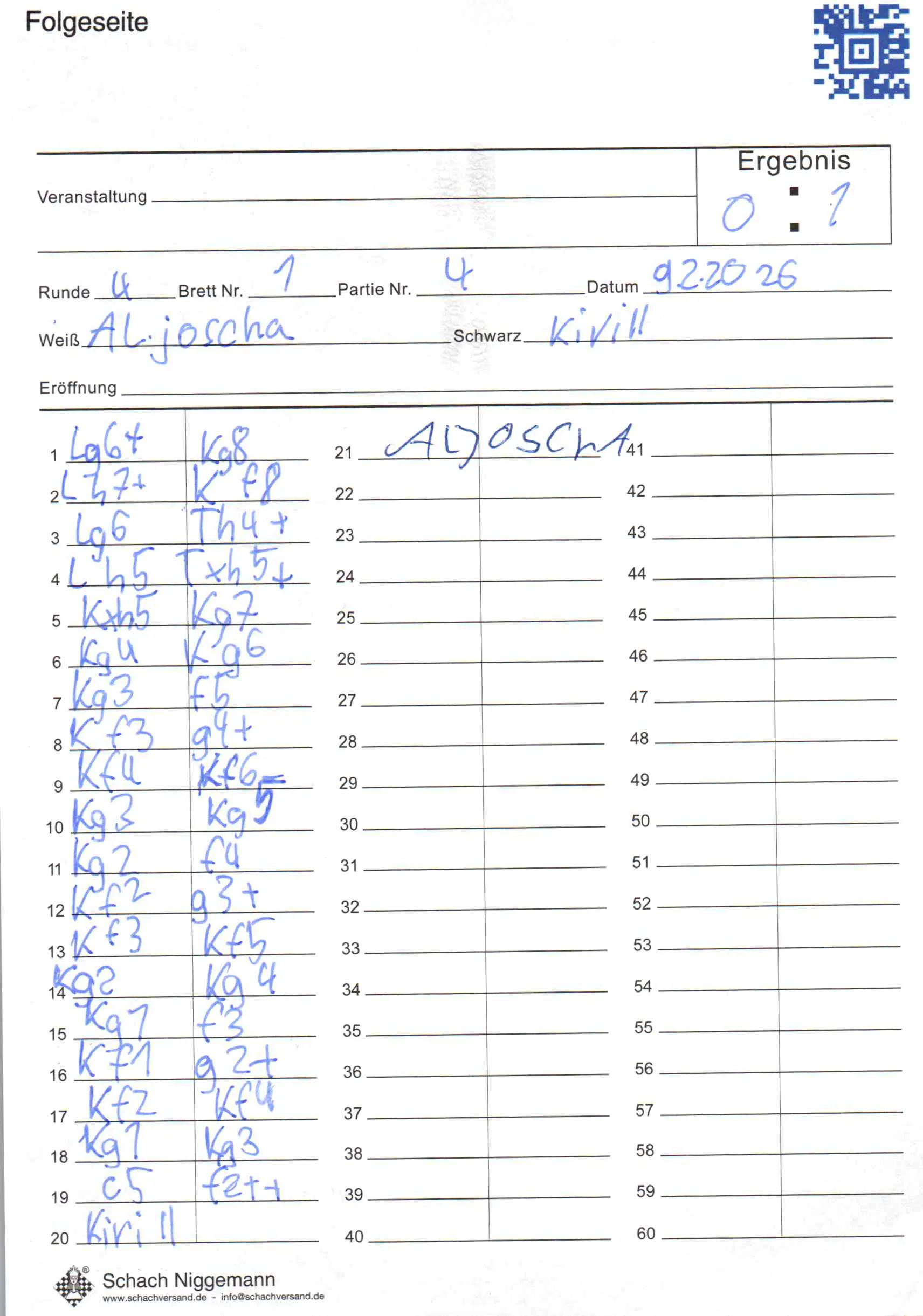 | Weiß: | Rokhinson, Aljoscha | Schwarz: | Patrakov, Kirill |