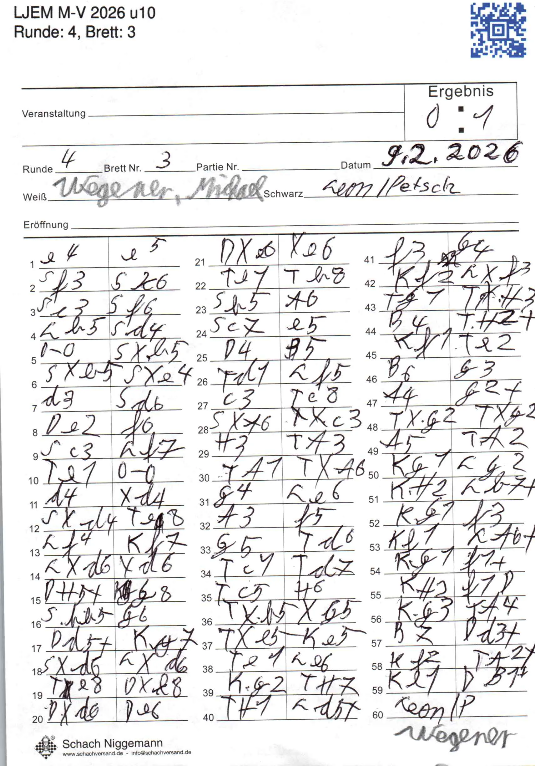 | Weiß: | Wegener, Michael | Schwarz: | Petsch, Leon |