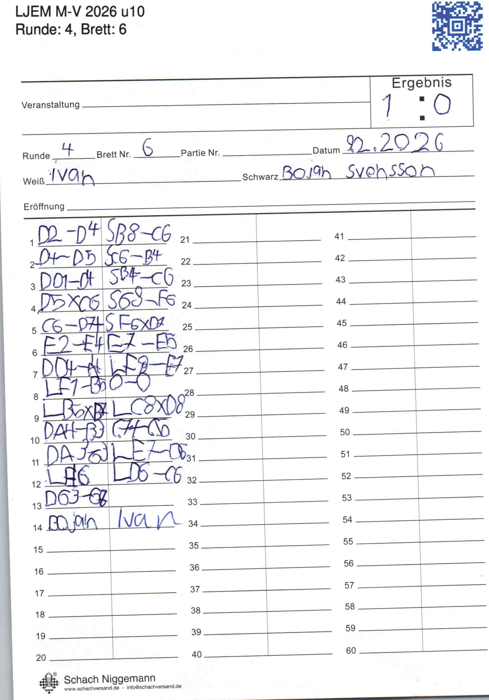 | Weiß: | Doichev, Ivan | Schwarz: | Svenson, Bojan |