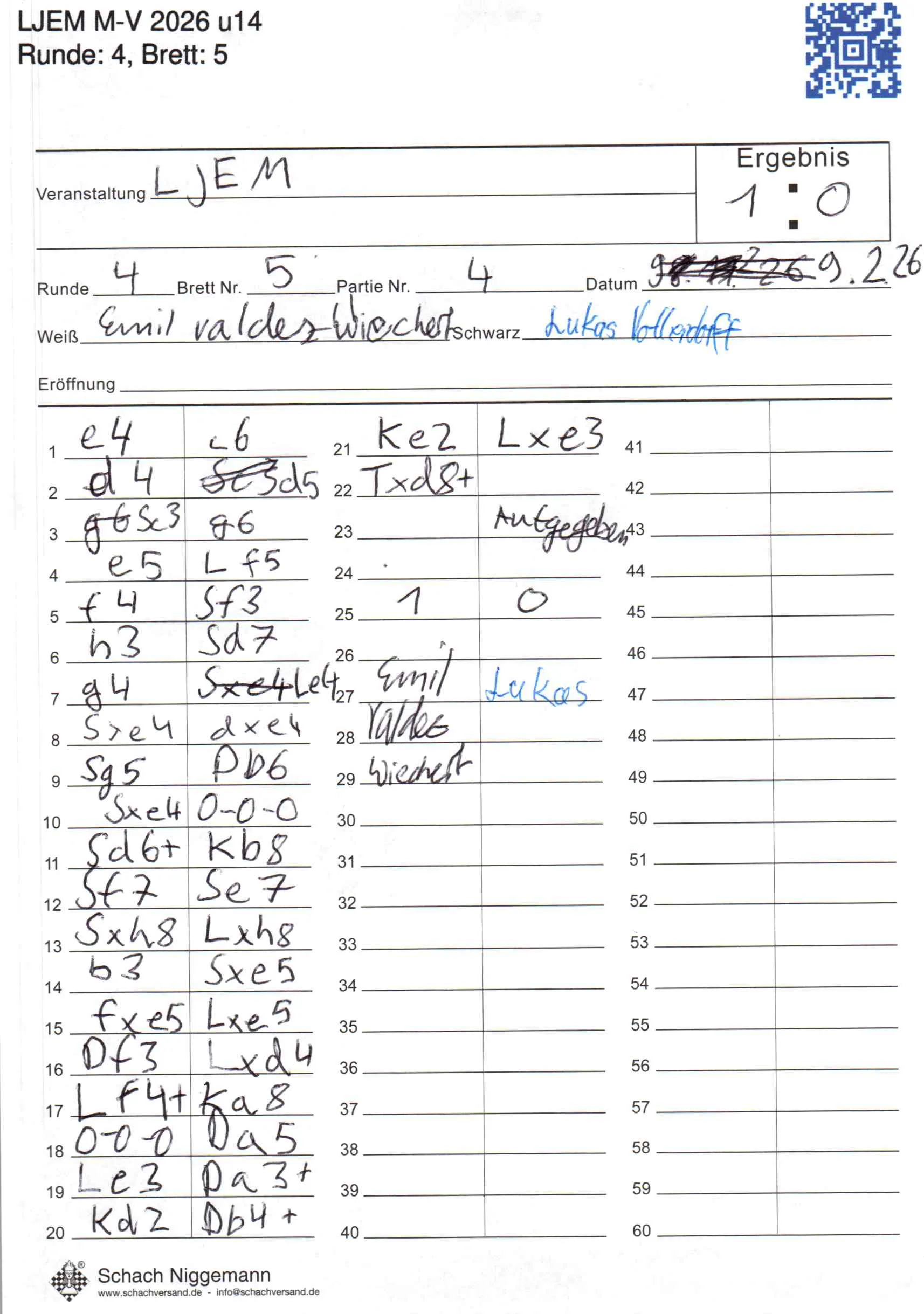 | Mannschaft: | SSC Rostock 07 | Mannschaft: | Think Rochade - SC HRO |