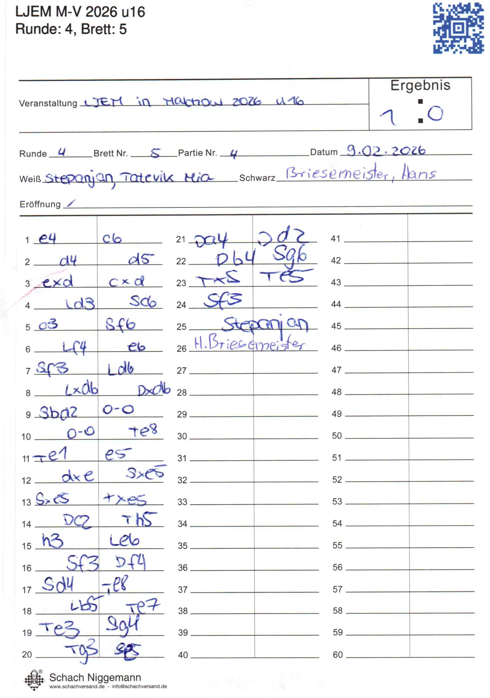 | Weiß: | Stepanjan, Tatevik Mia | Schwarz: | Briesemeister, Hans |
