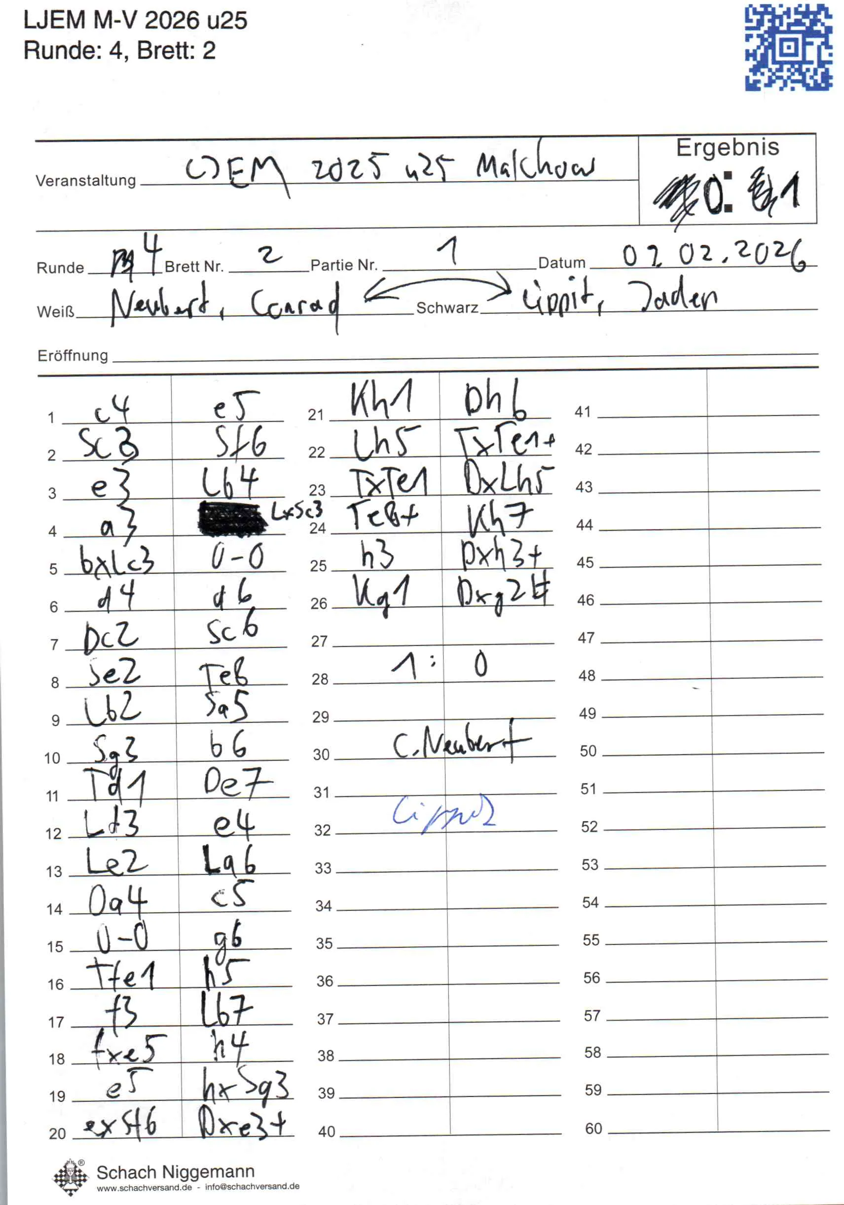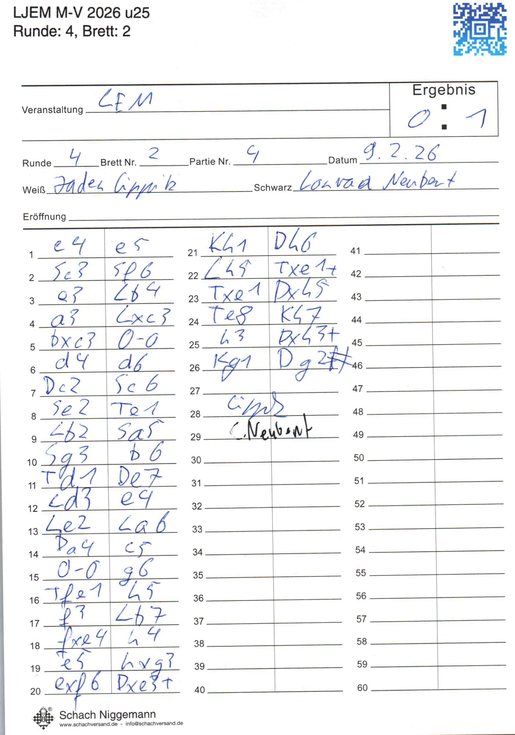 | Weiß: | Lippitz, Jaden | Schwarz: | Neubert, Conrad |