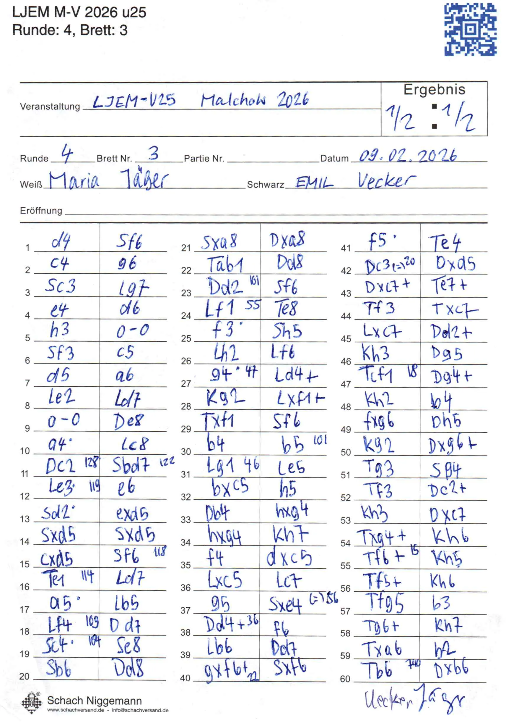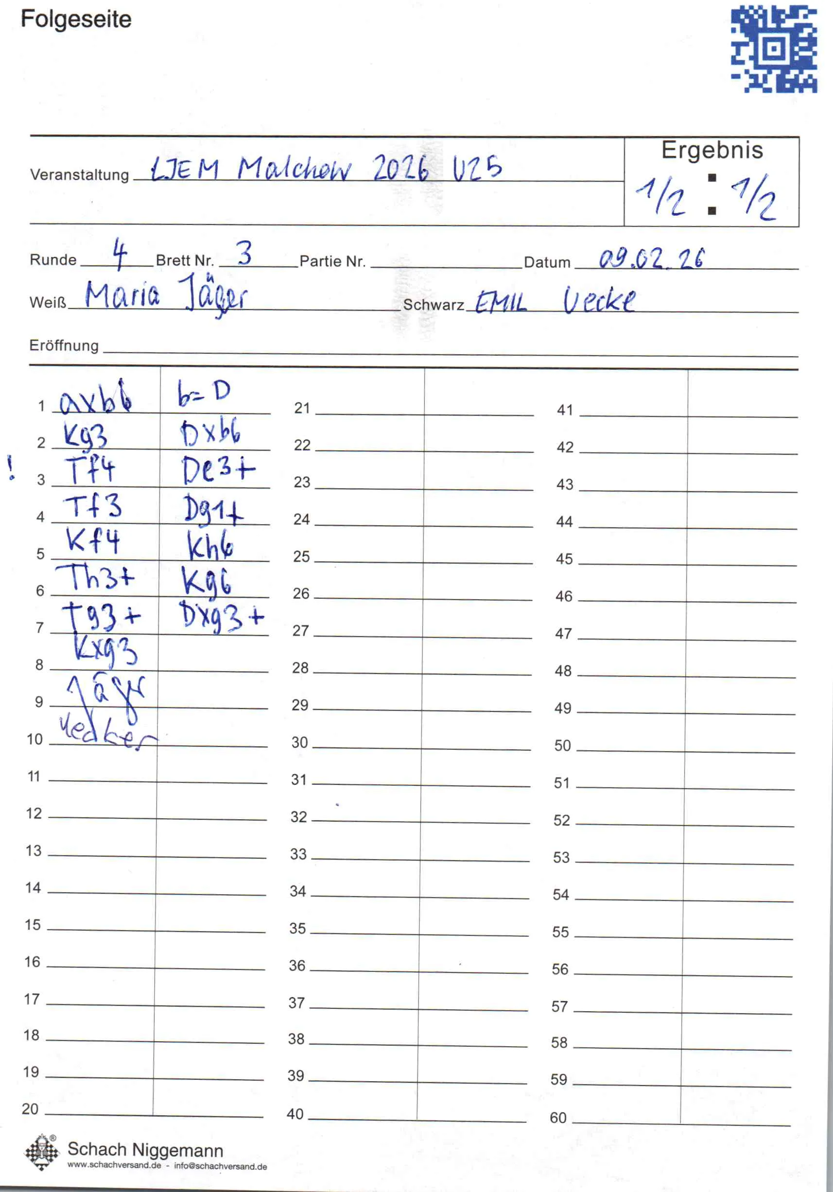 | Weiß: | Jäger, Maria | Schwarz: | Uecker, Emil |