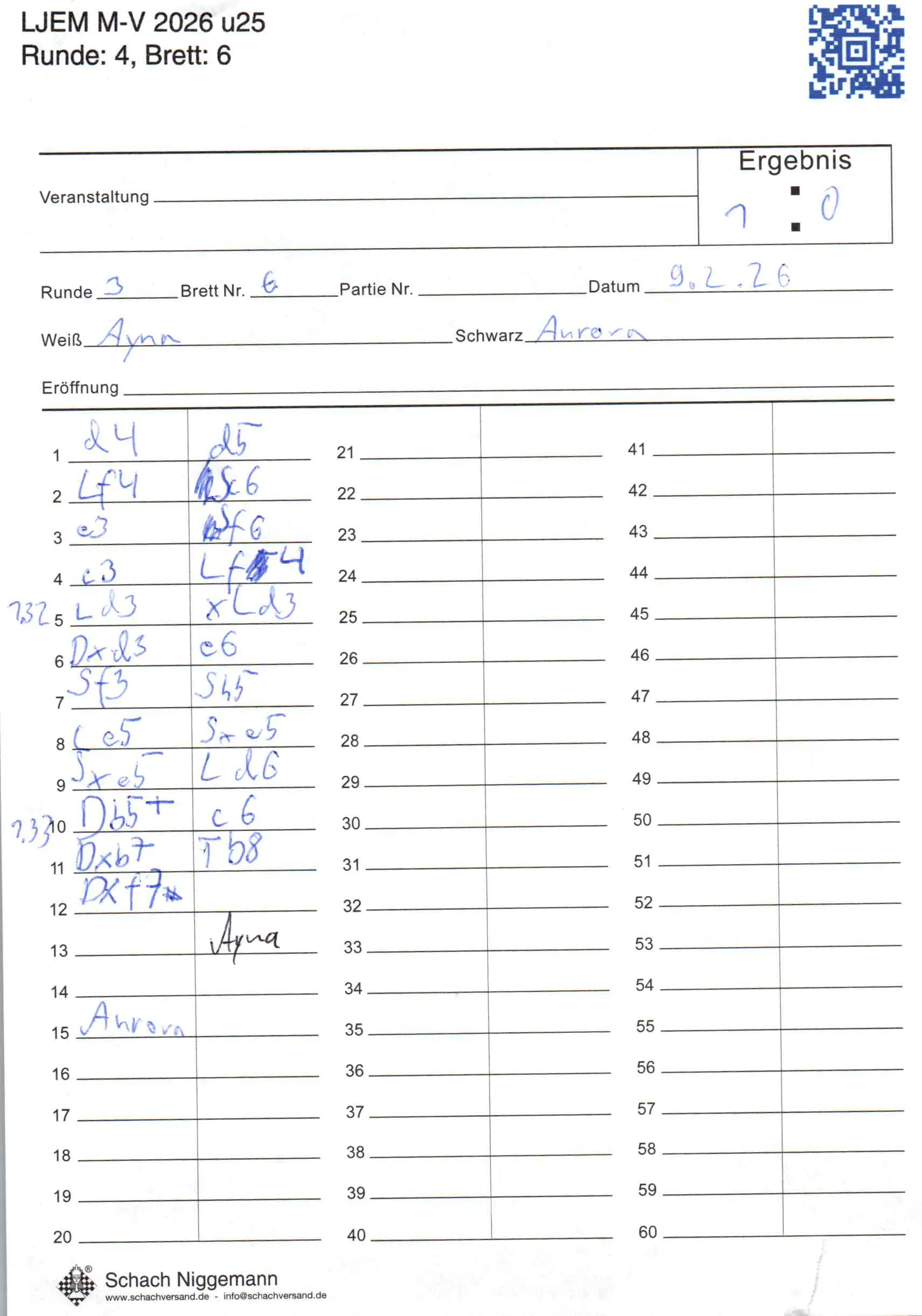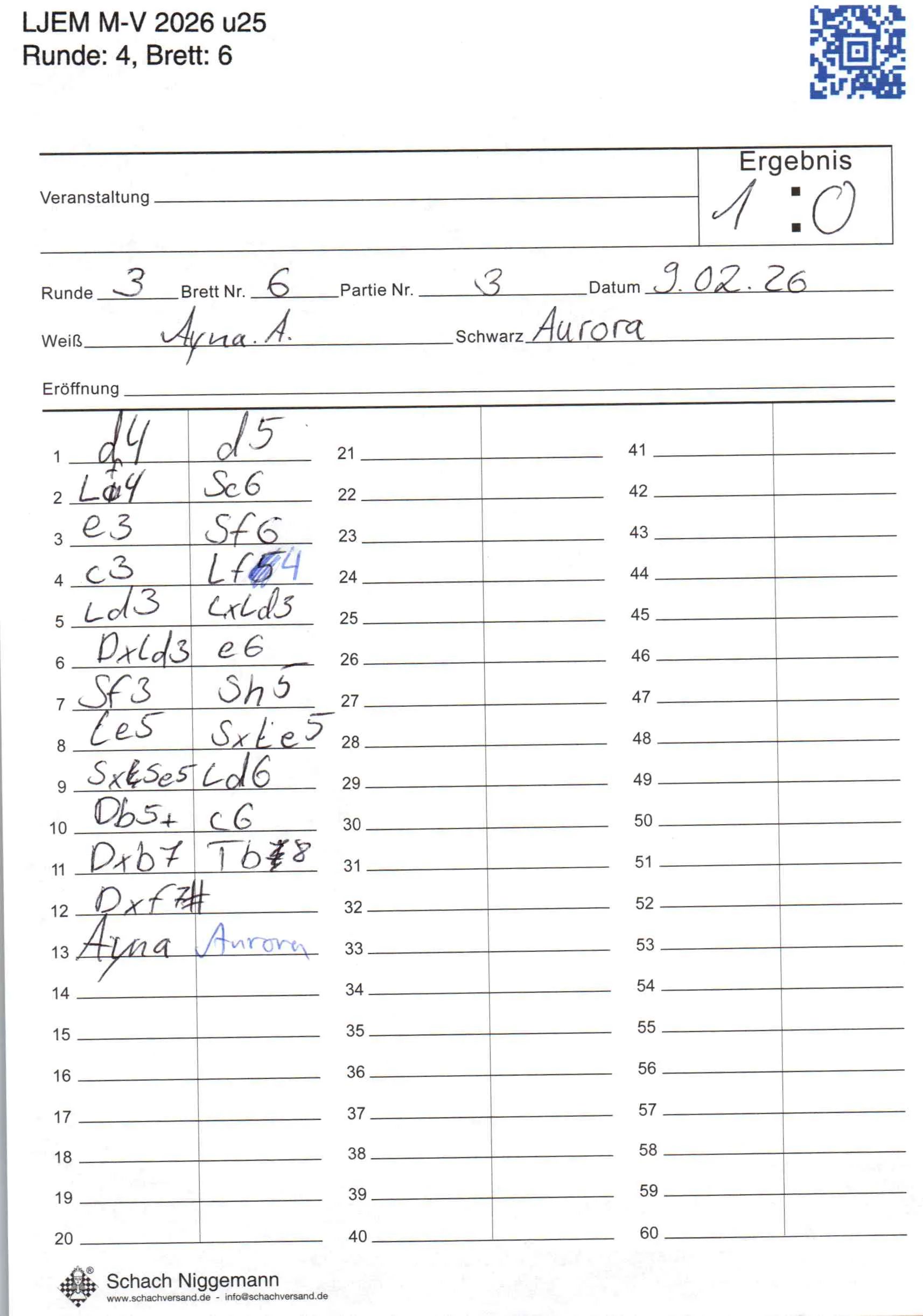 | Weiß: | Aslanli, Ayna | Schwarz: | Kowalk, Aurora Marie |
