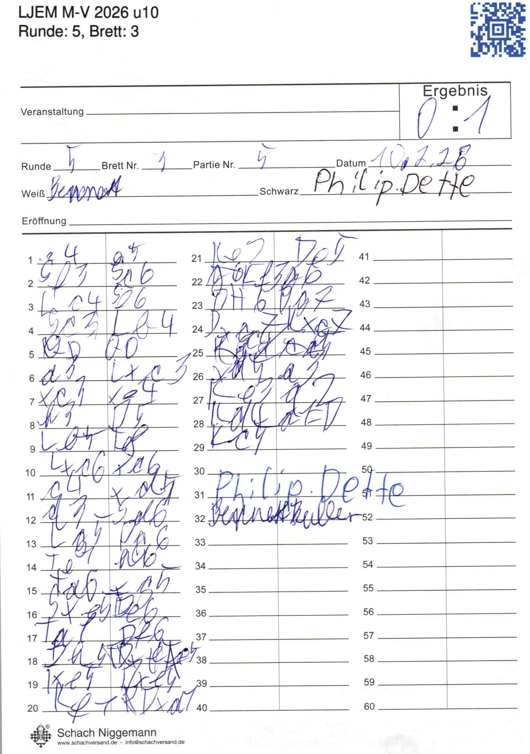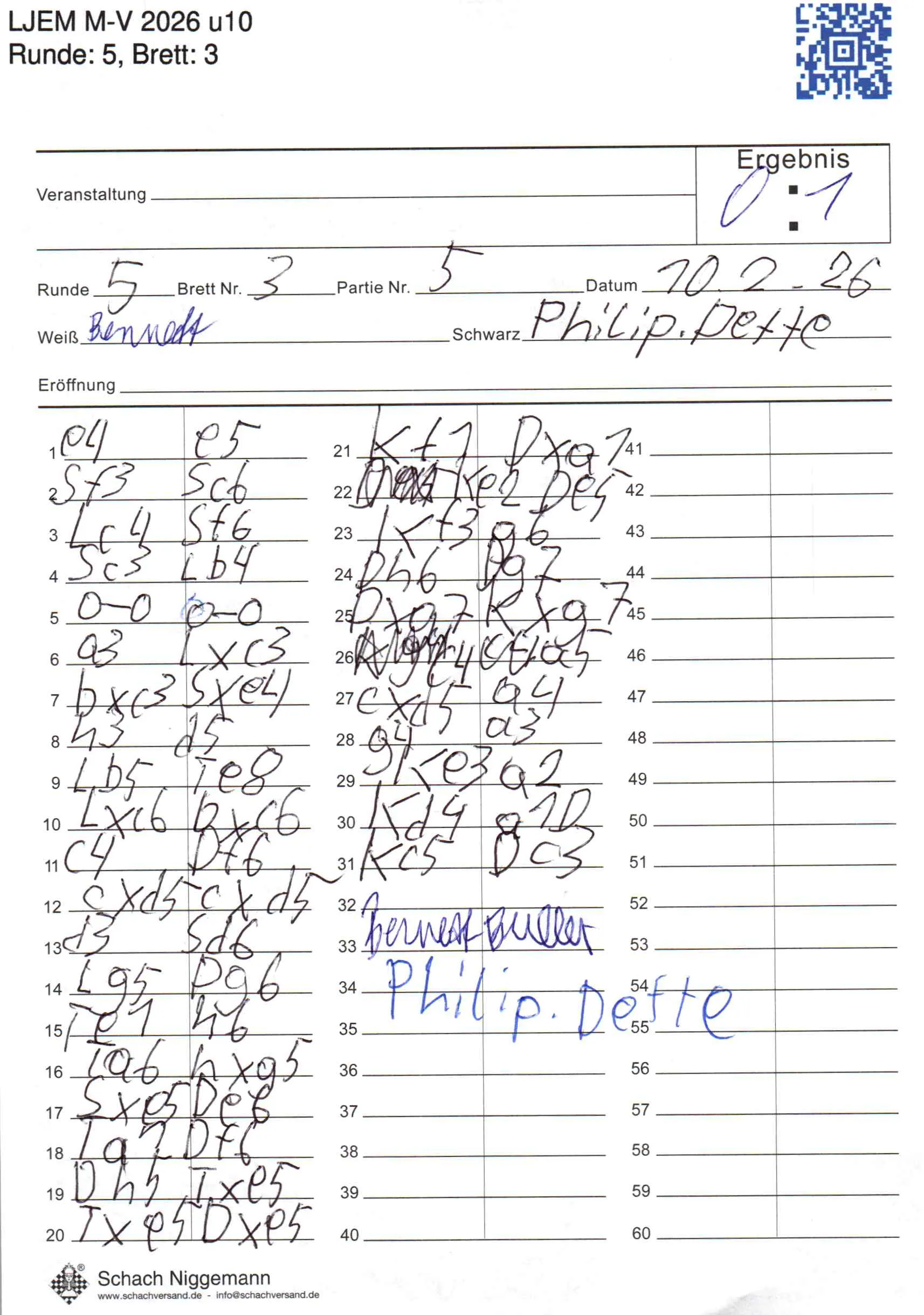 | Weiß: | Buller, Bennett | Schwarz: | Dette, Philip |