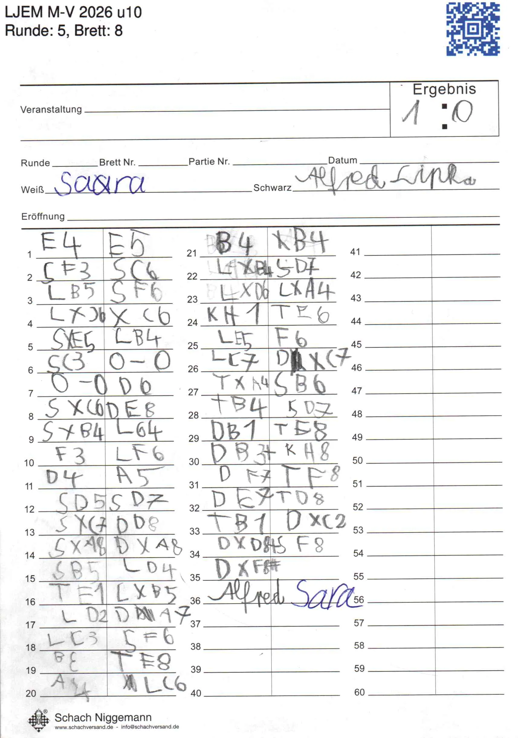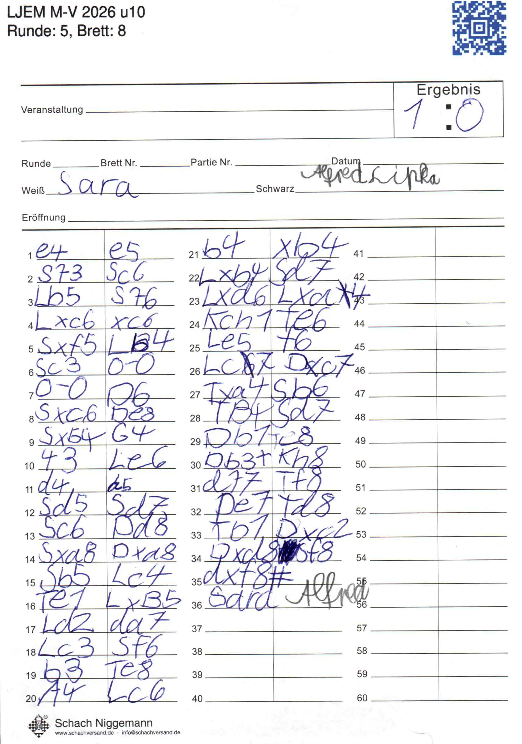 | Weiß: | Zelenin, Sara | Schwarz: | Lipka, Alfred |