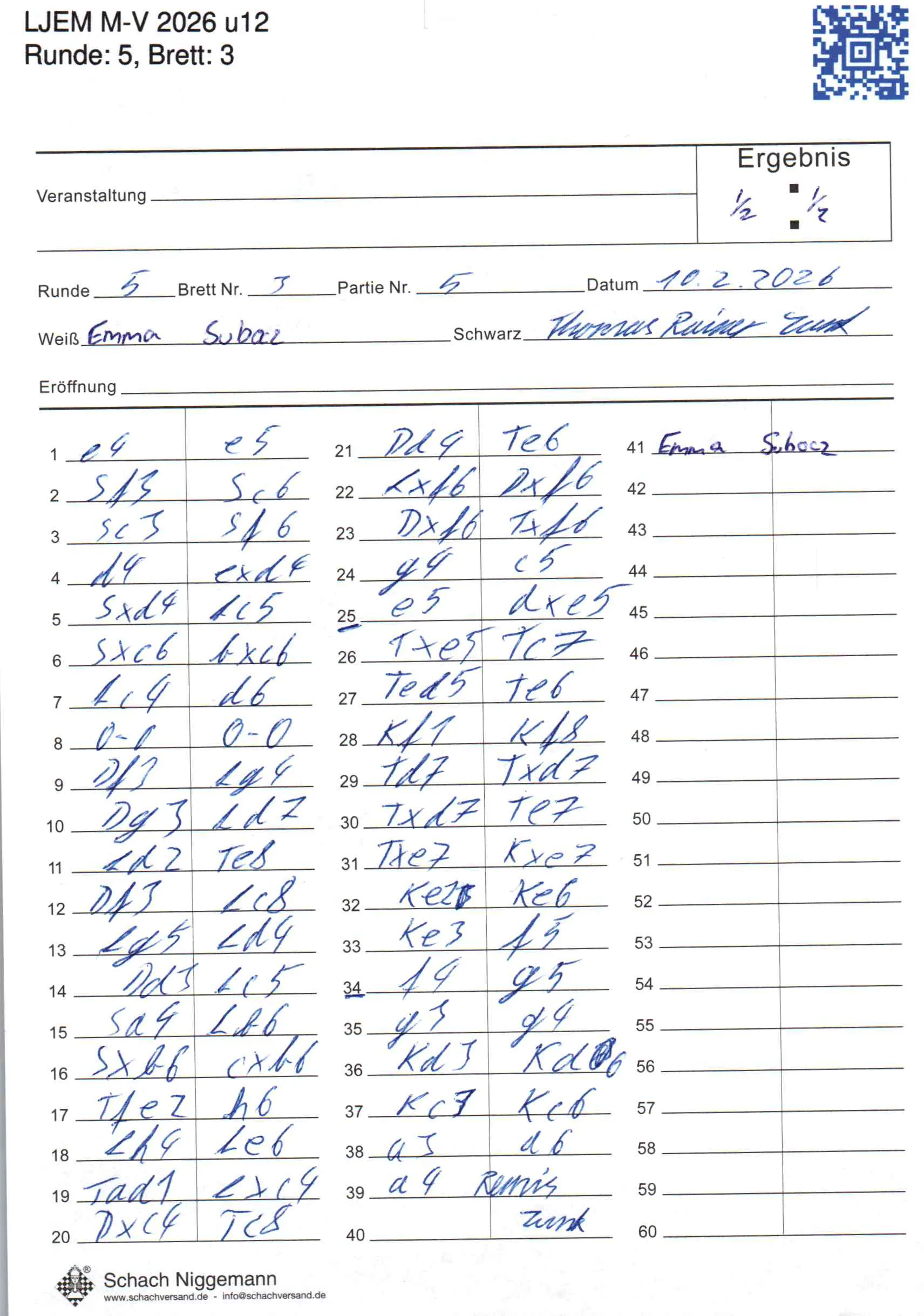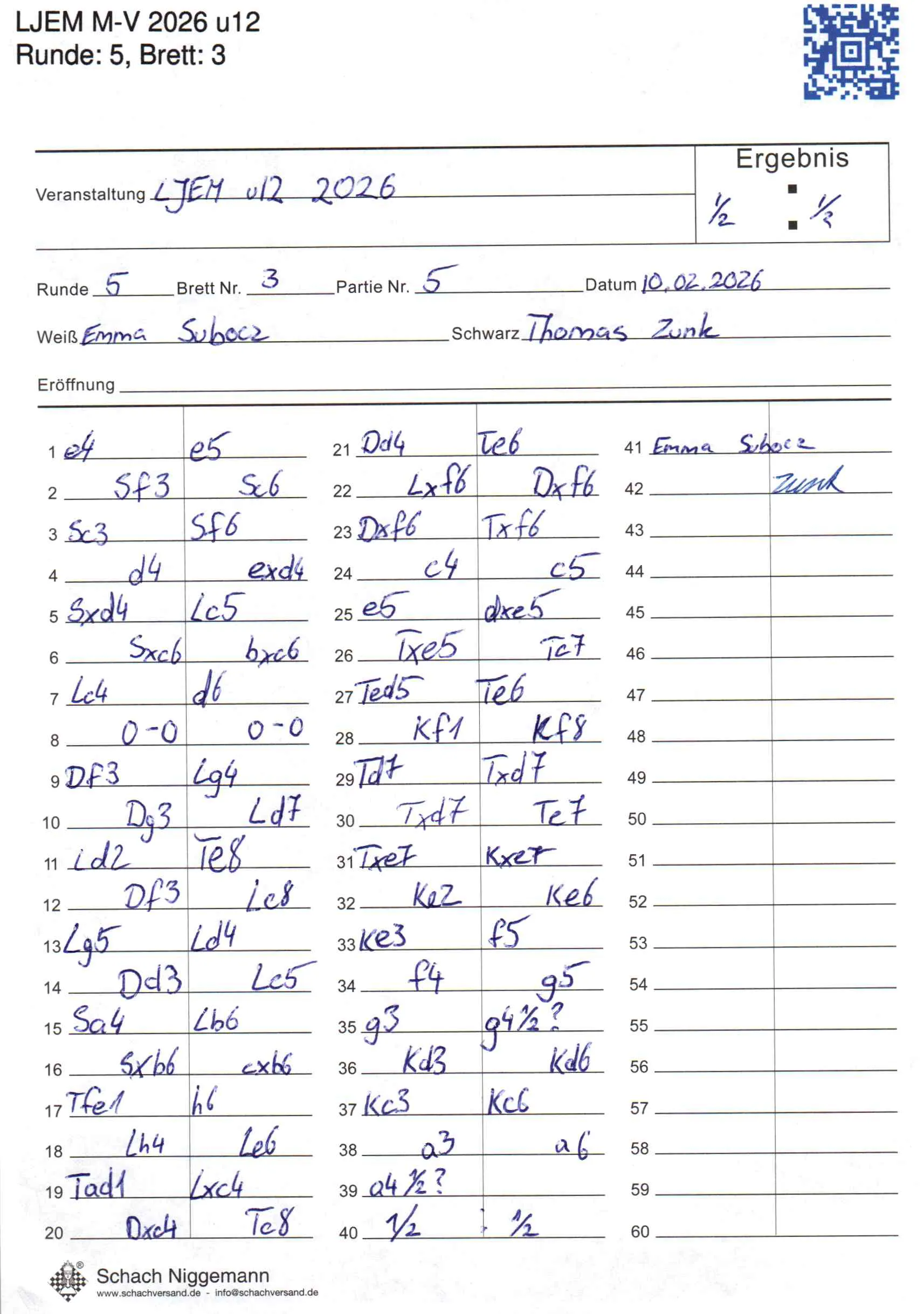 | Weiß: | Subocz, Emma | Schwarz: | Zunk, Thomas Rainer |