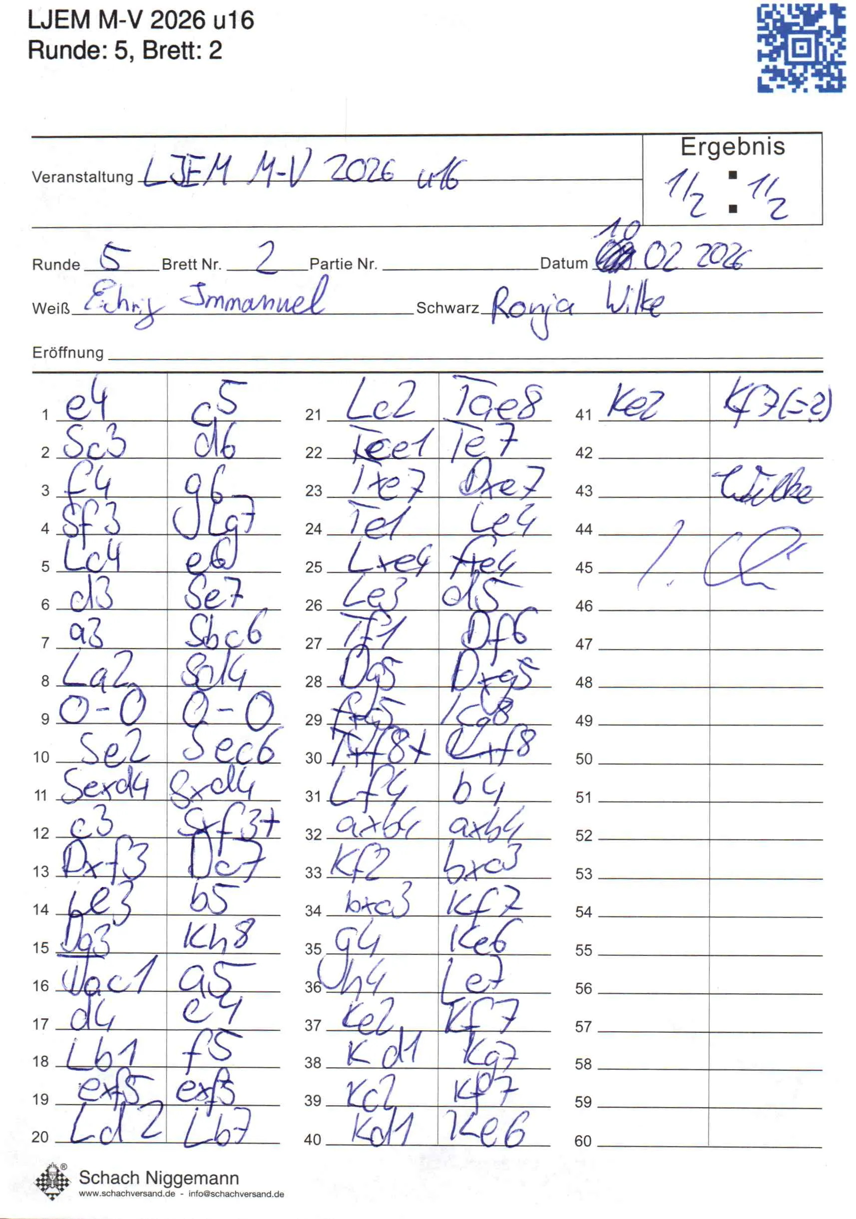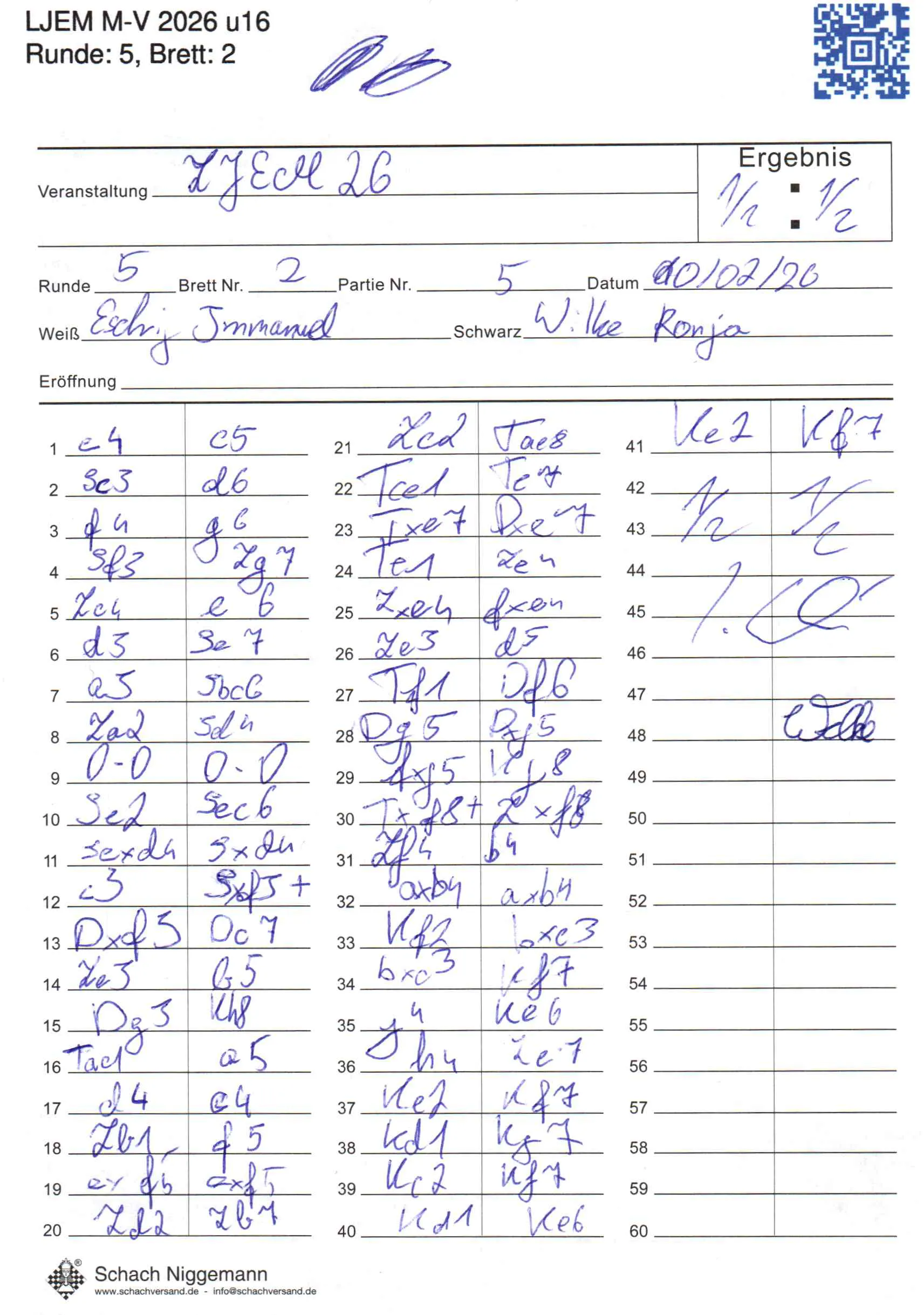| Weiß: | Eschrig, Immanuel | Schwarz: | Wilke, Ronja |