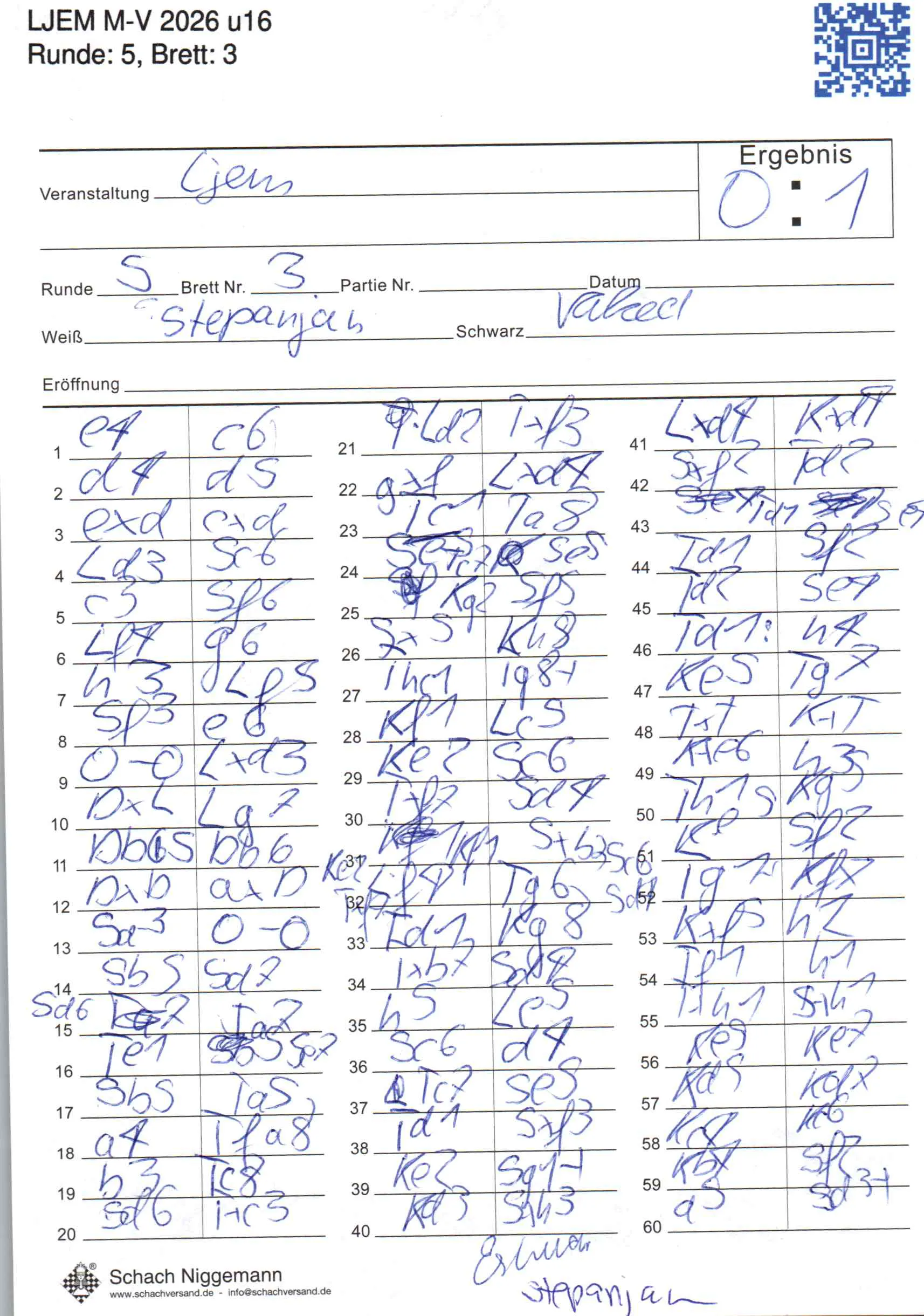 | Weiß: | Stepanjan, Tatevik Mia | Schwarz: | Vakeel, Eshwar |