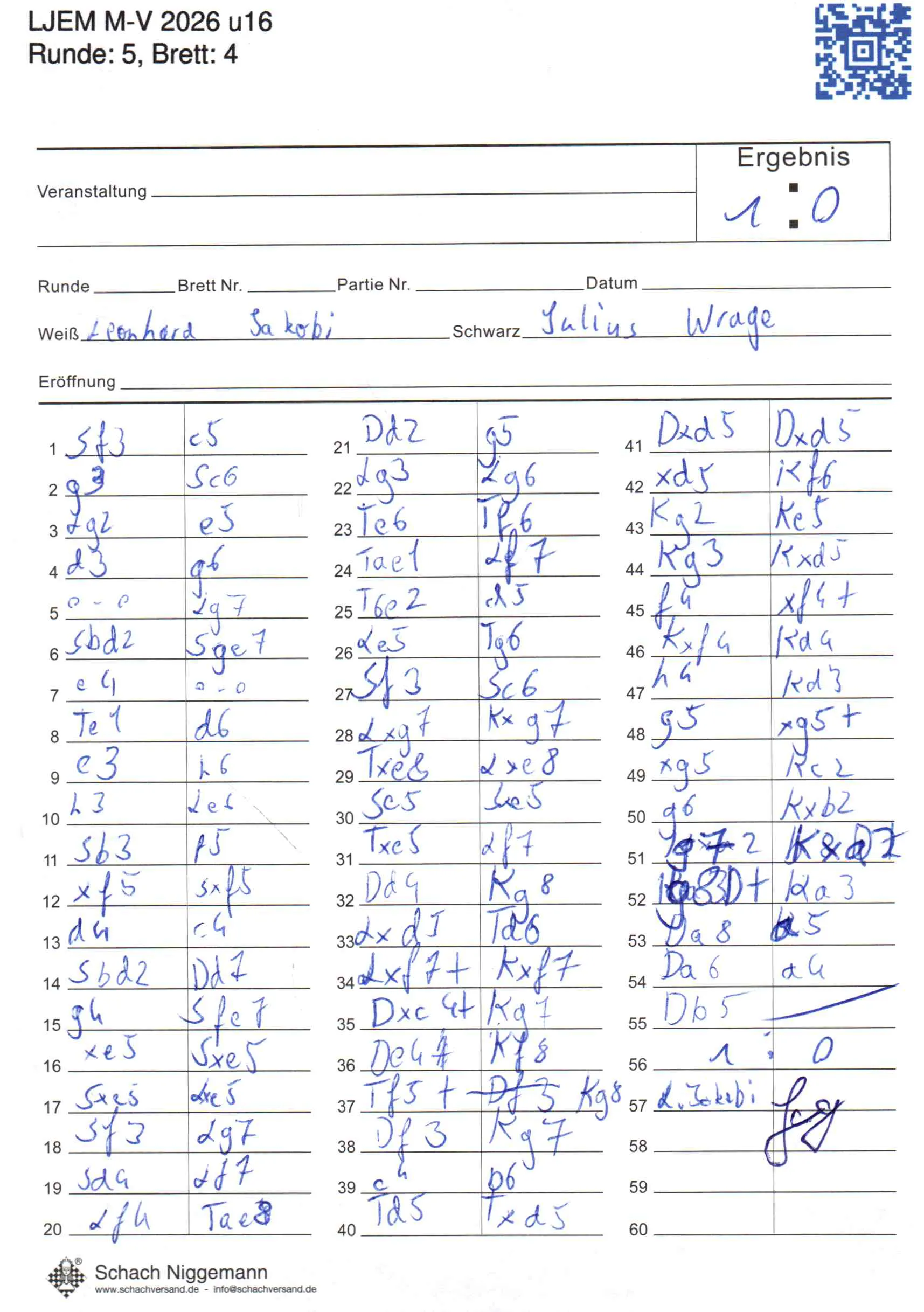 | Weiß: | Jakobi, Paul Leonhard | Schwarz: | Wrage, Julius |